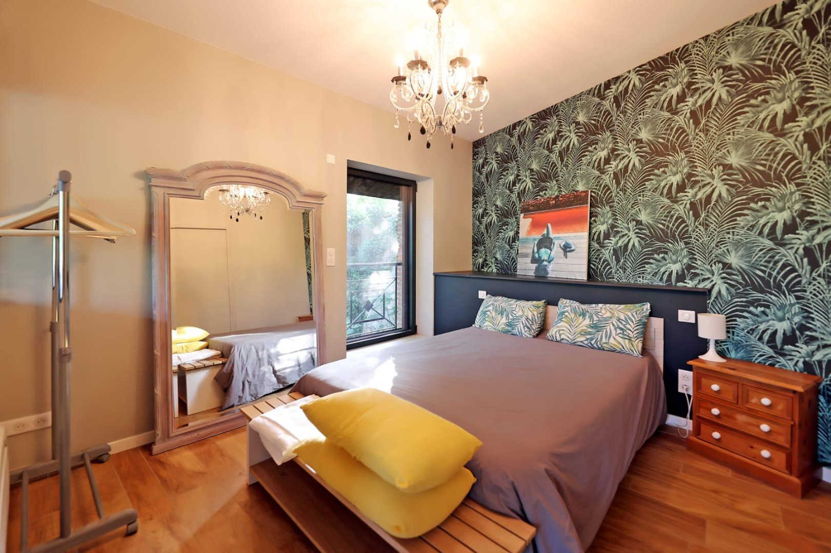 Une chambre avec lit en 140x190cm, salle de bain avec baignoire, vasque et wc.
