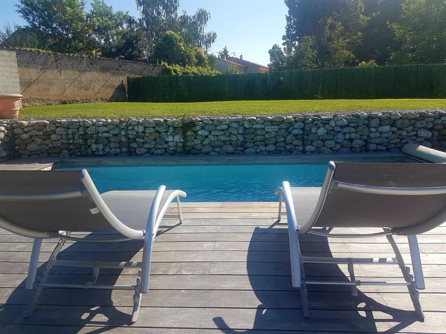 Terrasse, barbecue et piscine PRIVATIVE, le tout dans un jardin clos de 1500m², verdure et vue sur le clocher de la Cathédrale, et tout cela en cœur de ville !