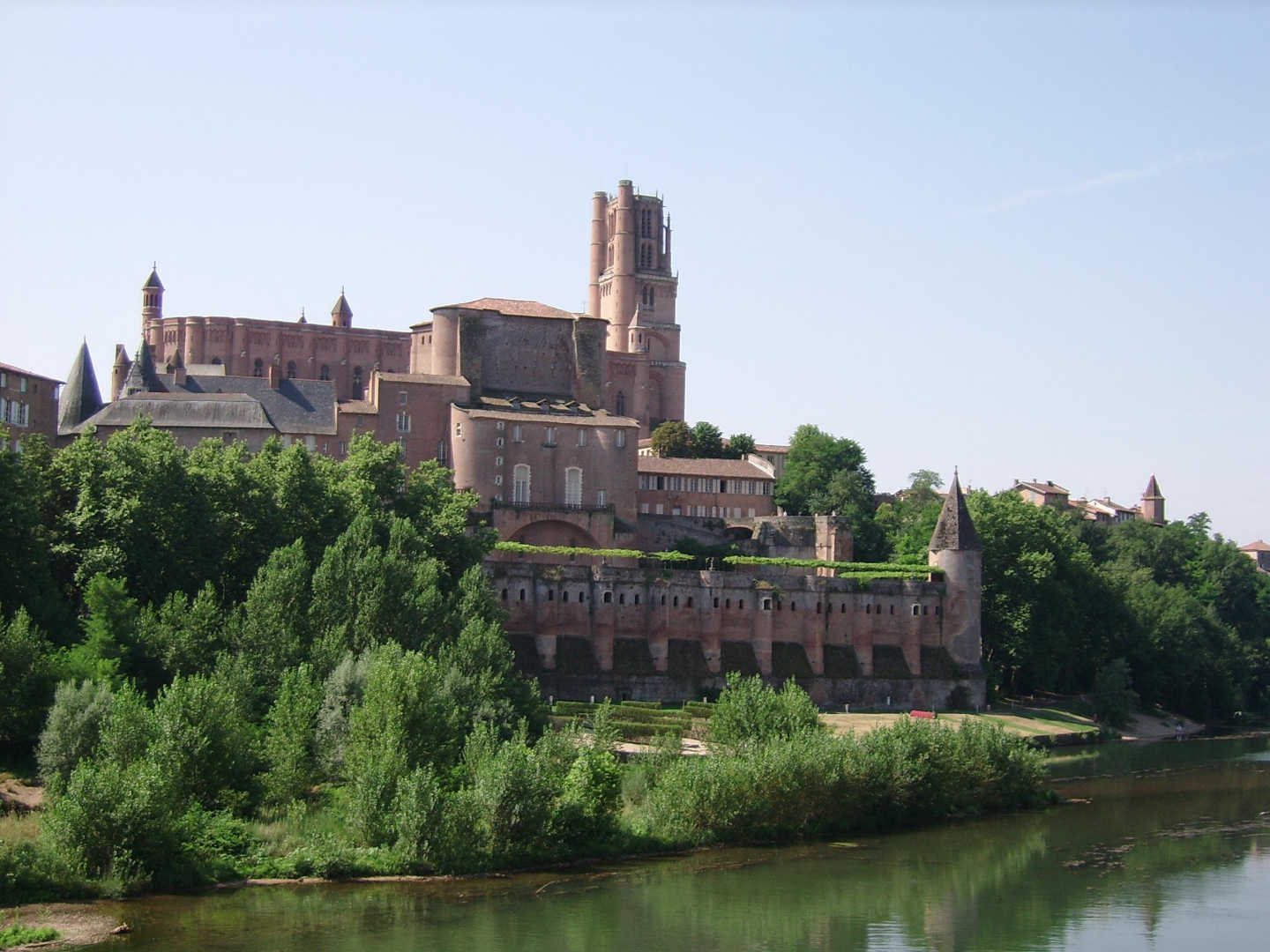 Sur la rive droite du Tarn, derrière le “central park” albigeois, on accède au cœur de ville en 10 mn à pied de la Cathédrale Sainte-Cécile – périmètre Unesco, par le Pont-Vieux, daté du XII° siècle ou directement par une passerelle magnifique à 5 mn du gîte. C’est la carte postale d’Albi qui s’offre à vos yeux.