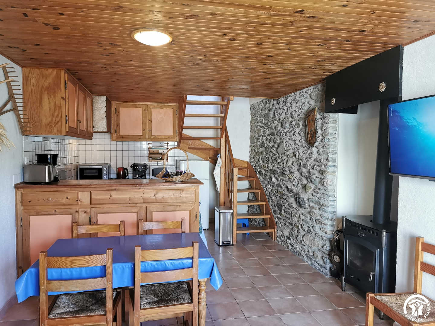 Été comme hiver, ce lieu est idéal pour les amoureux de la nature, les randonneurs, les skieurs ou simplement ceux en quête de tranquillité. A proximité, profiter des stations de ski de Font-Romeu. Empruntez les sentiers de randonnées et VTT avec des panoramas exceptionnels. Visitez le charmant petit village Espagne Llivia et la ville de Puigcerdá. A seulement quelques minutes de la gare SNCF, embarquez à bord du Train Jaune et découvrez le Parc naturel régional des Pyrénées catalanes avec des paysages à couper le souffle. Ce gîte, mitoyen à la maison des propriétaires se compose : Rez-de-chaussée : – Séjour : poêle à bois avec insert : 1 m3 de bois offert – Coin cuisine donnant sur une petite cour fleurie Premier étage : – Chambre 1 : 1 lit 140×190 donnant sur une terrasse – Salle d’eau avec WC Deuxième étage : – Chambre 2 : 1 lit 90×190 + 2 lits superposés 90×190 – WC indépendant Il y a une petite cour close avec plancha. Petit local de rangement. Garage pour
