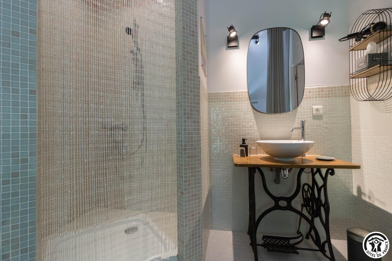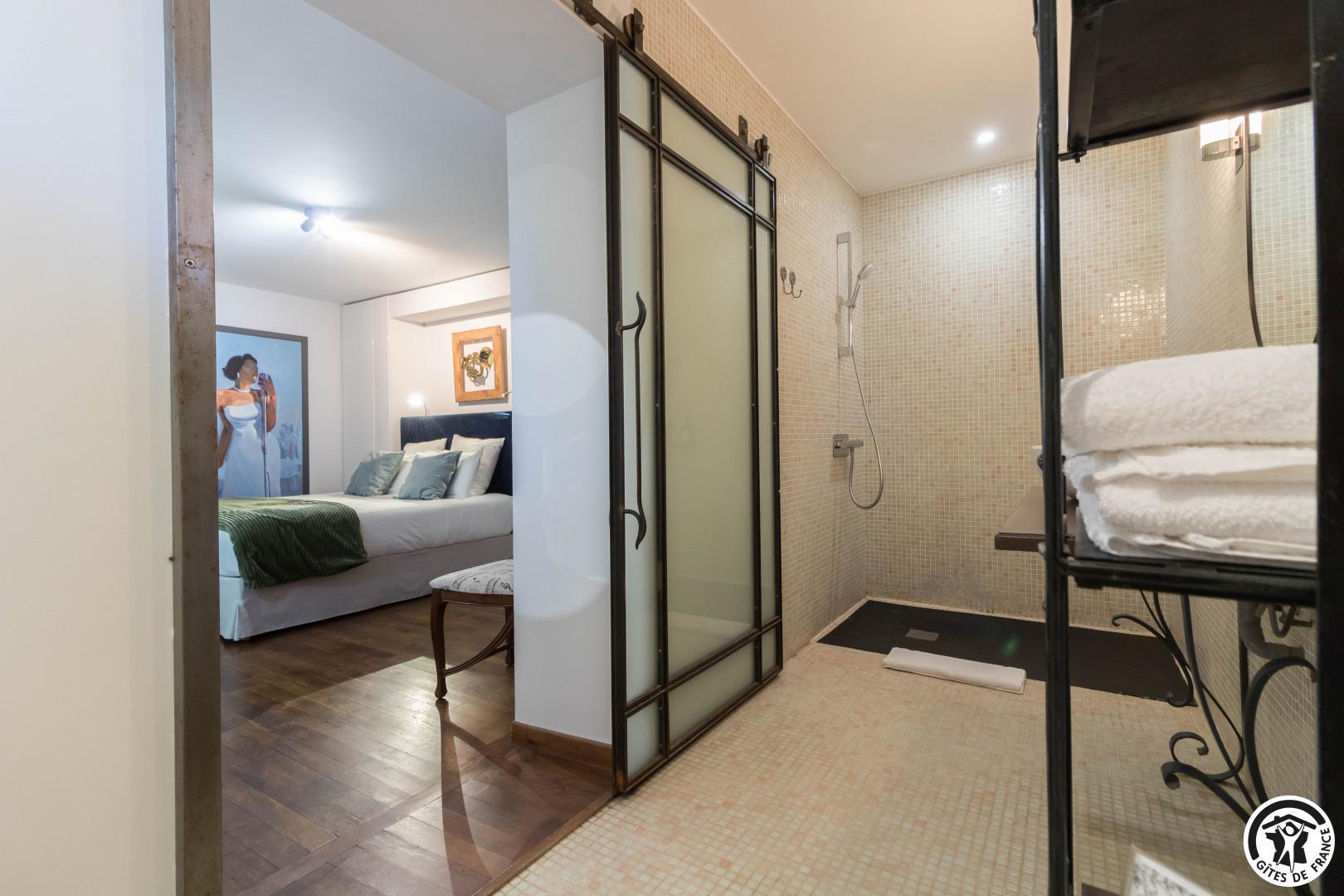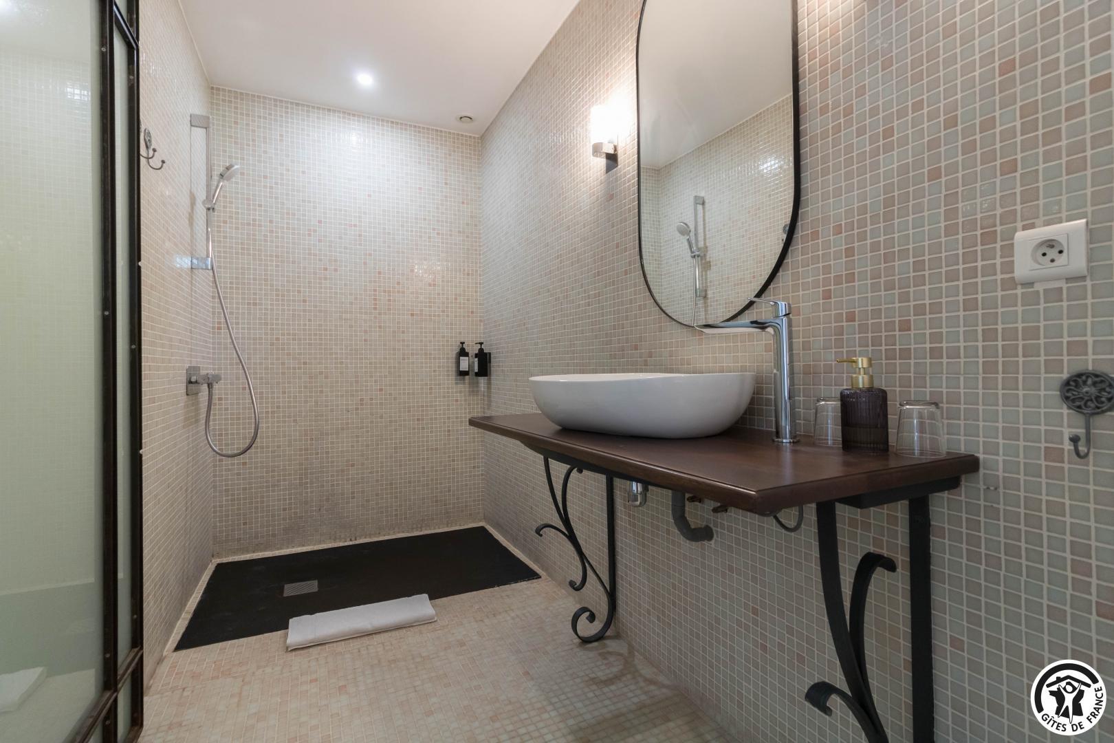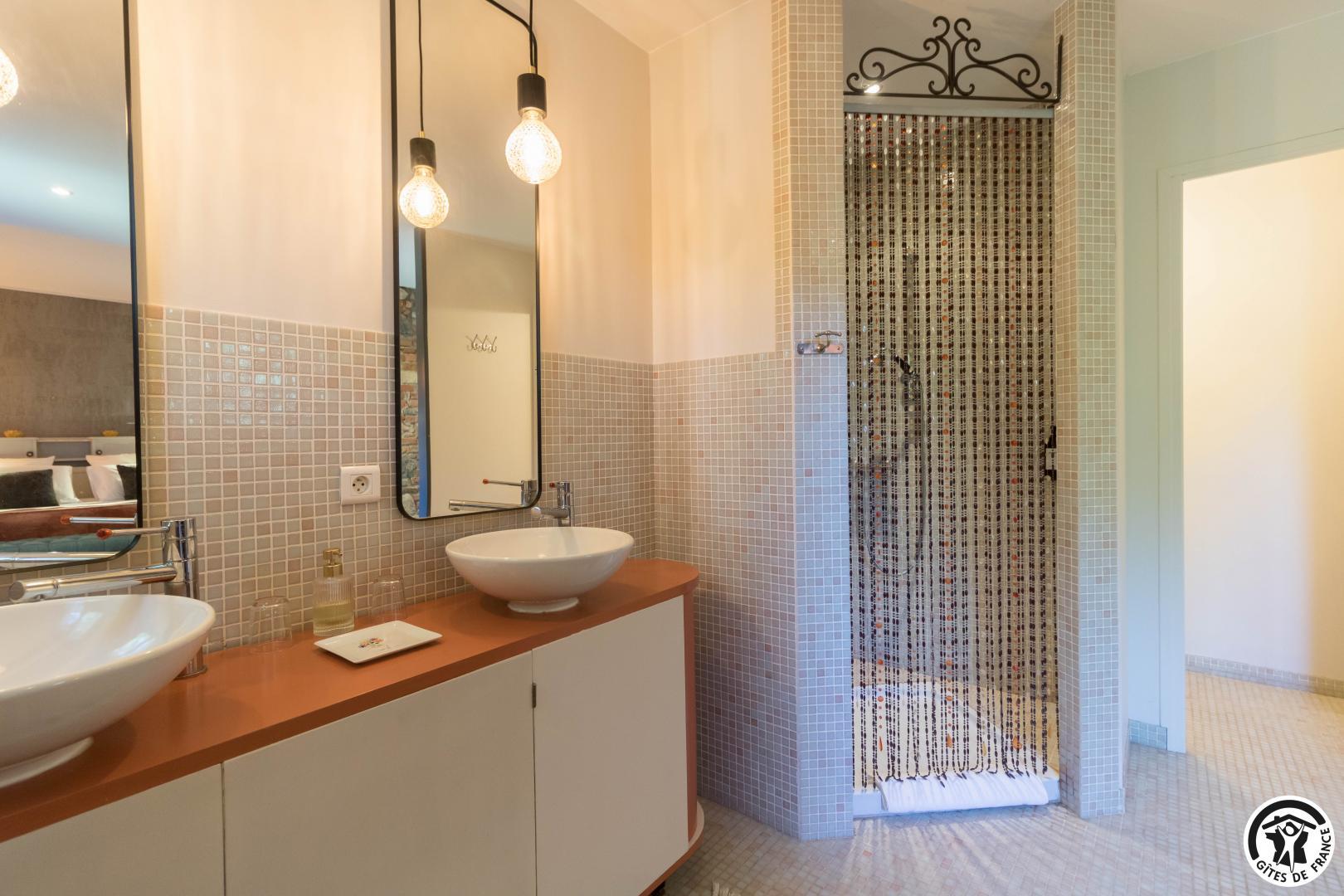 Each room has a large 160*200cm double bed (2*90cm twin Nougaro beds), reversible air conditioning, a TV and a bathroom with separate WC.
