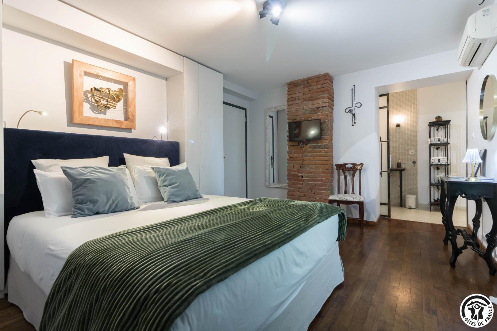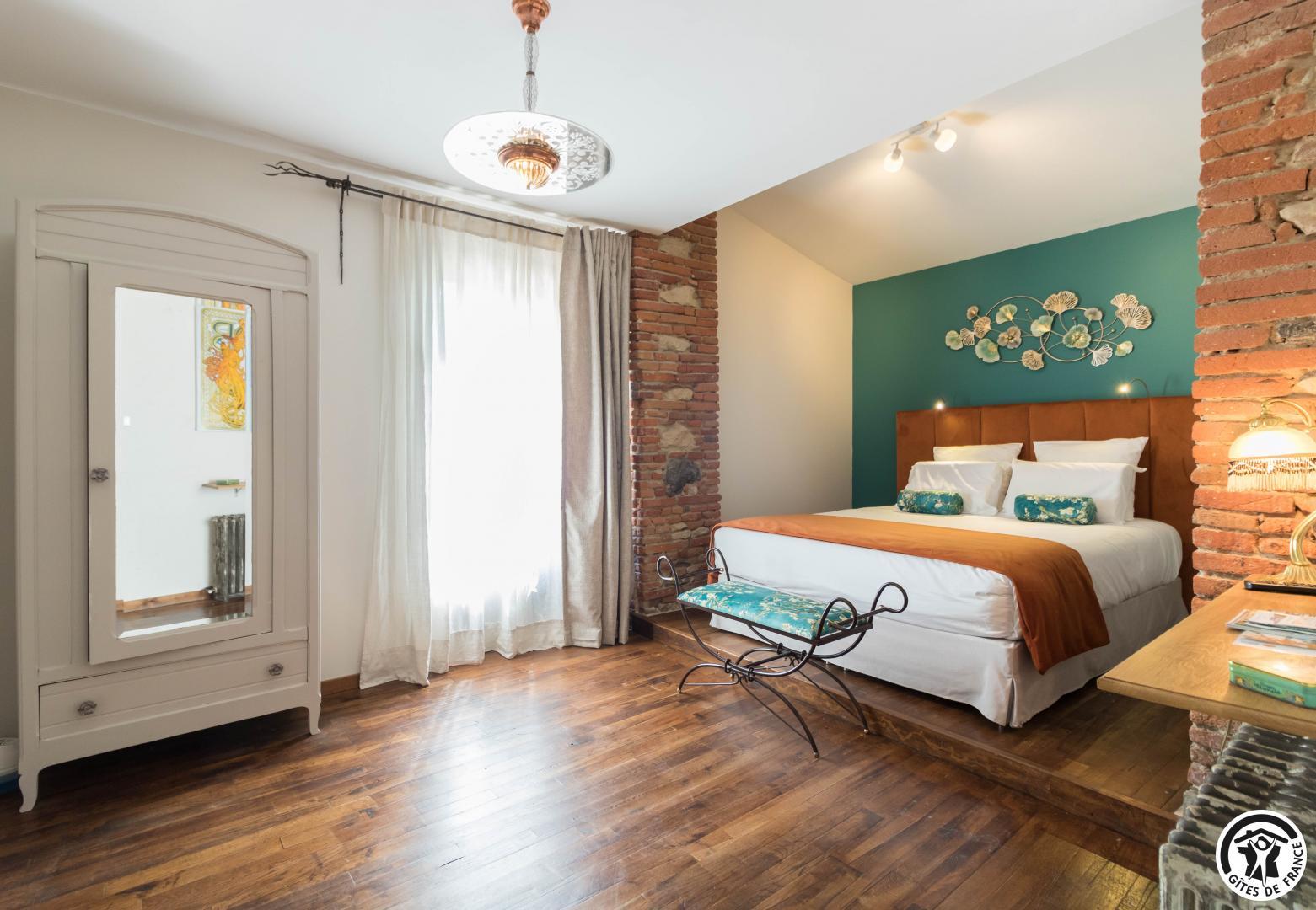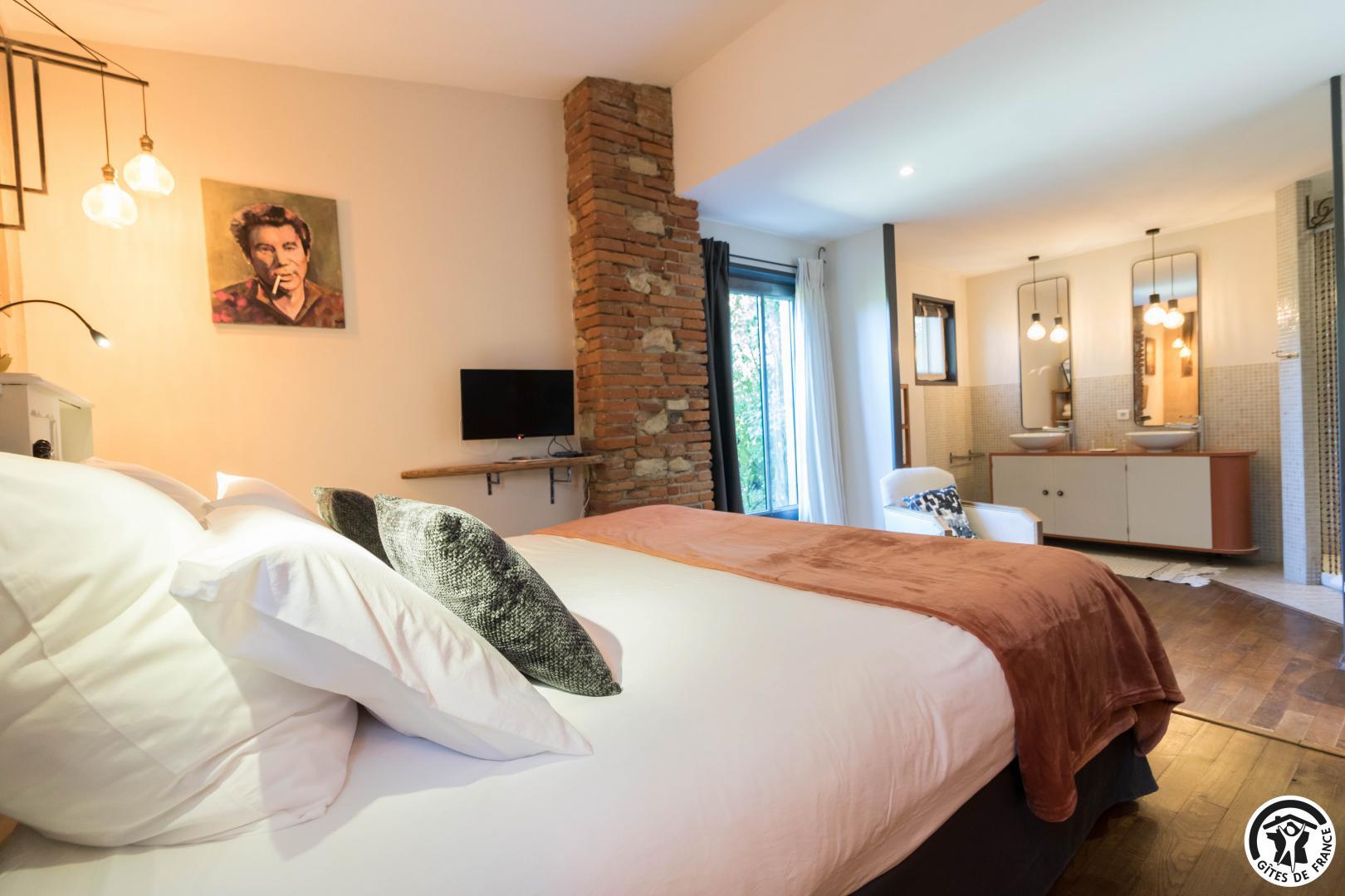 With its reminders of red brick and exposed beams, and paintings by the owner, this large, typical Lauragais residence combines authenticity with top-of-the-range comfort. Each double room is an invitation to travel, to discover the arts and the senses. A generous, gourmet home-cooked breakfast is served every morning, using tasty local produce. An elegant swimming pool awaits you in fine weather, while the pétanque court invites you to relax and enjoy the company of friends. Everything you need for an unforgettable stay, between Toulouse and the Cathar country.