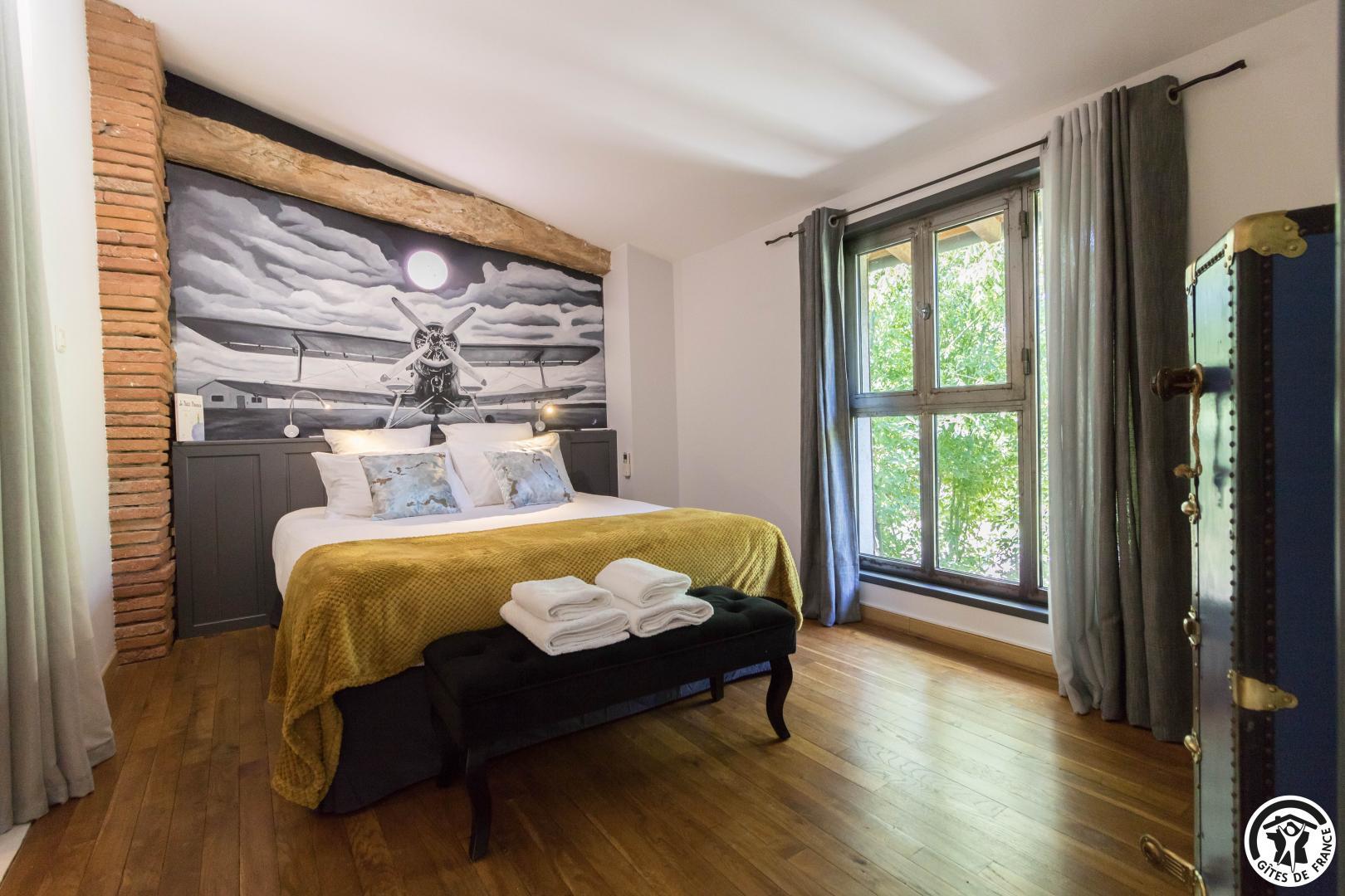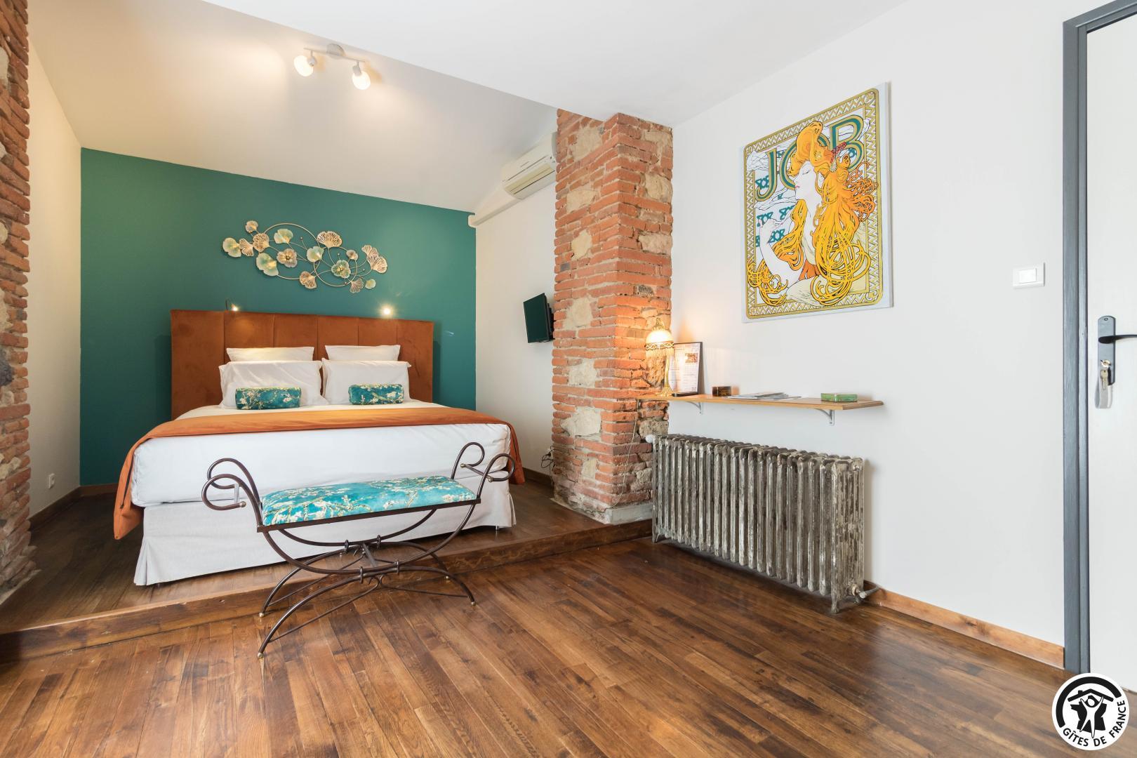 5 voluptuous guest rooms: Nougaro: a vibrant tribute to the great singer from Toulouse. A poetic, hushed atmosphere, where the lyrics resonate through touches of ochre and noble wood. Blue Note: the spirit of a New York jazz club comes alive in this cosy, intimate room. Mucha: the delicate world of Alfons Mucha is expressed in floral arabesques and Art Nouveau furniture. Chocolate: warm, indulgent and enveloping… a true declaration of love for one of mankind’s greatest inventions. Éole: inspired by the genius of Clément Ader, this room pays tribute to the aeronautical adventure.