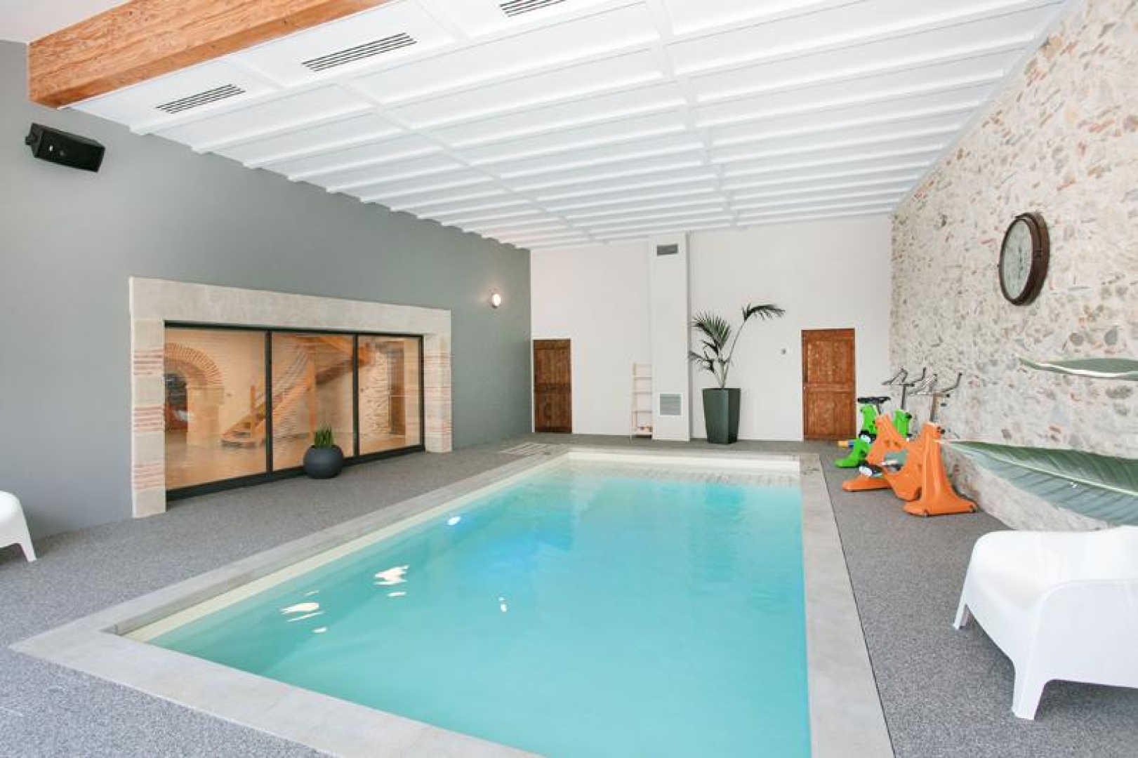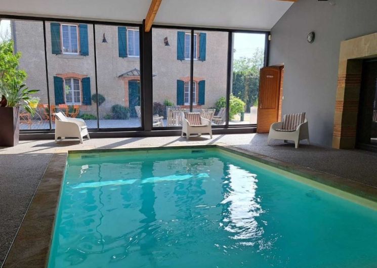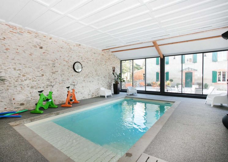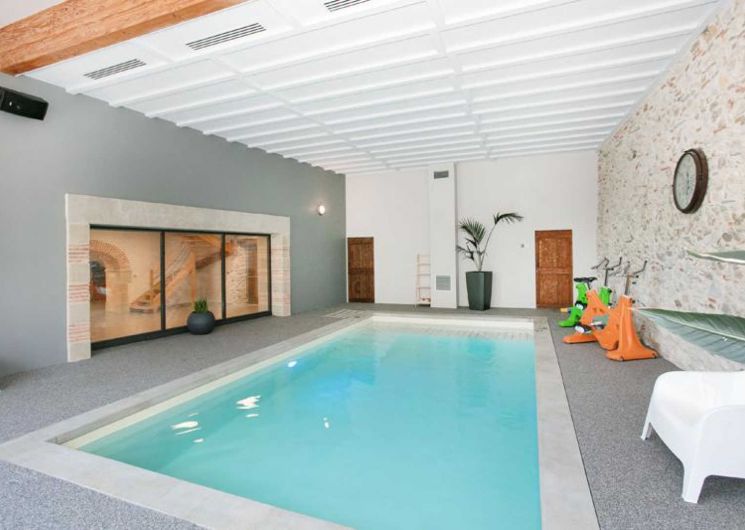 Grand et beau gîte totalement indépendant à la sortie de Dourgne, pour 15 personnes, avec un jardin, une cour, une salle de réception et de séminaire, une piscine privative intérieure et chauffée toute l’année ! Dimensions : 8 x 4m sur 1,40m de profondeur.
