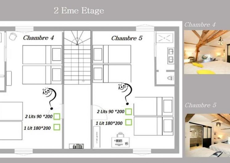 – 2 chambres avec 4 lits simples en 90cm jumelables chacune