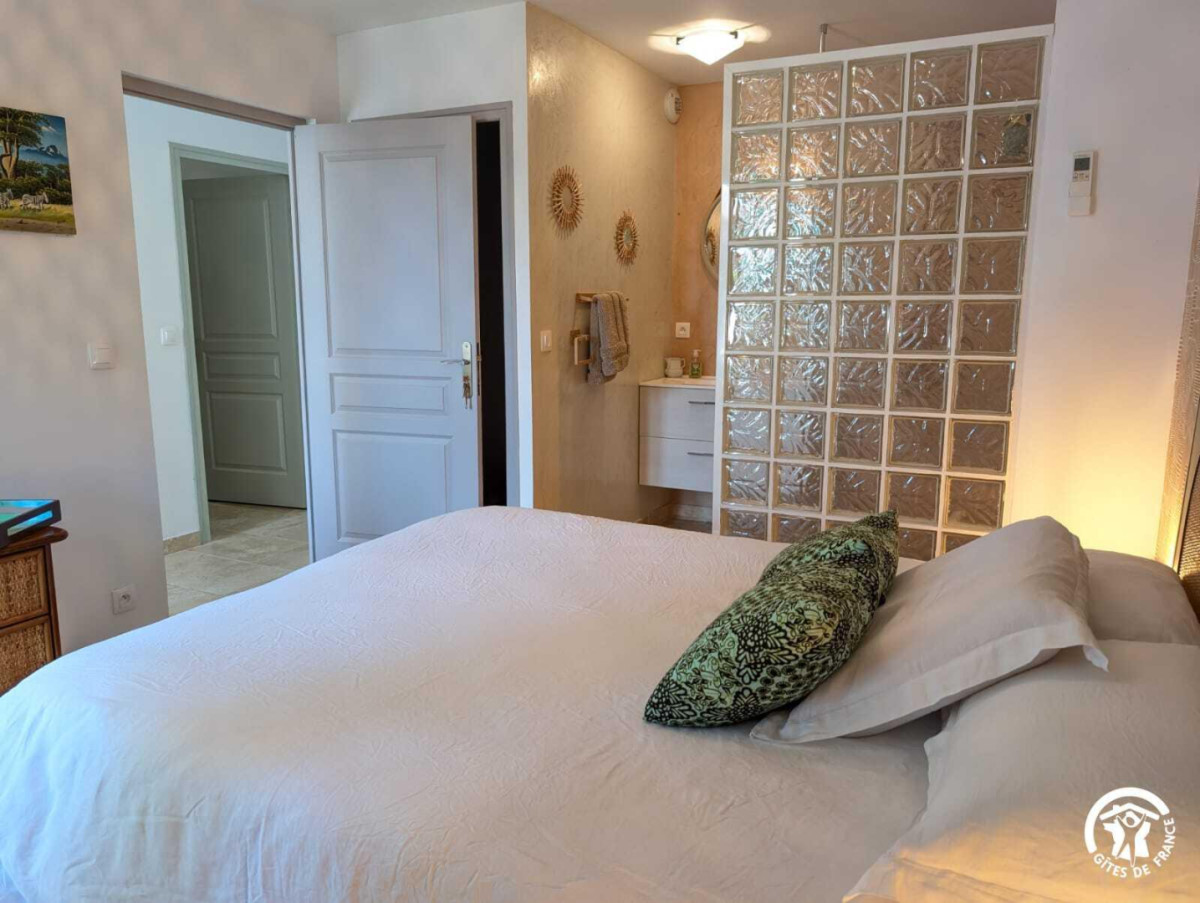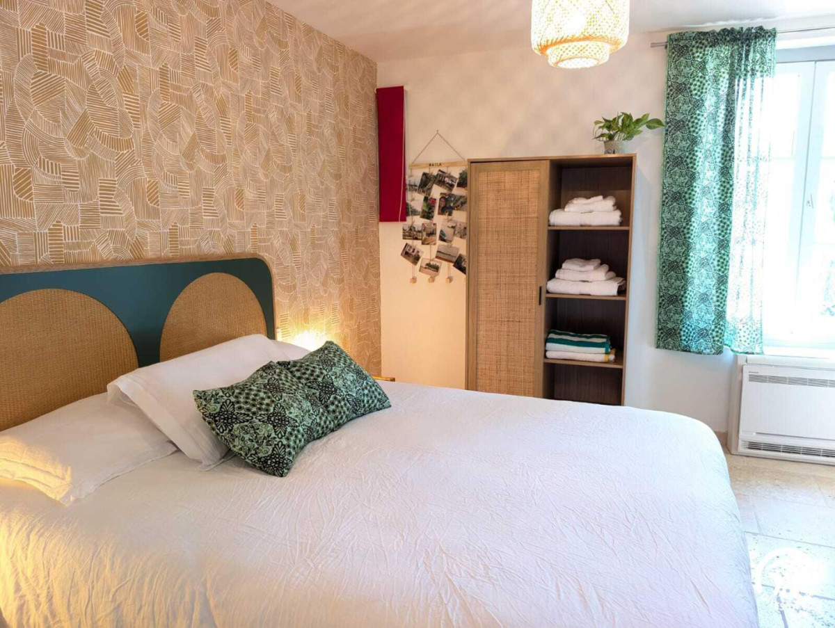 Séjour détente avec piscine à Saint Pons de Mauchiens. A l’entrée de la circulade de ce charmant village médiéval, Mariane et ses trois chats, vous offrent une parenthèse au calme dans sa chambre d’hôte. Vous pourrez savourer ses délicieux petits-déjeuners maison, dans la belle pièce commune ou sur la terrasse au bord de la piscine avec une belle vue dégagée au-dessus des toits. La maison d’hôte est située à dans le village à l’entrée de la circulade centrale et piétonne. Elle dispose de 3 chambres d’hôte aux tons exotiques définis au gré des voyages de Mariane. Chaque chambre dispose d’un lit double en 160*190, (literie haut de gamme, linge de lit en lin et serviettes de toilette en coton 600g), et d’une salle d’eau privée (douche à l’italienne, savon et shampoing bio à disposition) avec wc indépendant. Les chambres ont toutes la climatisation, la télévision avec Netflix et Canal+. Un petite espace commun dédié exclusivement aux clients des chambres d’hôtes et accessible avec des fauteuils, café et thé à disposition. Une belle salle commune ou sont servis les petits-déjeuners. Vous pourrez également vous y installer pour un moment jeux (une trentaine de jeux sont à disposition), pour prendre vos repas (non proposés sur place). Cette salle fait aussi salon de thé les vendredi, samedi et dimanche de 16h à 20h. Une terrasse ombragée avec vue sur les toits et les champs, avec un frigo à disposition des clients. Une piscine (dimensions : 4,75X3) avec possibilité de contre-courant, ouverte du 15 juin au 15 septembre de 8h à 20h (non chauffée). Vous aurez aussi accès à un bain nordique. Les peignoirs et serviettes de piscine sont fournis. Les petits-déjeuners sont faits maison avec des produits locaux (chèvre de la bergère, confiture de Sophie, figues de Martine..). Mariane, toujours au petit soin, s’adaptera au mieux à votre régime. Il y a 2 parkings gratuits à 200m. Pour les motos, un garage sécurisé et équipé (alarme, prises, point d’eau, outils, etc.). – Lit 160 par 190 Salle de bain avec douche italienne, wc séparés. Sèche cheveux, produits de toilette BIO (savon shampoing) à disposition afin de faire connaitre nos producteurs locaux. Ménage de fin de séjour inclus. Une chambre inspirée par un voyage mémorable en Casamance et la joie de découvir les habitants et le joli village de Baila ou nous avons séjourné.