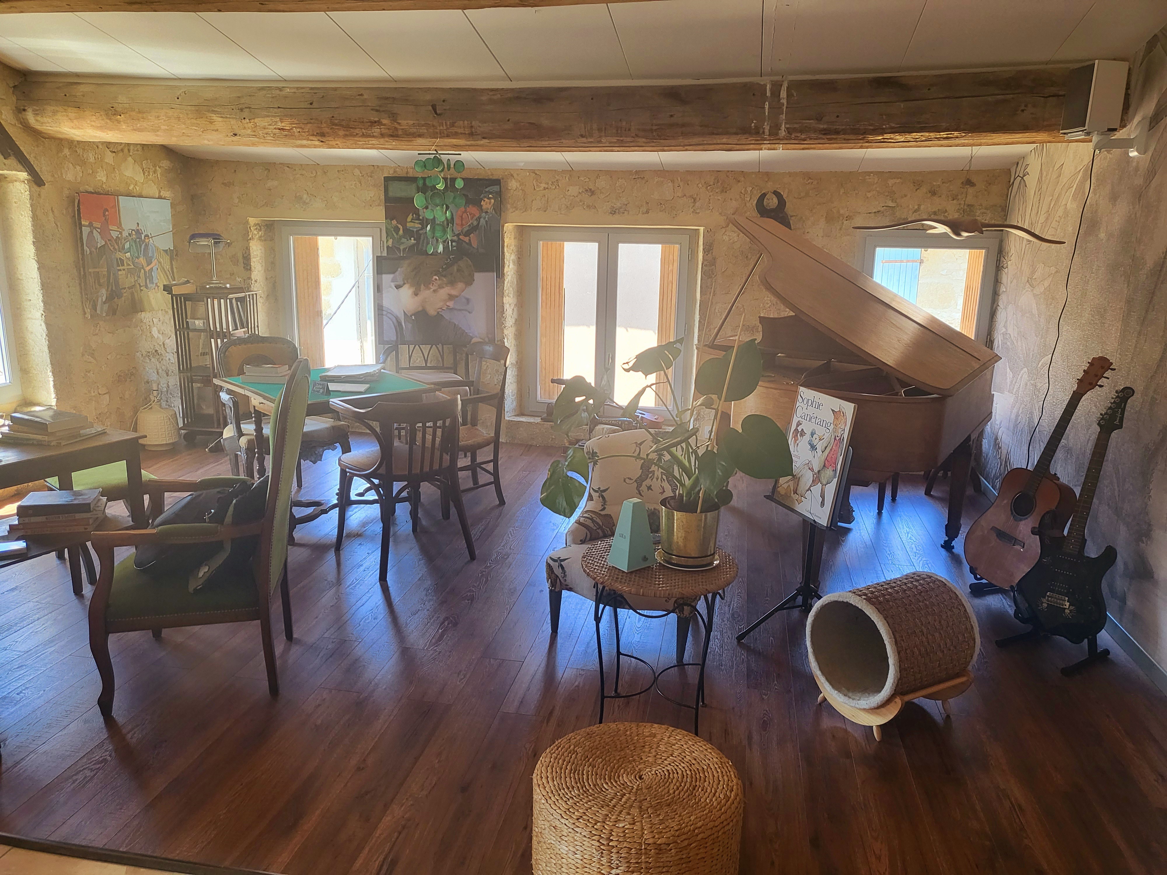 Chambre d’Hôtes Inspirée par un Voyage en Voilier vers des Horizons Lointains Cette chambre d’hôtes évoque un voyage exceptionnel en 2017, où un voilier nous a menés vers le dernier peuple Kalina, nous permettant de découvrir des paysages extraordinaires et des rencontres inoubliables avec les tortues marines et le parc national qui couvre 80% de l’île. Un lieu où chaque détail vous plonge dans l’atmosphère d’une aventure lointaine. * Lit confortable de 160 x 190 cm, parfait pour se reposer après une journée d’exploration. * Salle de bain avec douche à l’italienne, offrant un confort moderne. * WC séparés pour plus d’intimité et de confort. Pour vous offrir un maximum de confort et prendre soin de vous, nous mettons à votre disposition des produits de toilette BIO (savon et shampoing) soigneusement sélectionnés pour soutenir les producteurs locaux. Nous avons également privilégié des matériaux respectueux de l’environnement et de votre bien-être, avec des oreillers et couettes en fibre de bambou, hypoallergéniques et d’un confort exceptionnel. Le linge de lit en lin et les serviettes de toilette en coton 600g, ainsi que le peignoir moelleux, ajoutent une touche de luxe et de douceur à votre séjour. Divertissements et Détente * Télévision à écran plat avec Canal+, Netflix, et Amazon. * Connexion internet gratuite (Wi-Fi). * À l’étage, salon de thé avec une sélection de jeux, livres et revues pour agrémenter vos moments de détente. Petit Déjeuner Local Le petit déjeuner est servi à partir de 8h00 jusqu’à 10h45 et se compose exclusivement de produits locaux : * Confitures artisanales de Sophie (fraise-menthe, abricot-miel). * Jambon de pays et œufs bio ultra frais. * Pain pays, fromages locaux, et fruits de Martine. * Possibilité de chocolat au lait maison, flocons d’avoine bio, et beurre demi-sel. Nous proposons également des options de petit déjeuner végétarien, végan, ou cétogène, et pouvons adapter les horaires selon vos besoins (de 7h00 à 12h30 pour des événements spéciaux Piscine Profitez d’une piscine sur la terrasse, dominant la vallée dans un cadre enchanteur, entourée de pierres anciennes. Allongez-vous sur les transats et admirez la vue imprenable sur la vallée et les petits villages. De mai à septembre, observez le ballet des faucons crécerellettes. Infos Parking La maison est située au cœur de la zone piétonne des remparts et ne dispose pas de parking privé. Toutefois, vous trouverez plusieurs parkings publics à proximité, notamment le parking gratuit de la mairie à 300 m et le parking Jeanne d’Arc à 200 m. Vous pouvez également vous garer temporairement devant la maison pour décharger vos bagages. Privatisation de l’Espace La Rose du Vent peut être privatisée pour des événements familiaux, d’entreprise ou associatifs (maximum 30 personnes). Vous pourrez ainsi bénéficier de l’ensemble des chambres, du salon de thé, et de la piscine privative. Des horaires flexibles pour des événements sont possibles, et nous pouvons même organiser une soirée d’astronomie avec un télescope pour observer la lune, Jupiter, Mars, et d’autres merveilles célestes. Les chats partagent la maison avec vous, apportant une touche de convivialité. Veuillez noter que notre maison n’est pas adaptée aux personnes à mobilité réduite en raison des escaliers. Réservez un Séjour Unique à La Rose du Vent Venez vivre une expérience inoubliable dans un cadre intime et convivial, alliant confort moderne et souvenirs d’un voyage exceptionnel.