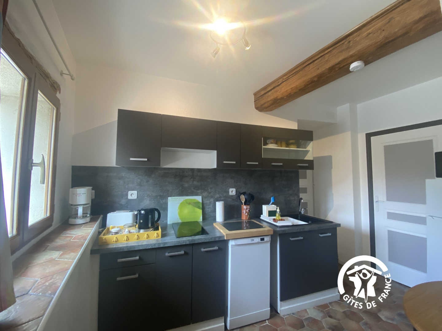 Sur la rue principale du village, cette ancienne bâtisse du XIXème siècle, propose un gîte et deux chambres d’hôtes aménagés à l’étage de la résidence des propriétaires. Par quelques marches, suite contraintes architecturales de la bâtisse, l’entrée commune dessert la pièce de jour des propriétaires et des hôtes des chambres d’hôtes afin d’accéder au jardin clos commun de 450 m², équipé d’un salon de jardin, de transats et d’une piscine commune (5 x 10 m x 1.20 à 2 m de profondeur), accessible de 10h à 20h. A l’étage, sont aménagés deux chambres d’hôtes (non labellisées Gîtes de France) et le gîte qui donne côté rue. Le gîte est équipé d’une cuisine, d’une pièce de jour avec coin repas et canapé, d’une chambre avec 2 lits 1 pers qui peuvent être assemblés en un seul lit, d’une salle d’eau avec douche et sanitaires. Possibilité d’accueillir un enfant de moins 12 ans avec un couchage supplémentaire. Le stationnement communal est à quelques mètres.
