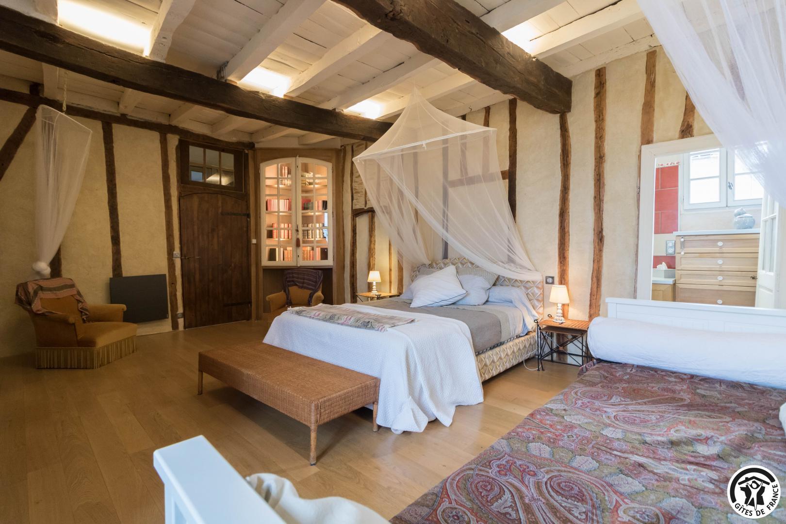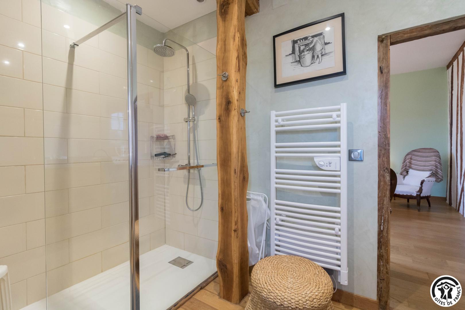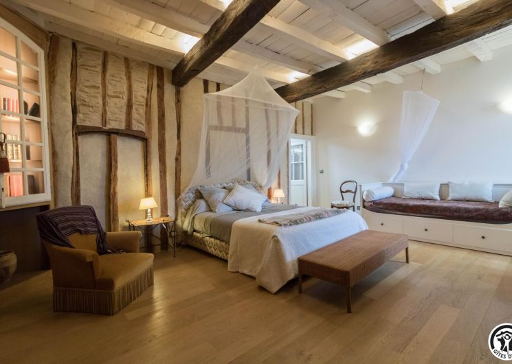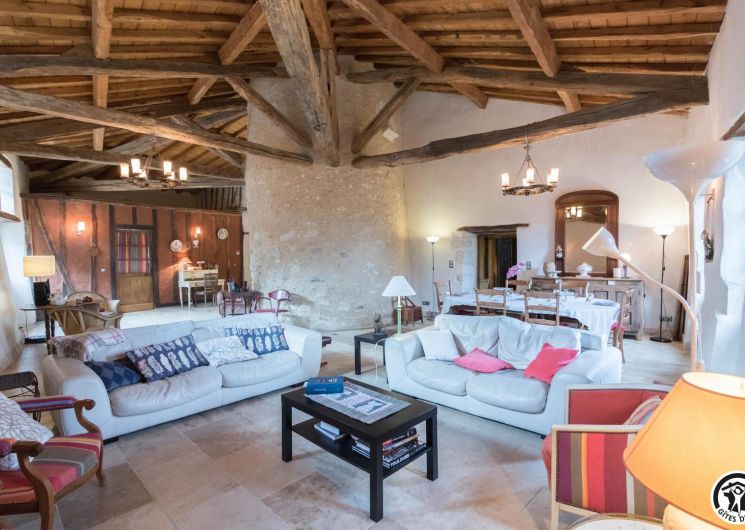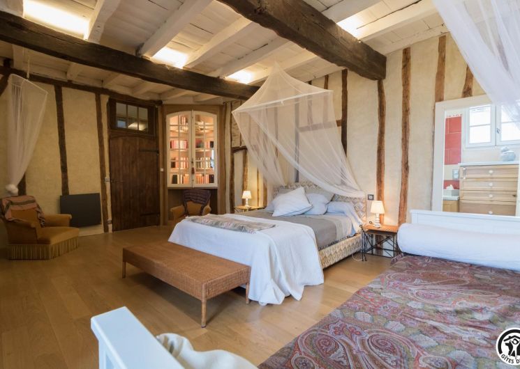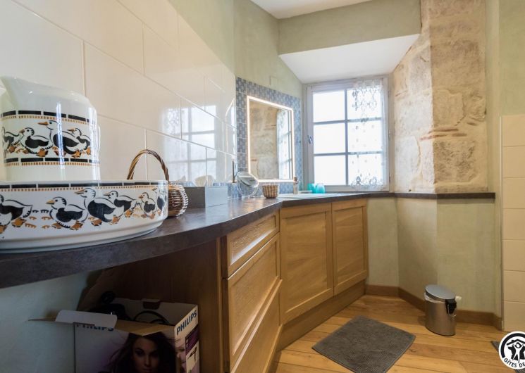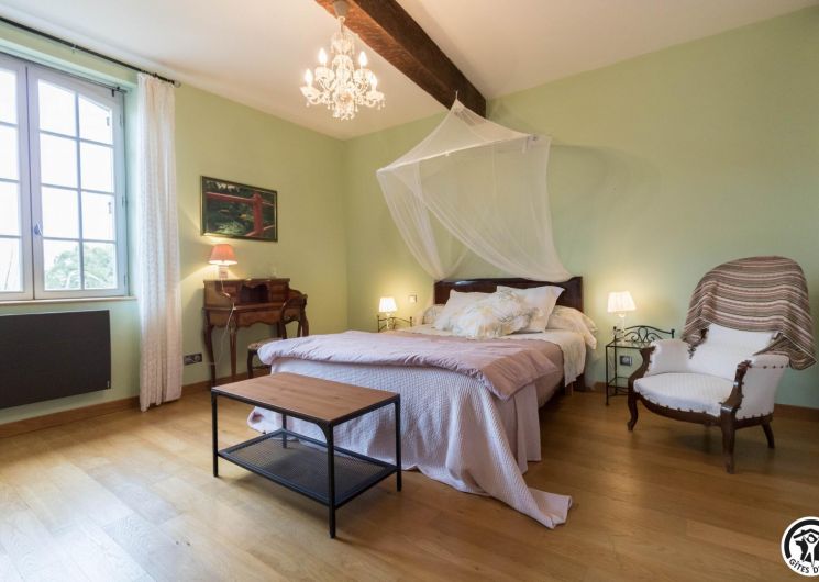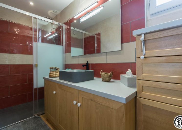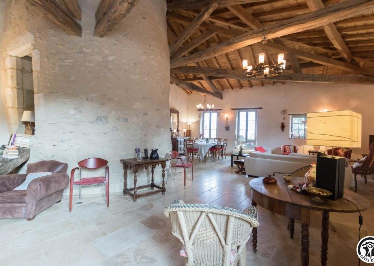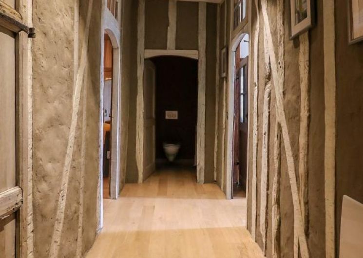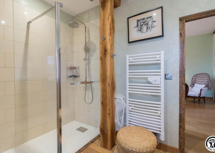 Ground floor: large living room, kitchen, separate WC and utility room, bedroom (180cm double bed) with private shower room/WC. Access to the two upper floors via a spiral staircase in the former tower. First floor: two bedrooms (1 double bed 160cm + 1 single bed 90cm) (1 double bed 160cm) with en-suite shower rooms, shared WC. Second floor: a children’s bedroom (1 double bed 140cm + 1 single bed 90cm) with en-suite shower rooms.