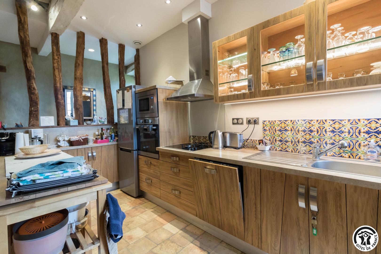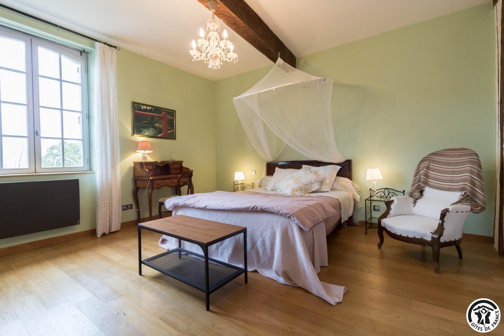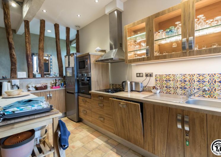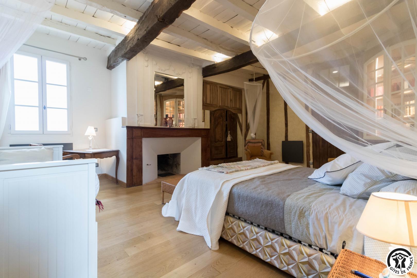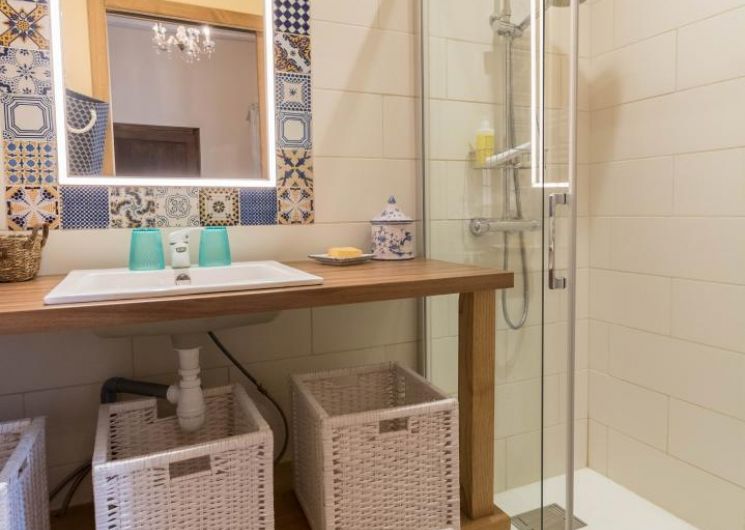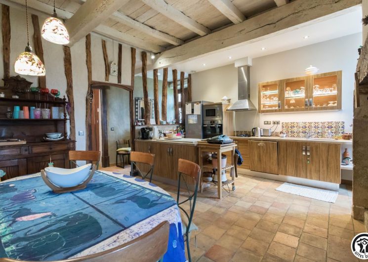 Ground floor: large living room, kitchen, separate WC and utility room, bedroom (180cm double bed) with private shower room/WC. Access to the two upper floors via a spiral staircase in the former tower. First floor: two bedrooms (1 double bed 160cm + 1 single bed 90cm) (1 double bed 160cm) with en-suite shower rooms, shared WC. Second floor: a children’s bedroom (1 double bed 140cm + 1 single bed 90cm) with en-suite shower rooms.