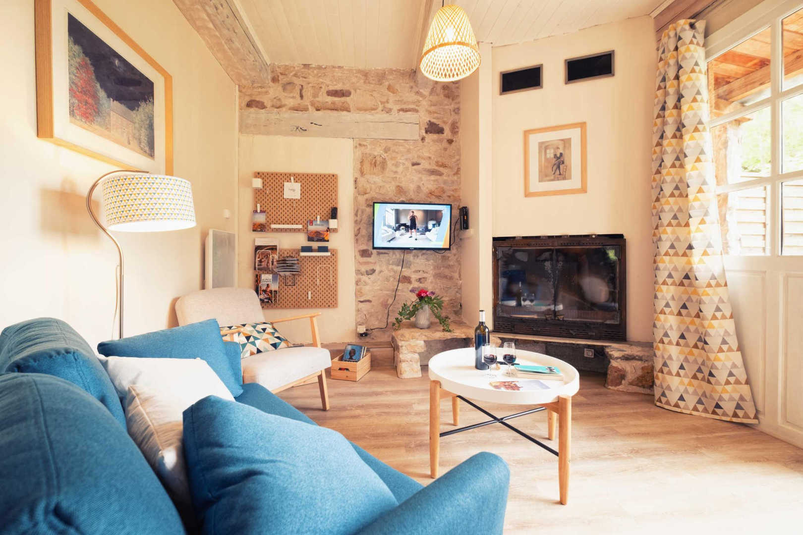 Ancienne grange avec ses pierres apparentes, restaurée par les propriétaires.