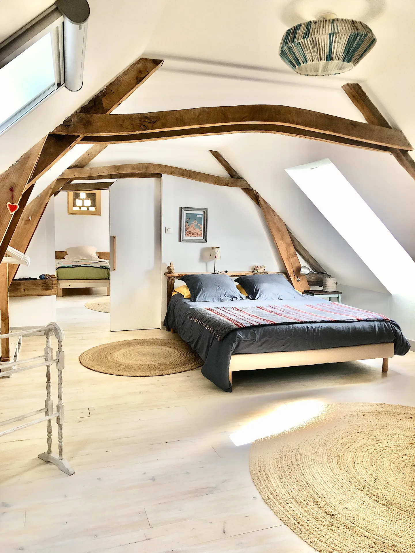 • 1 suite familiale de 2 chambres attenantes, salle de bains à l’entrée de la maison, couchages jusqu’à 6 personnes (en 90, 160, 180). Louée de préférence à partir de 3 personnes.