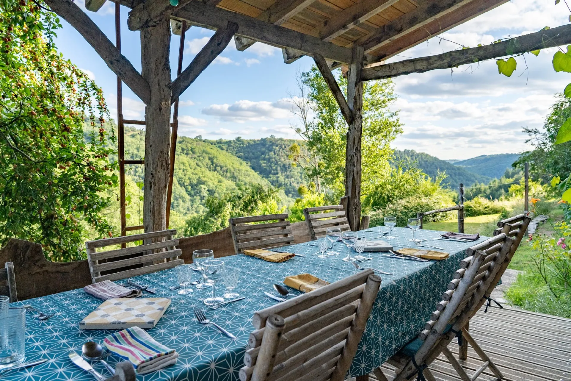 Frédérique et Nadia vous accueillent avec bonheur et bonne humeur dans leur domaine semi-sauvage tout en verdure et vieilles pierres. La maison d’hôtes est une ancienne étable, rénovée avec des matériaux naturels et meublée de pièces souvent uniques, chinées ou faites maison… Mais son charme “rustique chic” vous offre surtout une vue unique à 180 ° sur la magnifique vallée du Viaur !