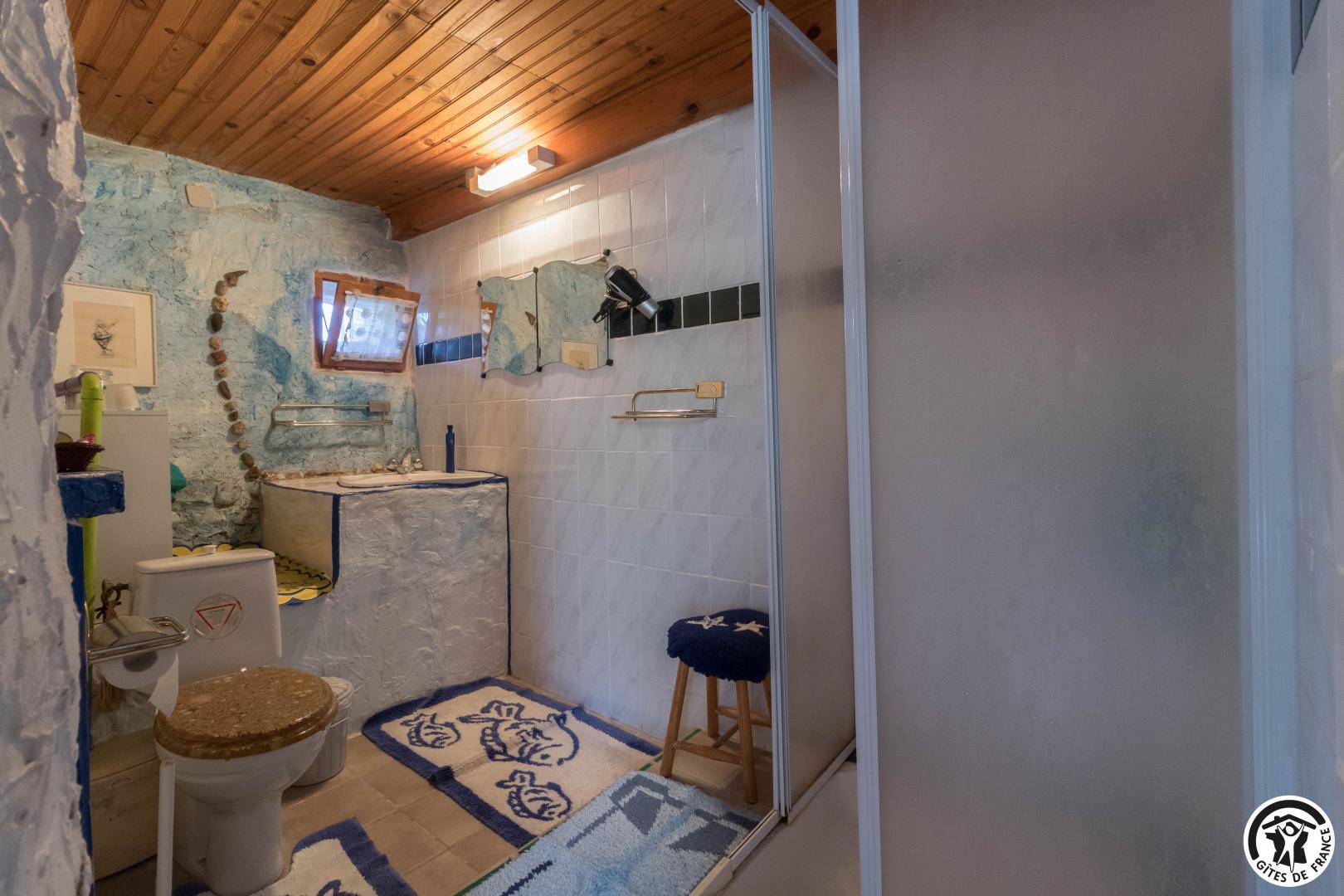 – First floor: bedroom (1 x 160cm double bed and sofa bed for 1 person), shower room, separate WC. Access via the private covered terrace. Extra bed available on request.
