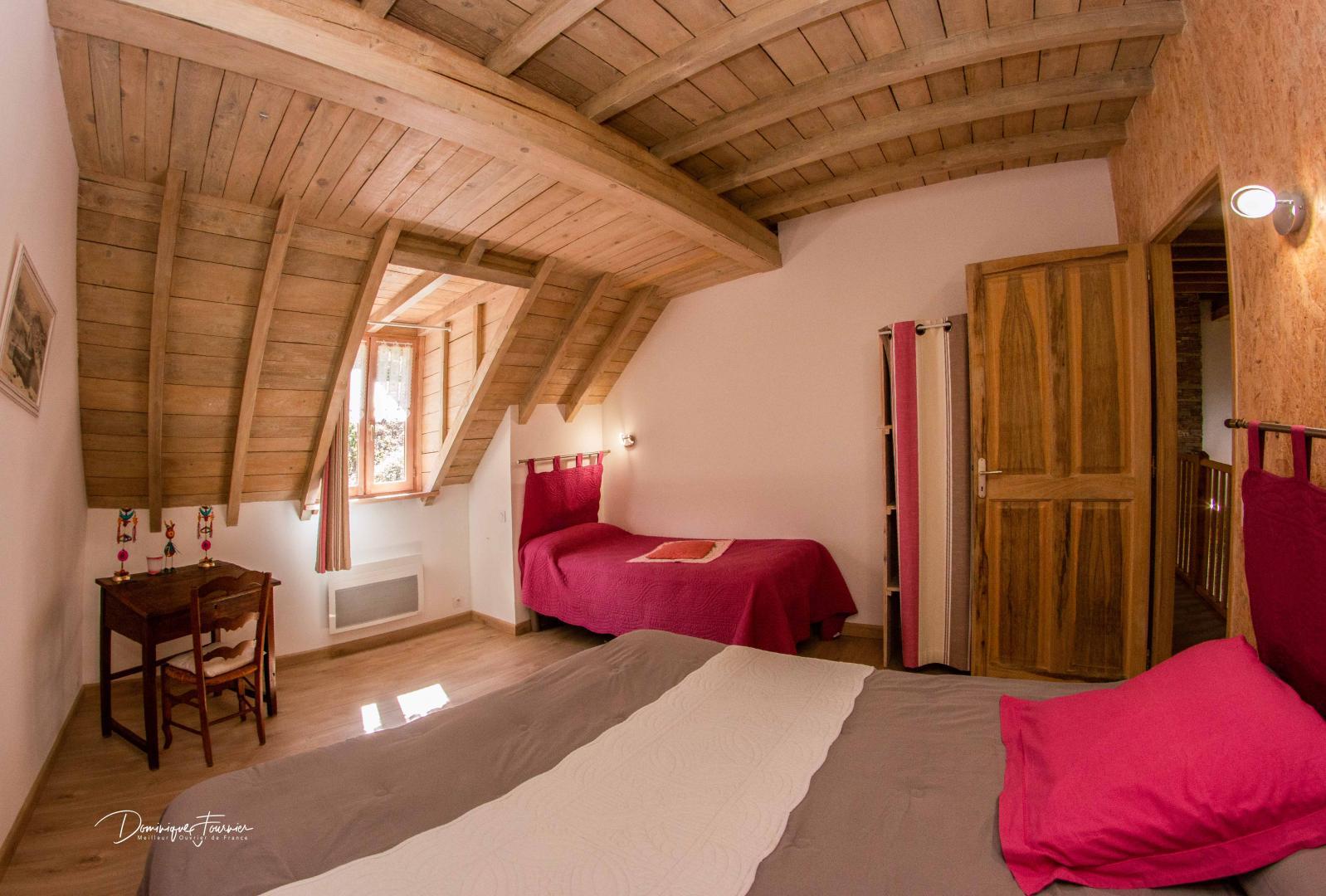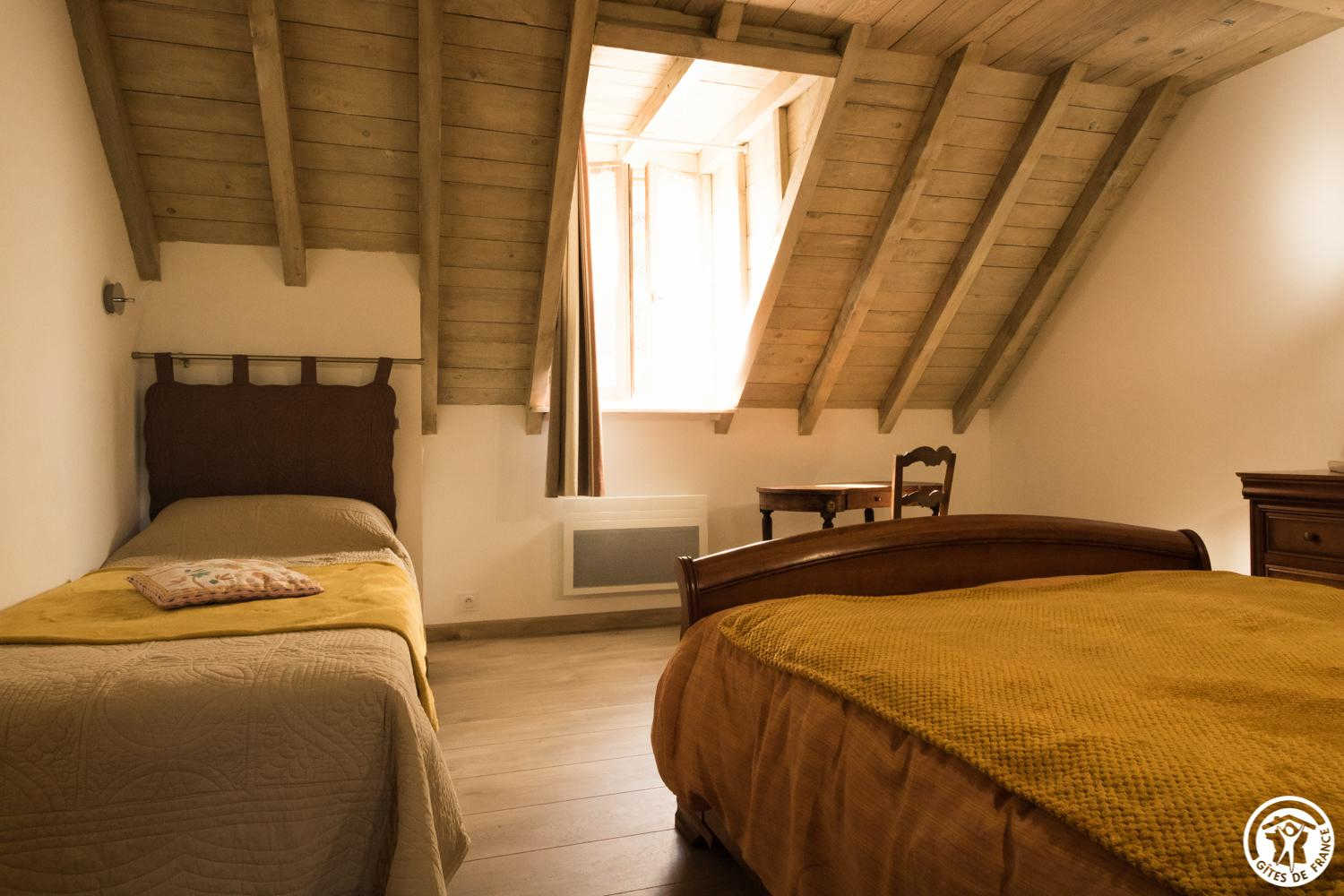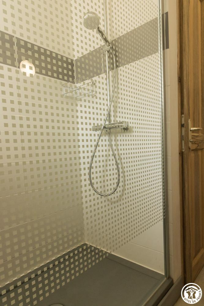 On the ground floor of the gîte: entrance after two steps, fitted kitchen (integrated oven, 3-burner ceramic hob, fridge-freezer, microwave), living room with dining area and sitting area, bedroom with small shower room and separate WC inside the bedroom (1 double bed 160*200cm). Upstairs: shower room with large shower and twin basins, separate WC, 2 bedrooms each with 1 double bed (160*200cm) and 1 single bed (90*190cm). Garden area. Parking space. Electric heating. Wifi internet access. Pets not allowed. Enclosed garden.