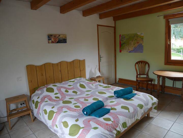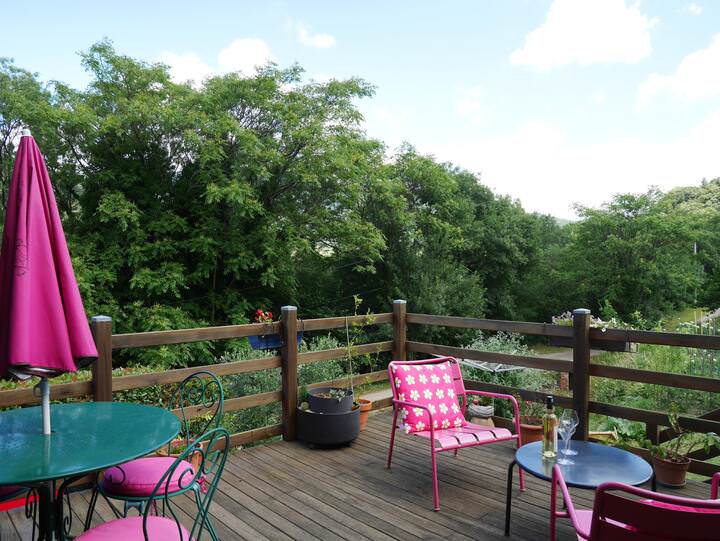 Wood frame house with private entrance. Warm atmosphere. On the edge of the greenway, 200 m from the listed medieval village. Traduction automatique par DeepL via DATAtourisme