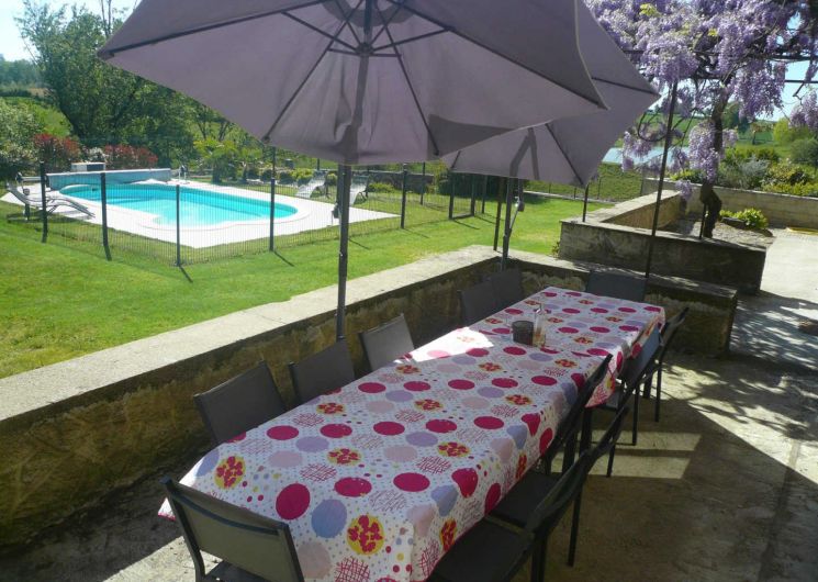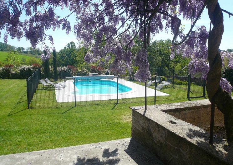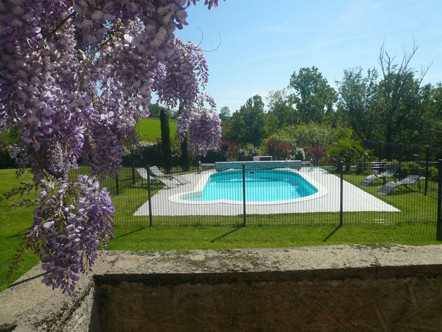 Vous pourrez flâner soit dans la cour intérieure dominée par son pigeonnier, soit dans le jardin privatif. Depuis le séjour, vous accédez à une terrasse avec salon de jardin qui fait face à la piscine. Une grande aire de jeux bétonnée se situe à coté du jardin pour le plaisir des plus petits et des plus grands avec un terrain de pétanque.