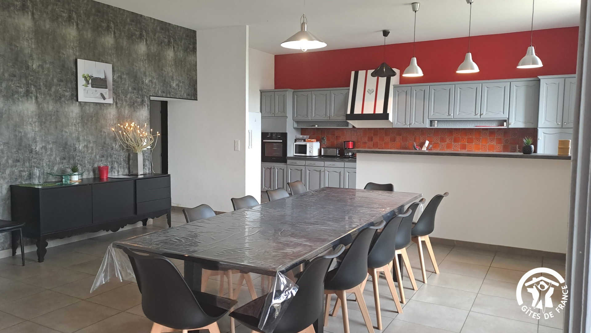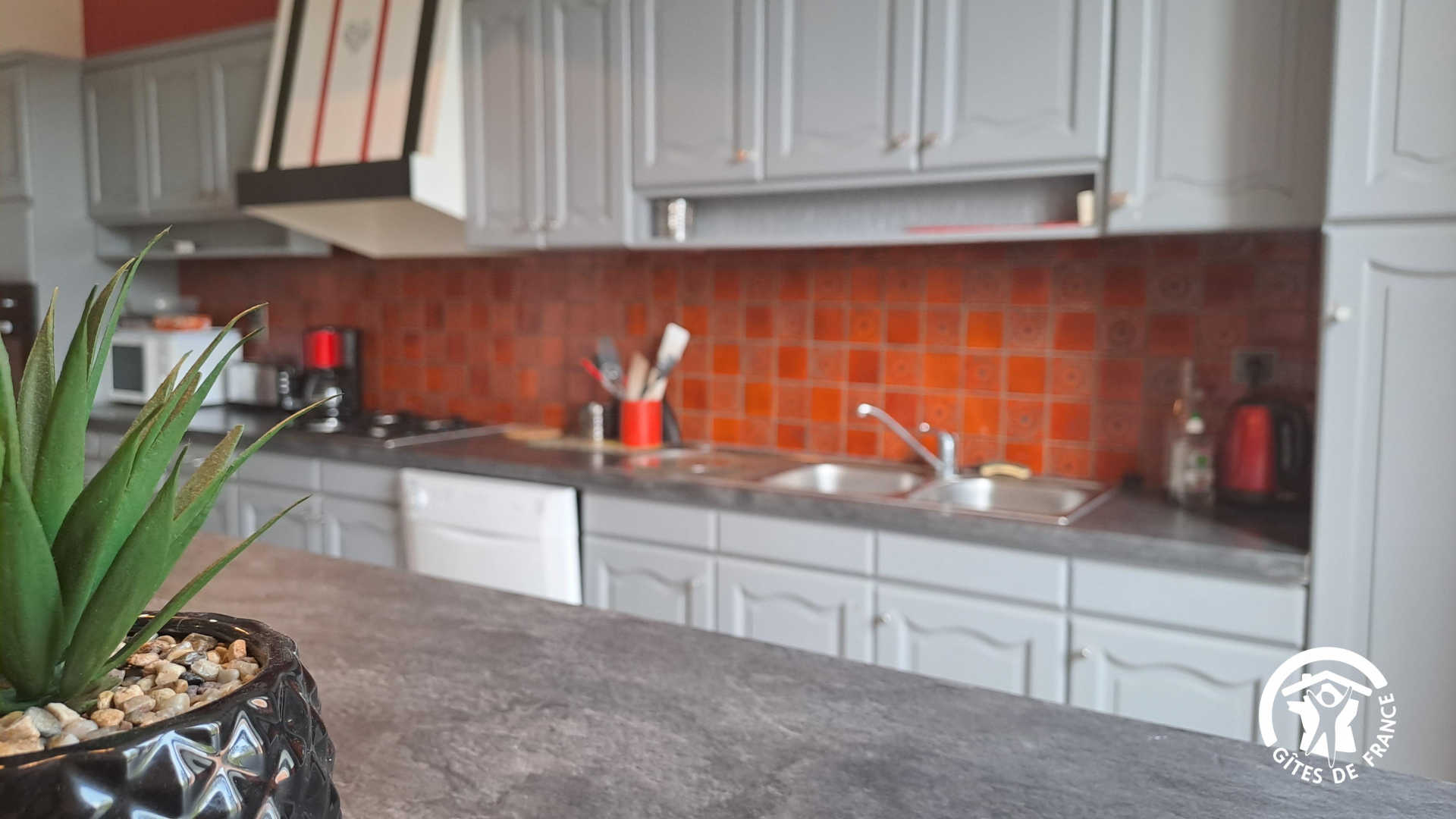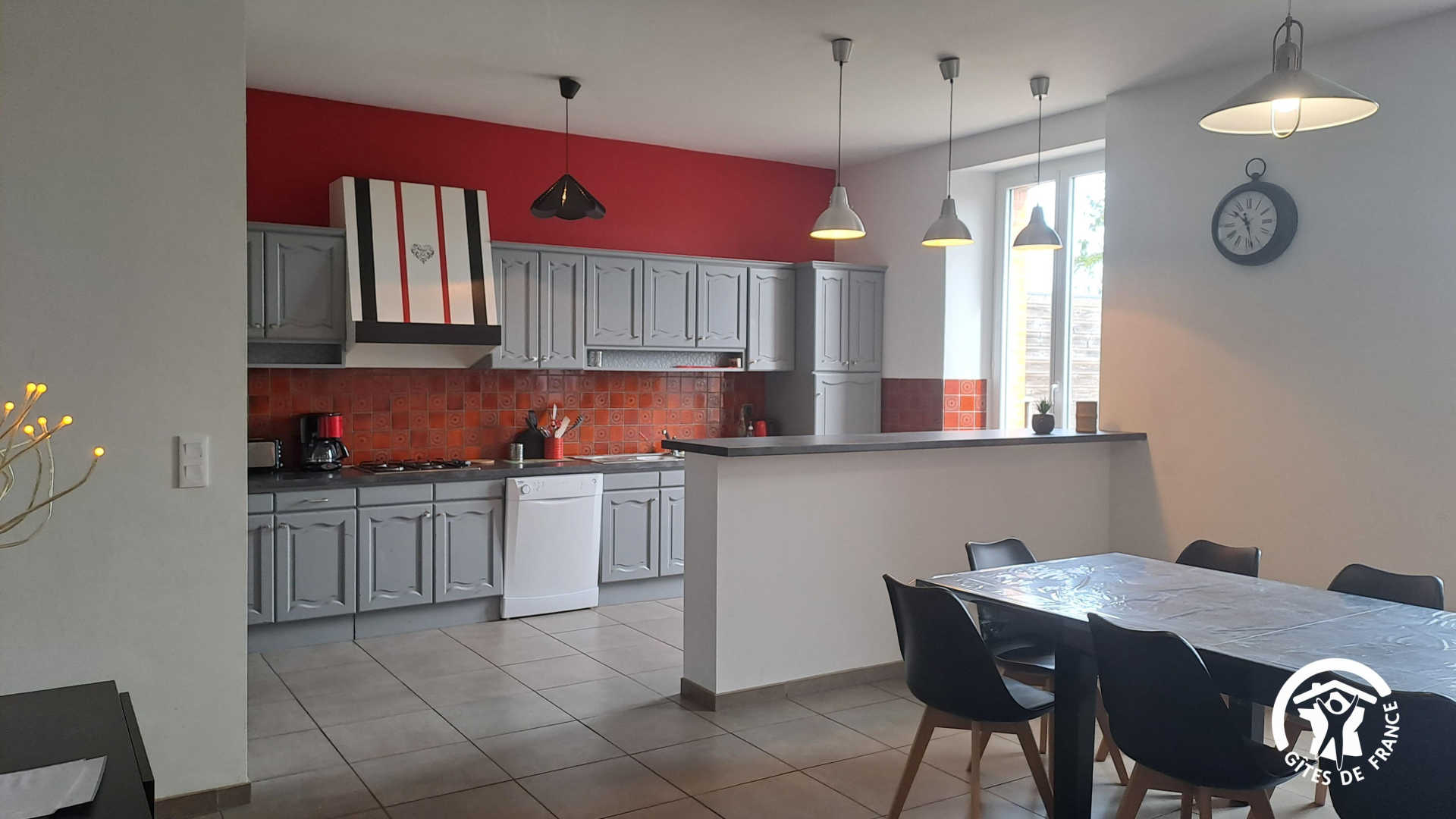 – Une grande cuisine/salle à manger avec lave-vaisselle, four, micro-ondes, réfrigérateur, grille-pain, bouilloire, cafetière à filtre. Une petite buanderie est attenante à la cuisine avec un second réfrigérateur et le lave le linge.