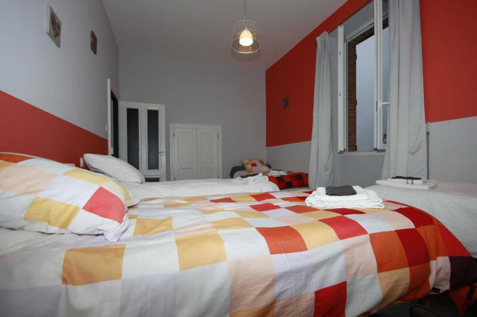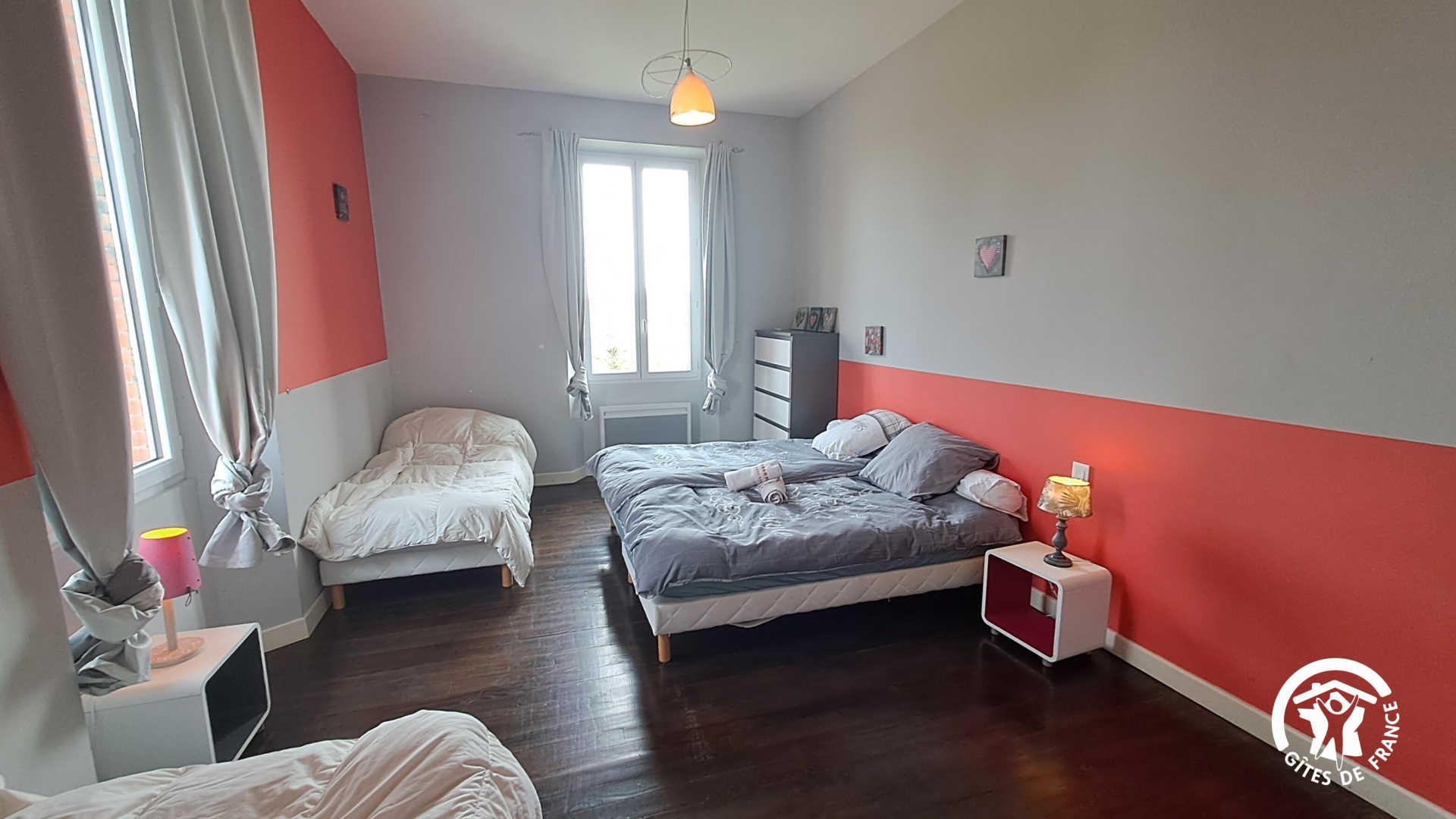 – Chambre “rouge” équipée de 4 lits simples en 90x190cm où deux lits peuvent se jumeler pour en faire un grand