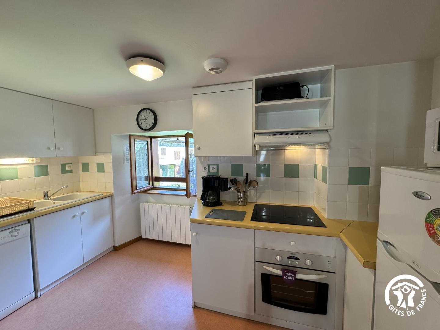 Gite in an authentic country house, with independent entrance. 1st floor: Large living room with equipped kitchen, wc. 2nd floor: 2 bedrooms (1 double bed) (2 bunk beds), bathroom (wc). The gîte opens onto a private sheltered balcony-terrace with a beautiful view of the surrounding mountains. Traduction automatique par DeepL via DATAtourisme