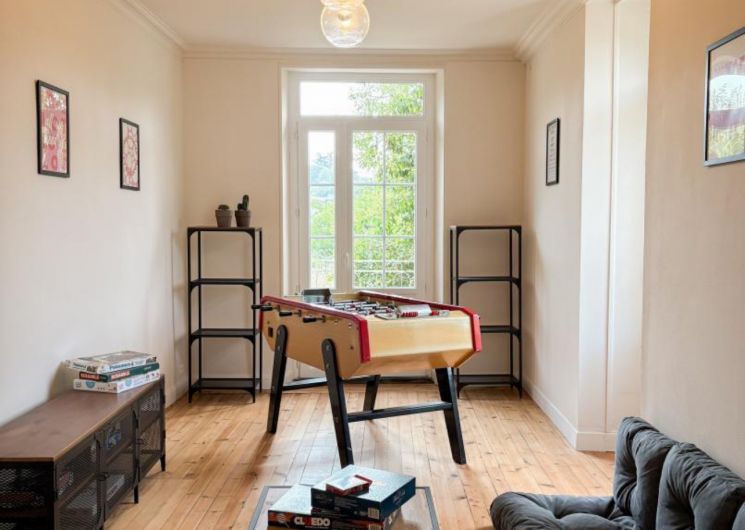 Le Clos d’Amée vous accueille à seulement 5 minutes du cœur historique de Cahors, tout en vous offrant la tranquillité et le charme de la campagne. Cette jolie maison, entièrement rénovée avec goût et soin, marie confort moderne et authenticité. Située à quelques pas de la piscine municipale et à proximité d’un practice de golf, elle se trouve également à côté du stade où vous pourrez profiter de terrains de foot, de basket ou encore de rugby. À l’intérieur, de vastes chambres lumineuses, décorées avec élégance, vous invitent au repos. Une salle de jeux ravira petits et grands, tandis que le jardin entièrement clos vous permettra de profiter de moments conviviaux en toute sécurité. Terrain clos et parking. Formule tout inclus.