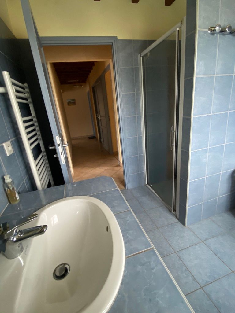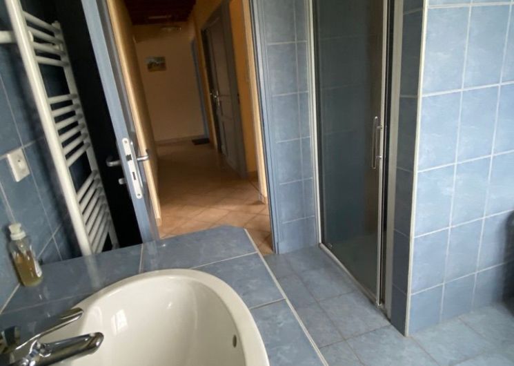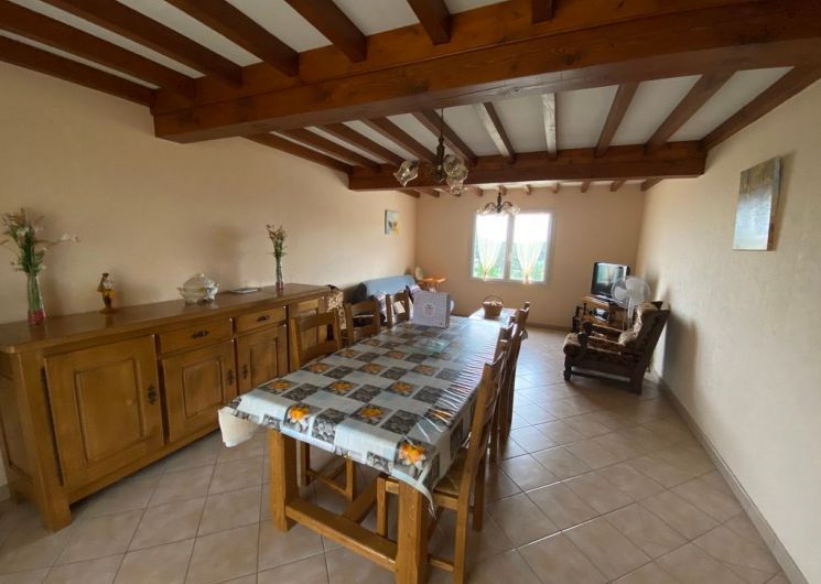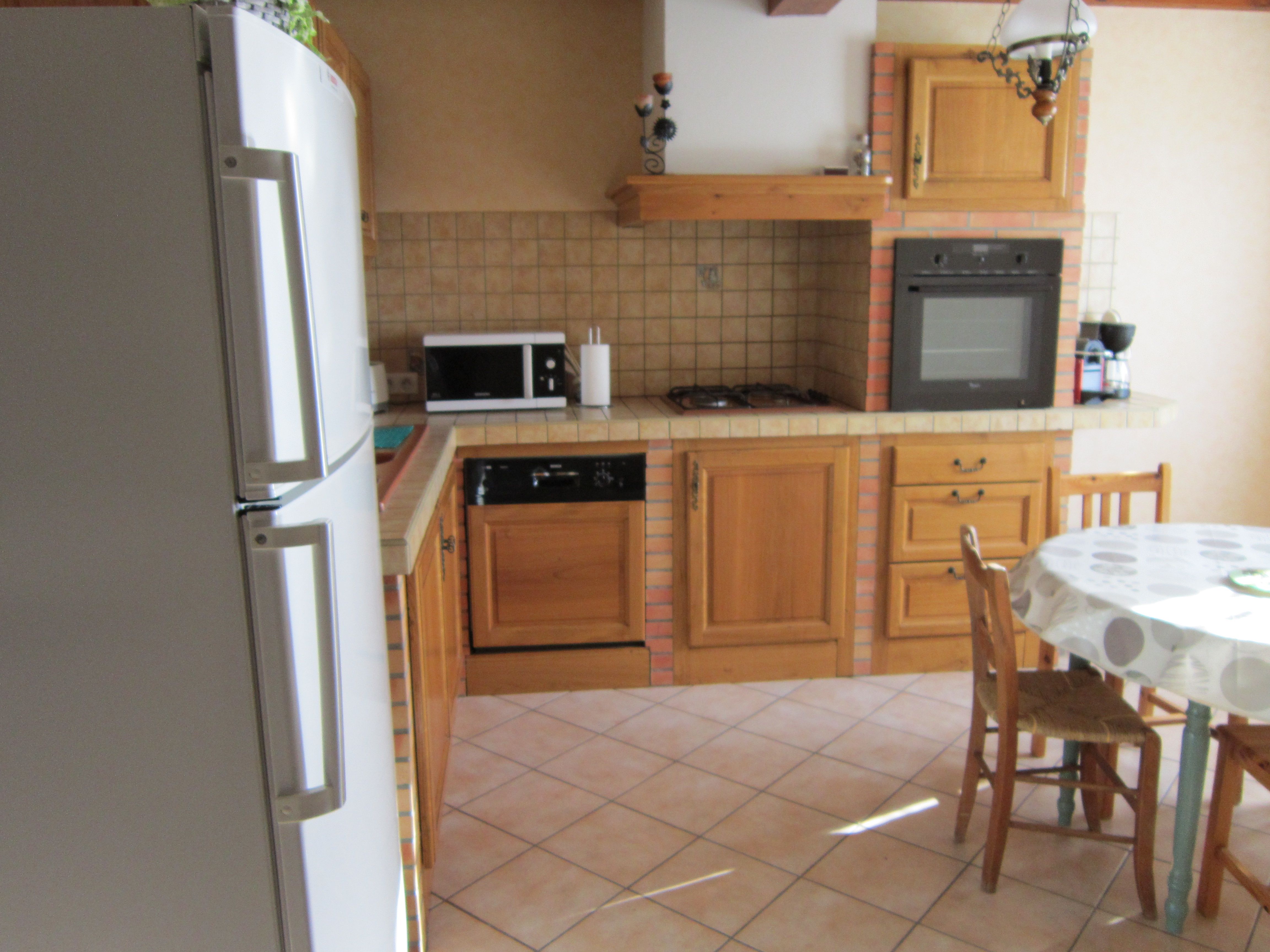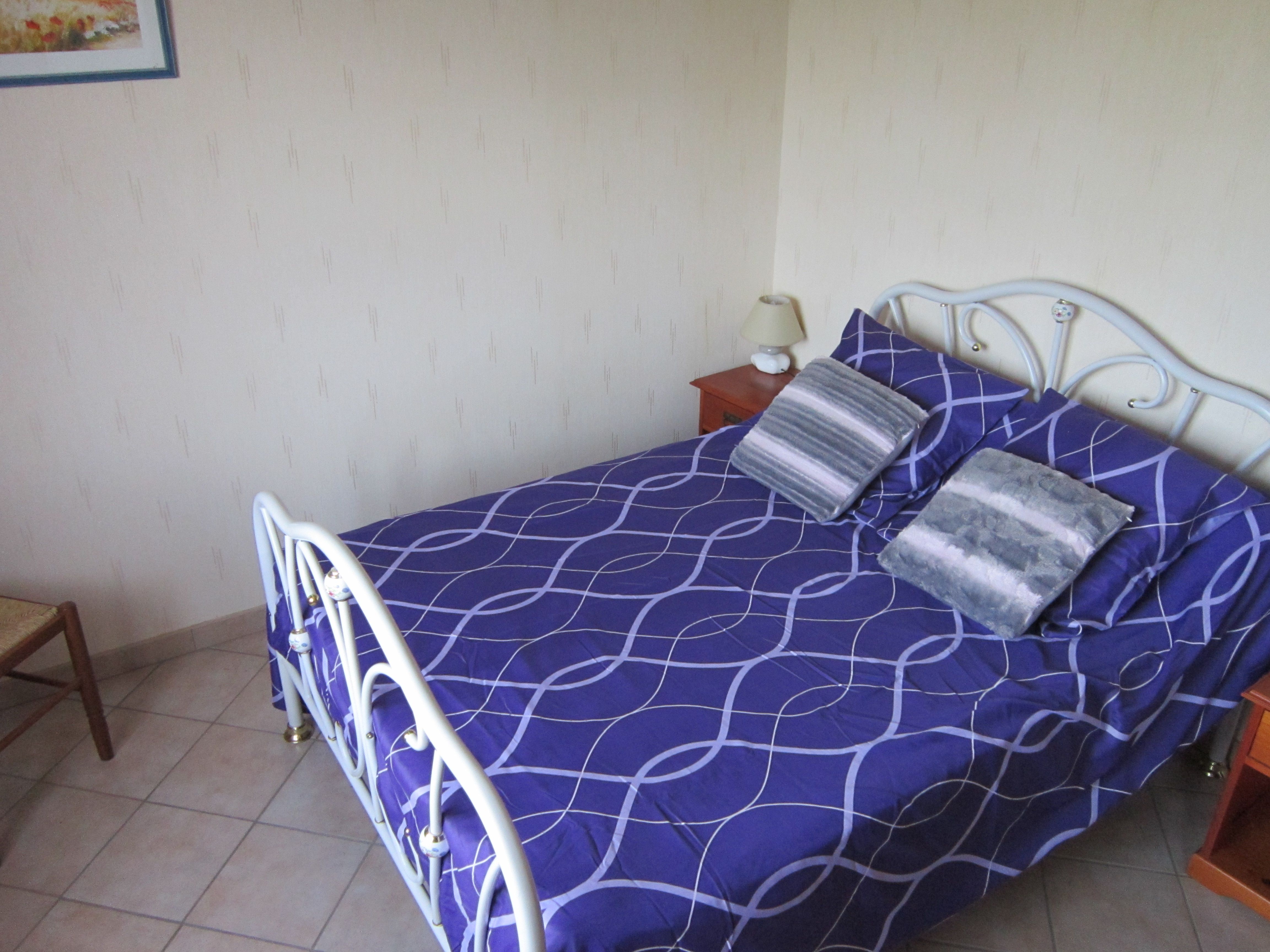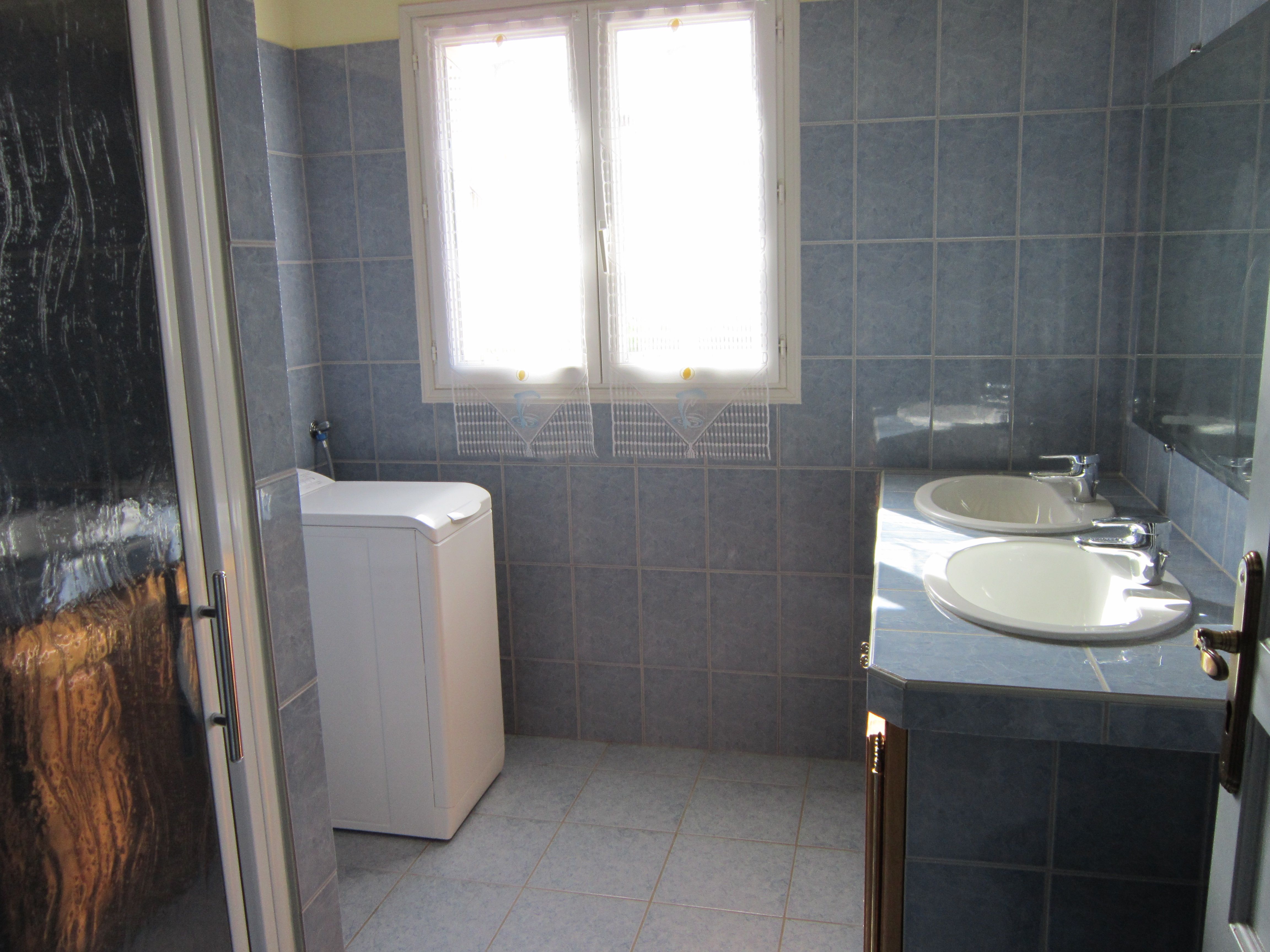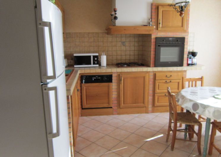 The ground floor comprises an entrance hall leading to a kitchen (fitted units with hob, dishwasher, oven, microwave, fridge-freezer), a dining/living room (table, chairs, sofa, armchairs, TV). A corridor leads to 3 bedrooms (each with 1 double bed), a shower room with shower and 2 washbasins, and a separate toilet. In the basement there is a garage with barbecue and another toilet. There are 2 outdoor dining options, either on the terrace at the entrance or at the back of the house in the shade. Wifi in the accommodation. Bed linen and towels provided as an option. Linen provided included in the price. Heating not included