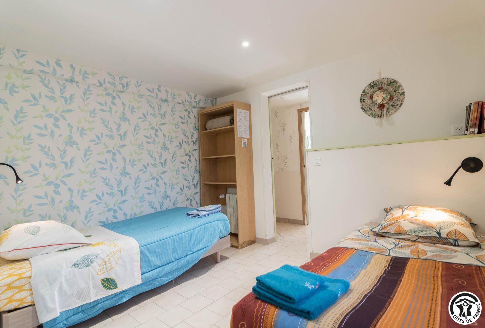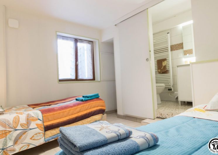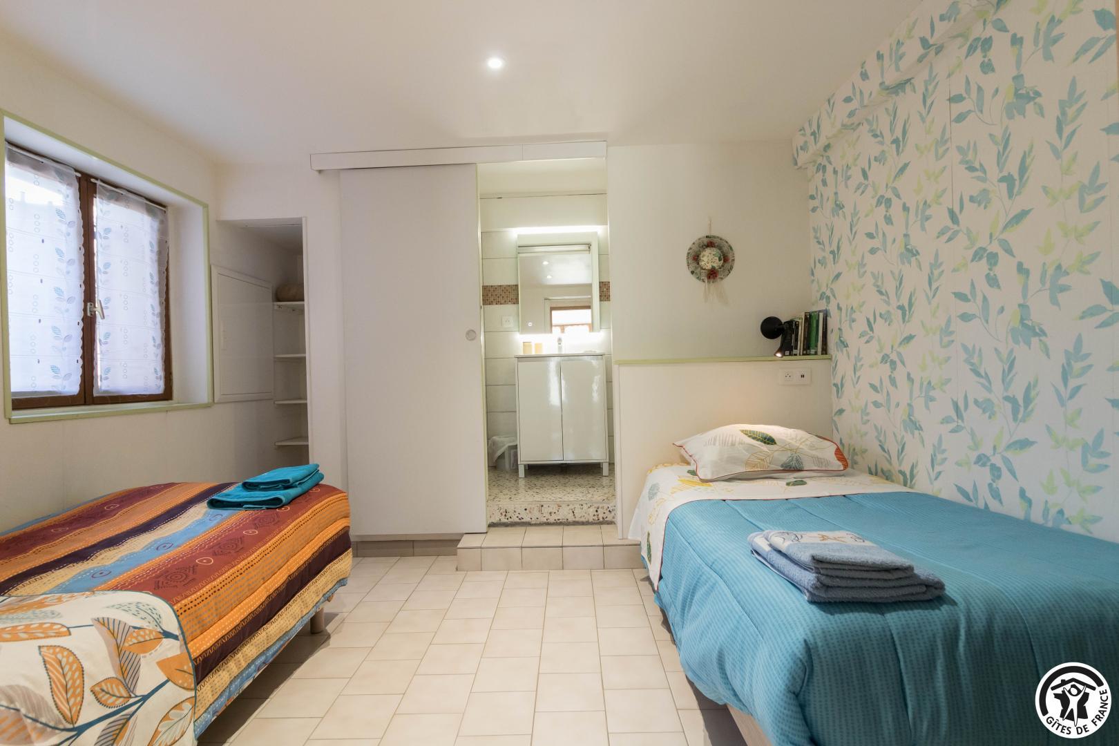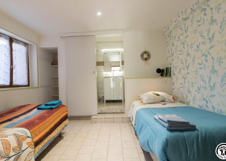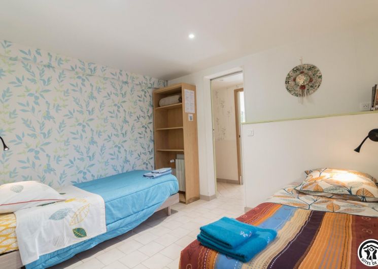 On the ground floor of the owner’s house, accessible from the outside, this family room offers 2 separate bedrooms (4 single beds, 2 of which can be twinned), each with its own shower room/WC. One of the bedrooms has a desk. Breakfast will be served in the living room (lounge area, dining area and fitted kitchen), which is itself accessible to holidaymakers. Outside, you can relax on the terrace and in the garden.