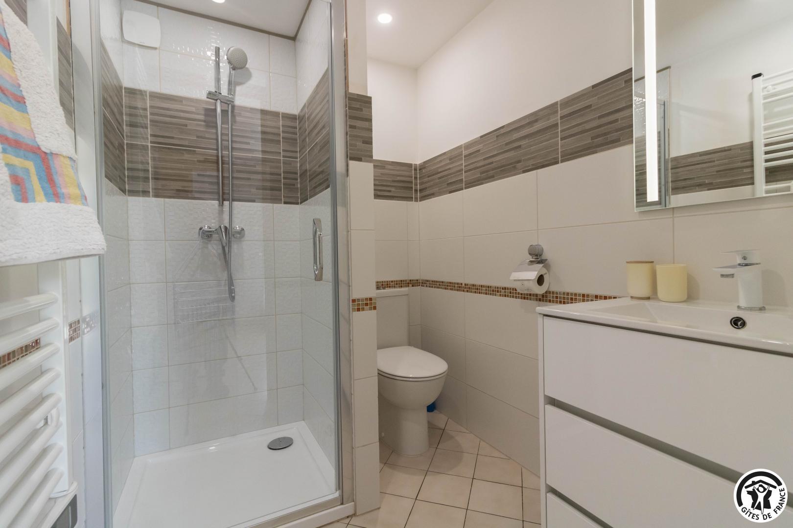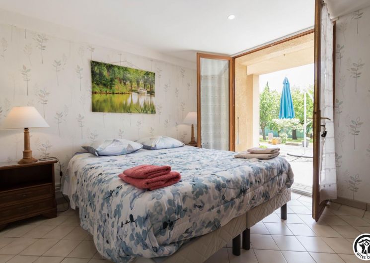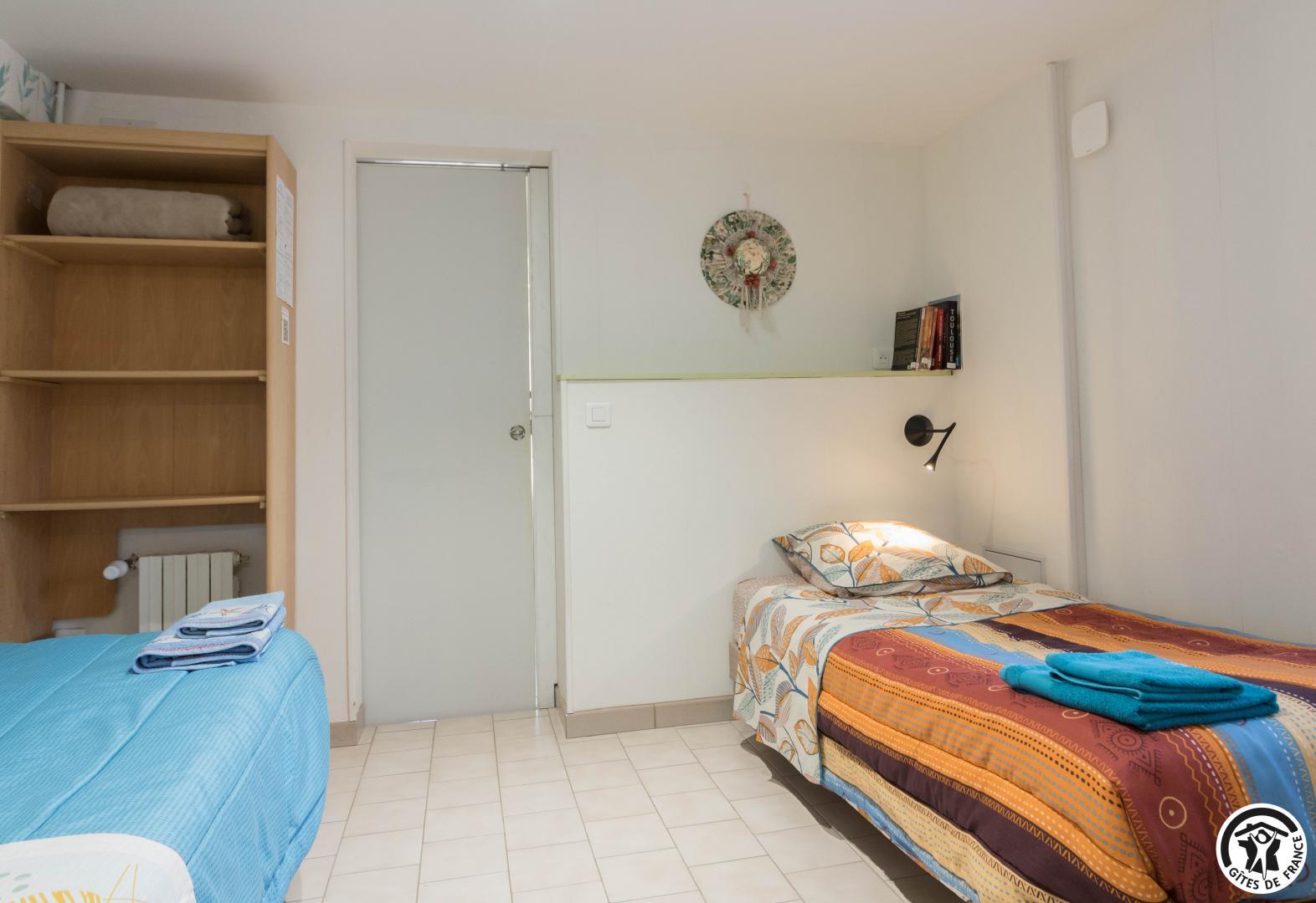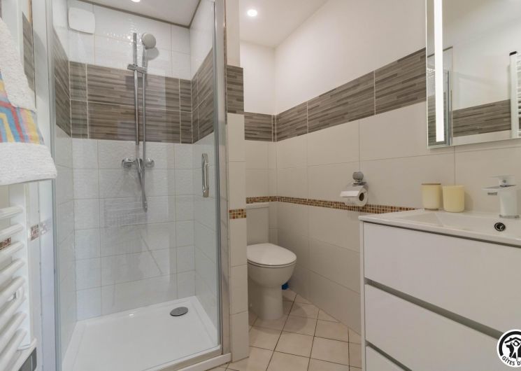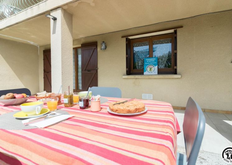 On the ground floor of the owner’s house, accessible from the outside, this family room offers 2 separate bedrooms (4 single beds, 2 of which can be twinned), each with its own shower room/WC. One of the bedrooms has a desk. Breakfast will be served in the living room (lounge area, dining area and fitted kitchen), which is itself accessible to holidaymakers. Outside, you can relax on the terrace and in the garden.
