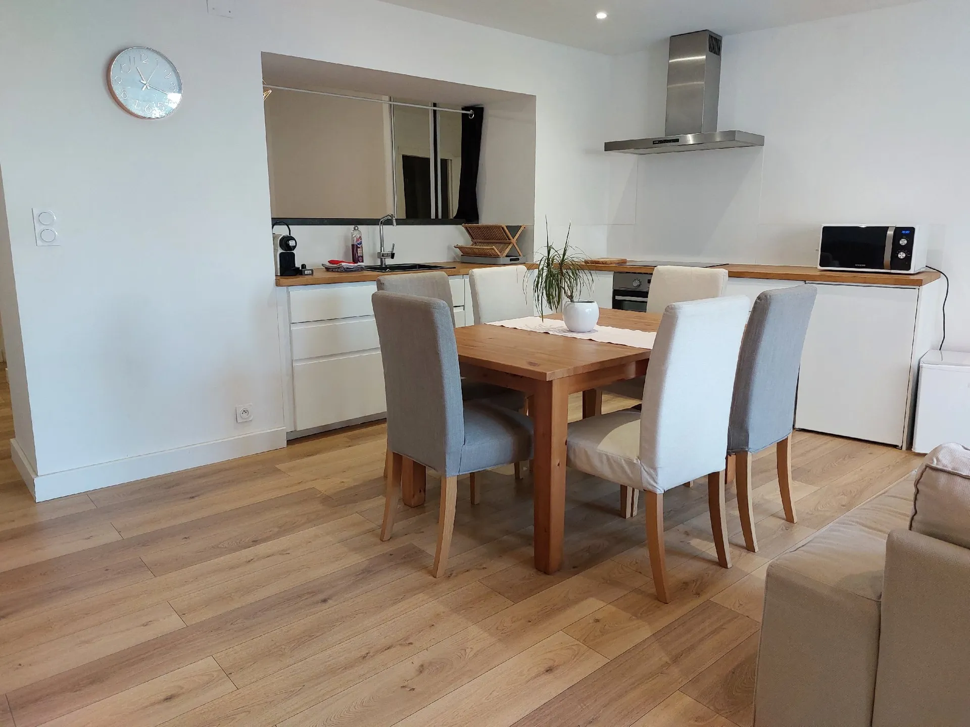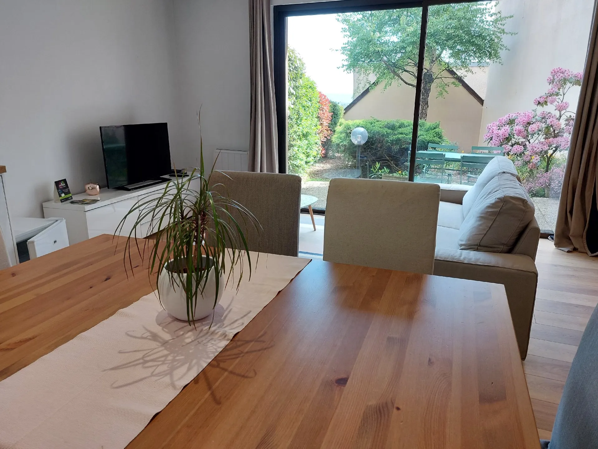 Apartment in the modern city center, spacious (55m²) and quiet with terrace and private garden, unoverlooked, with view upon the Aubrac mounts.