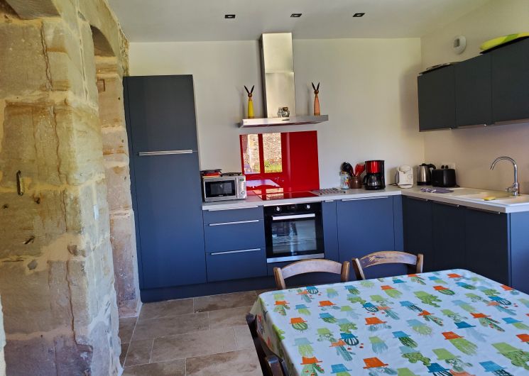 Accès au gîte par quelques marches pour accéder au bolet. Au RDC : un séjour et une cuisine tout équipée,1 chambre( lit en 160) avec sa salle d’eau privative et WC ind avec lave-mains A l’étage : 4 chambres ( 3 avec 1 lit en 140 et 1 avec 2 lits en 90 ), 1 salle d’eau, 1 salle de bains ( baignoire, WC ) et 1 WC ind Draps, linge de toilette et ménage en option/chauffage électrique avec supplément sur relevé de compteur Accès WIFI/ Table extérieure , barbecue, transats
