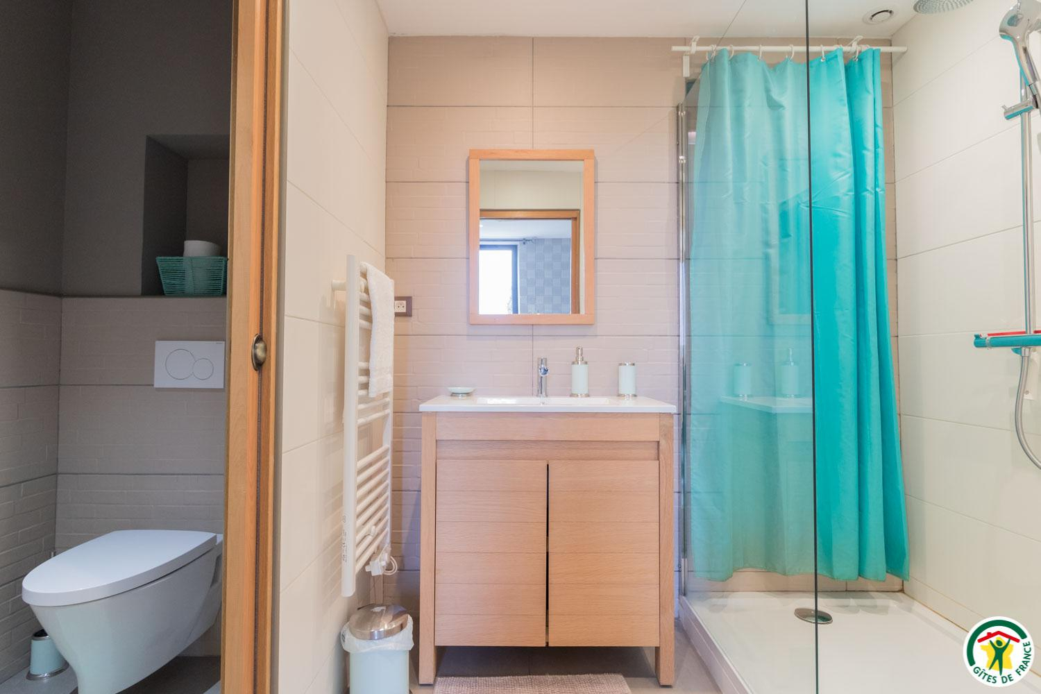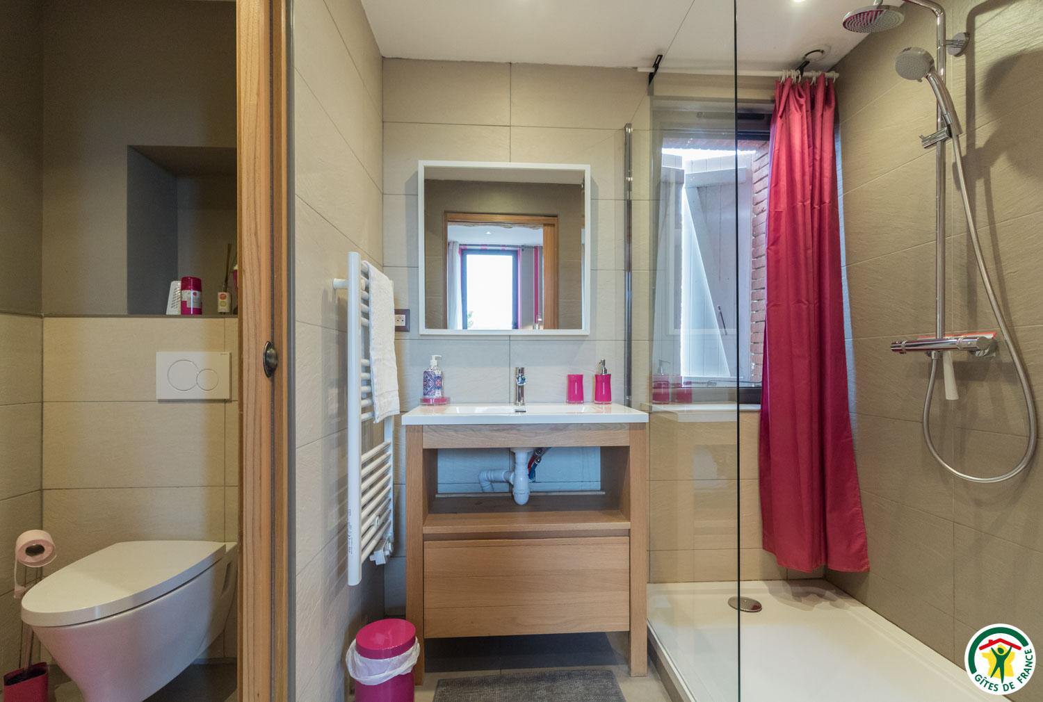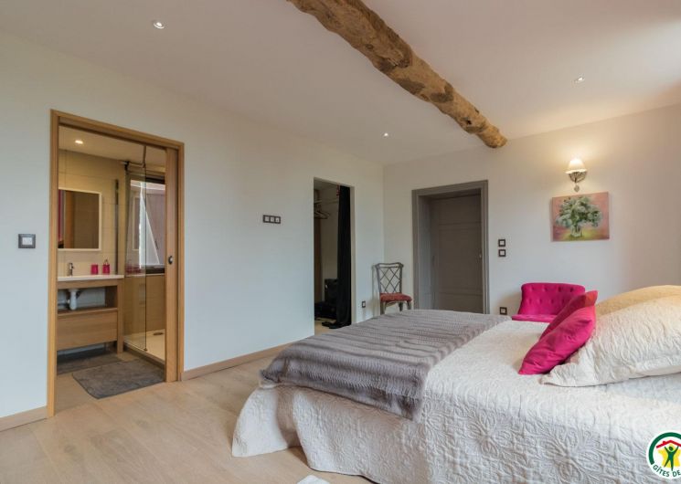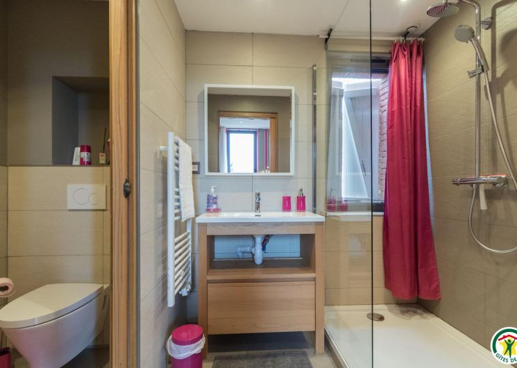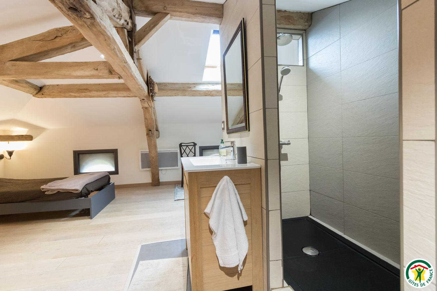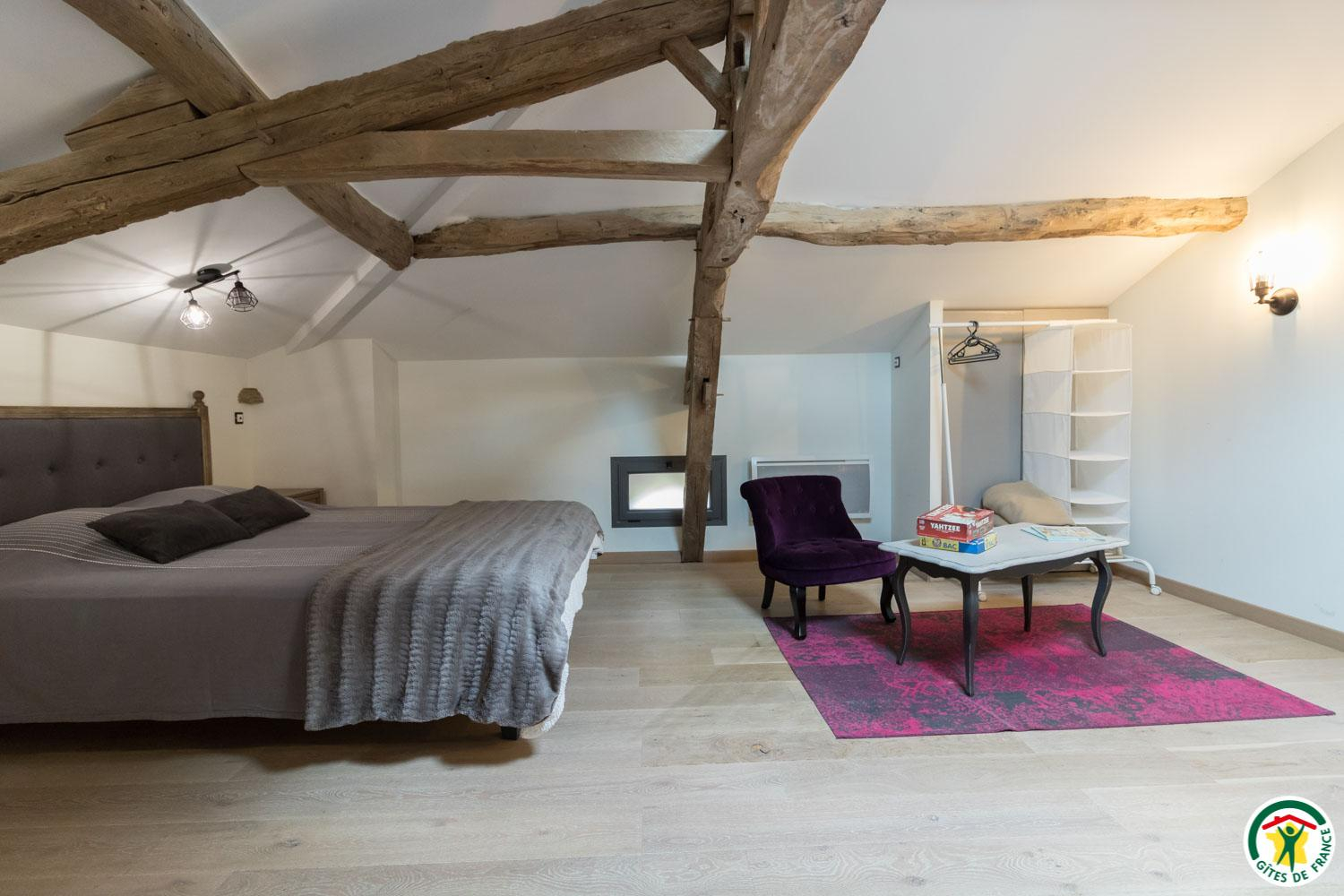 – On the second floor under the rafters (exposed trusses): 2 bedrooms (1 double bed 160*200cm + 2 single beds 90*200cm) (1 double bed 160*200cm + 1 single bed 90*200cm + open shower room), separate WC.