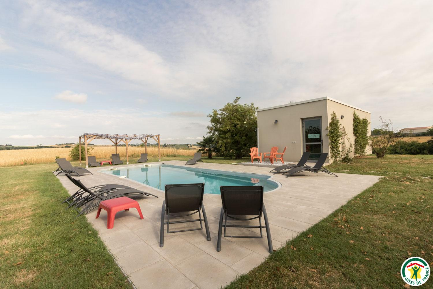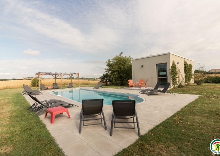 Le Grand Esquilat adjoins its other gîte (Le Petit Esquilat). The swimming pool and bowling green are shared between the 2 gîtes, but the terrace is private. Modern decor and comfort guaranteed!