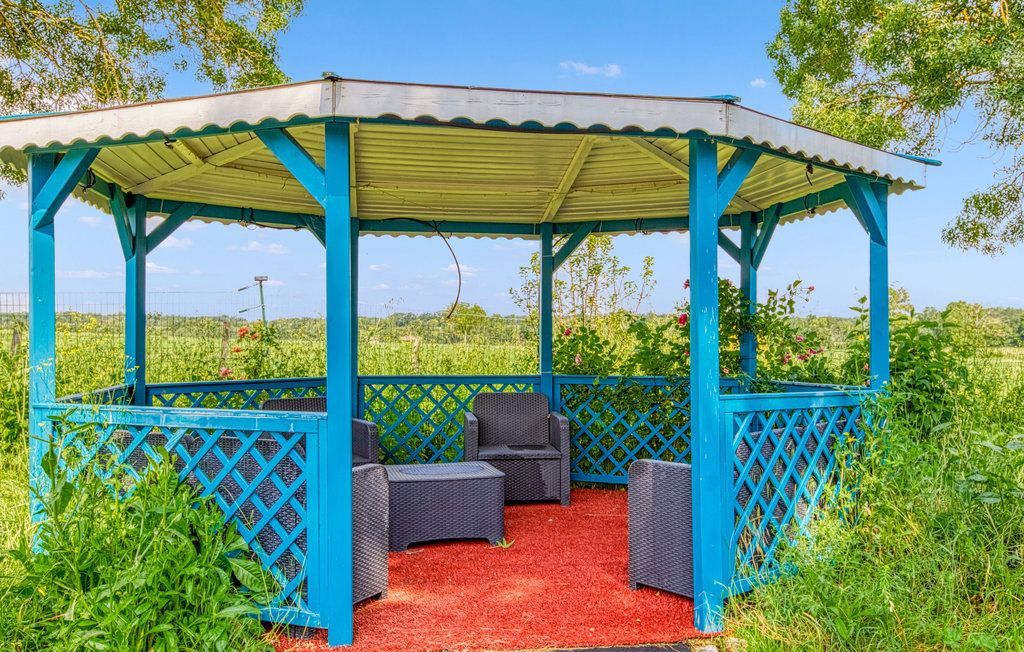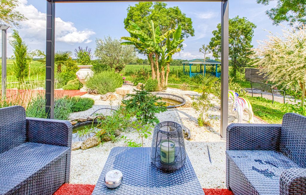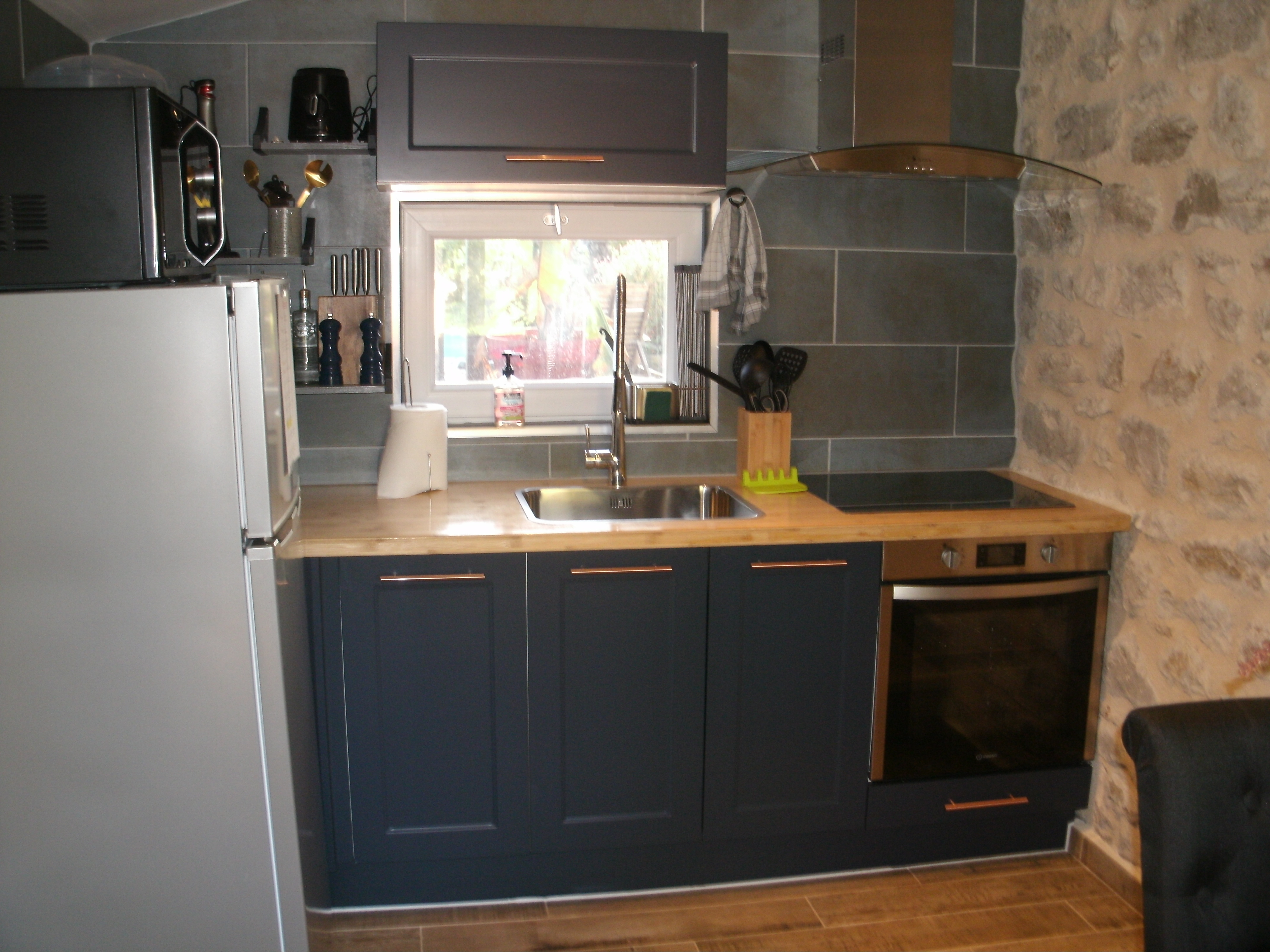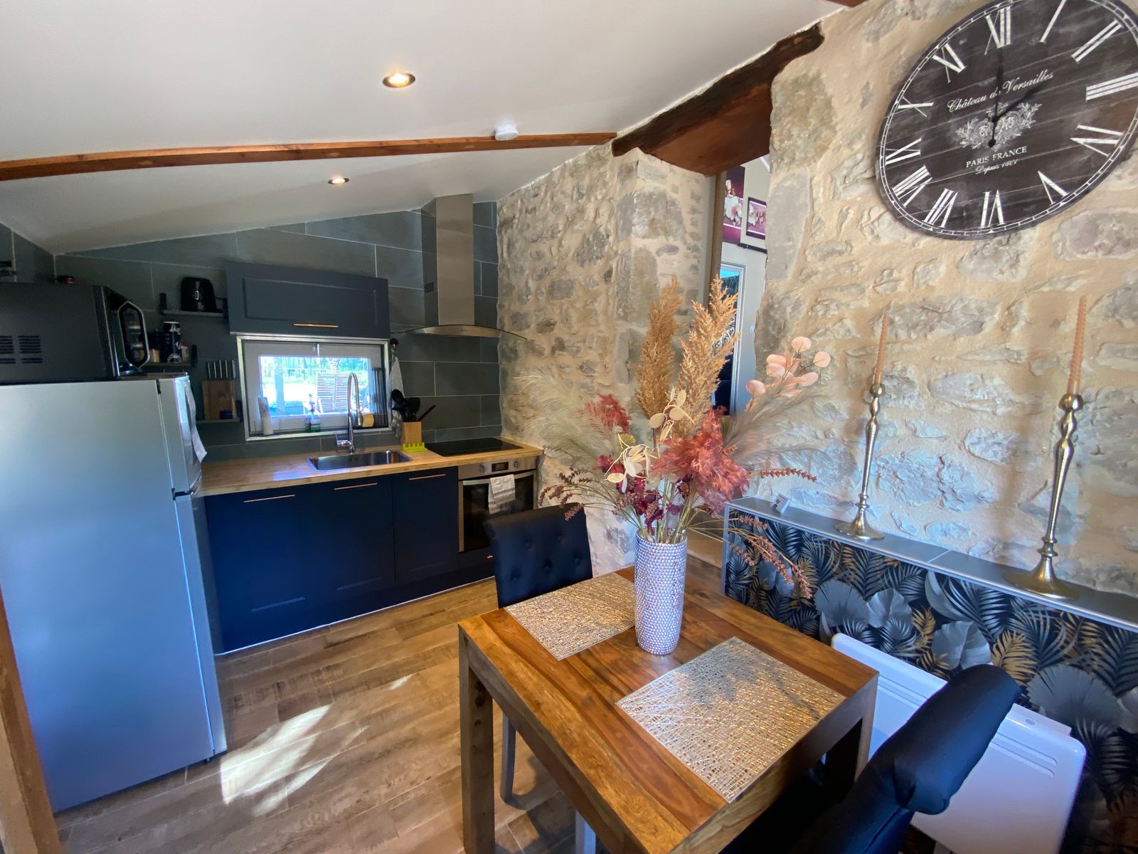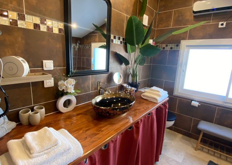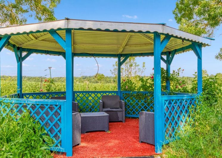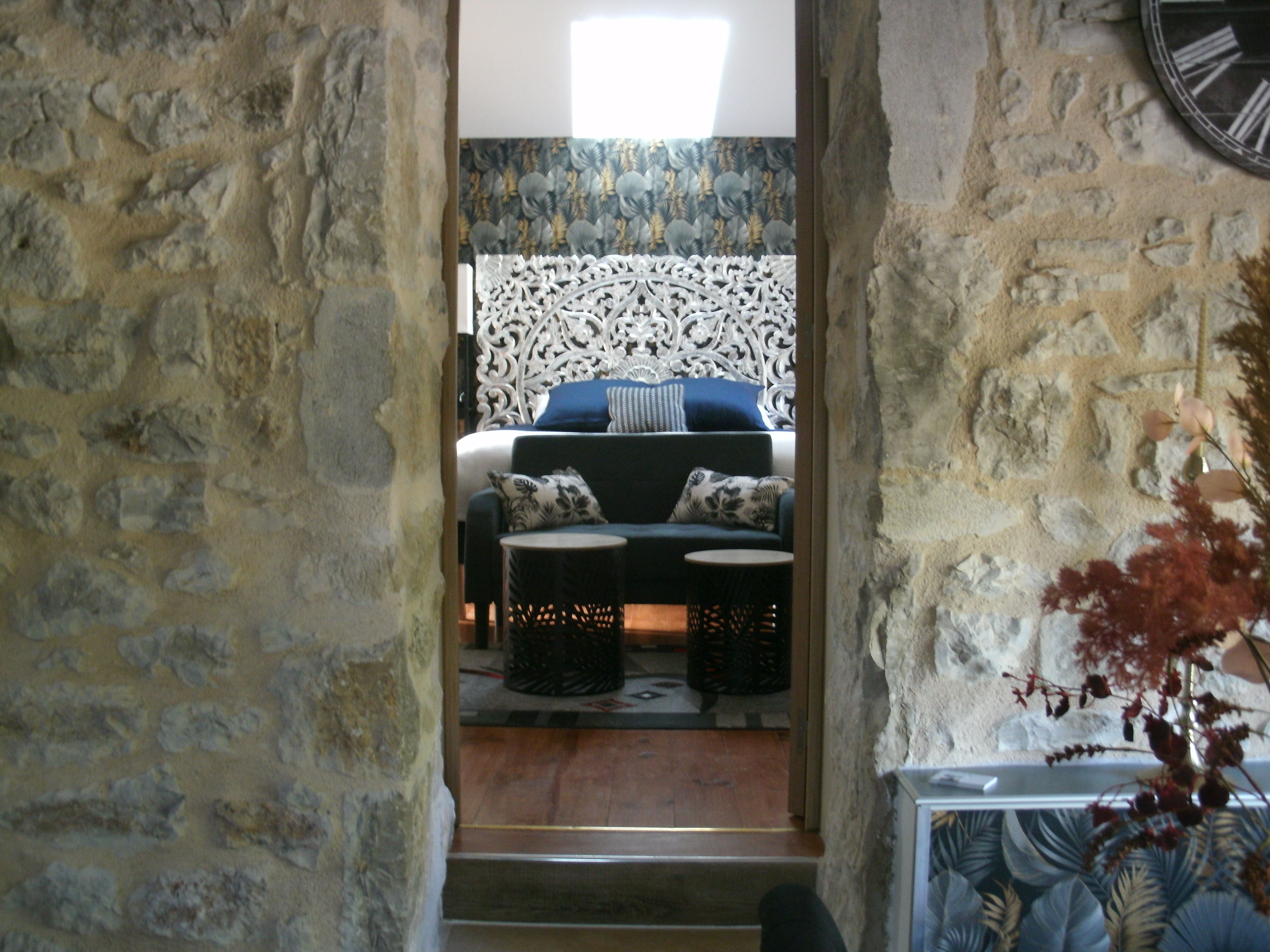 After a few steps from the car park, access to the terrace, garden furniture and pergola. One step leads up to the living area (fitted kitchen: fridge, freezer, hob, oven, microwave) with table and chairs. After 4 steps, the bedroom with 1 x 160 x 200 bed, sofa and TV. Bathroom with shower and bath, washing machine and tumble dryer. Bed linen and towels provided, included in the price. Free Wi-Fi in the accommodation. Essential oils for the Hammam. Bathrobes provided. From 1 May to 31 October, access to the shared swimming pool and spa.