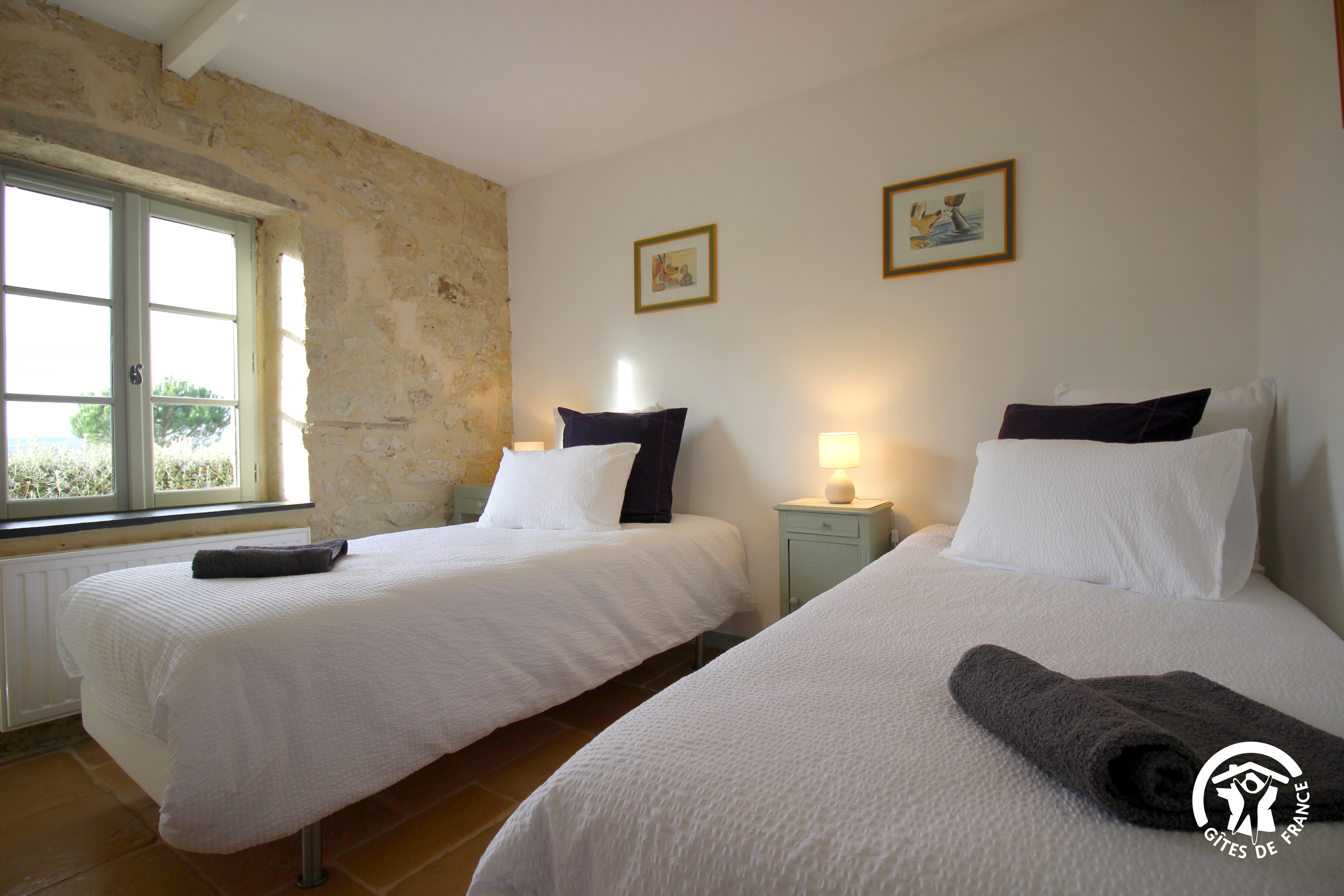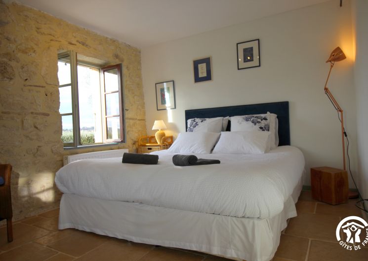 Situated between the Ténarèze, Lomagne and Armagnac regions, the gîte, which was completely renovated a few years ago, is located on a vast 5-hectare estate in the commune of Saint Puy, offering a peaceful setting in the heart of the countryside. It can accommodate up to 4 people and boasts a breathtaking view over the village of Saint-Puy and the surrounding hills. The gîte is close to the home of the owners, who are both charming and discreet, guaranteeing a serene and pleasant stay. Covering an area of 100 m², this detached house is very bright and has a modern, refined interior. It includes a spacious 47 m² living room with wood-burning stove, as well as a fully-equipped open kitchen (with dishwasher, washing machine, stove, oven, fridge, Nespresso coffee machine and kettle). The gîte also includes two bedrooms: both with twin 90cm beds. The bathroom has a walk-in shower, washbasin and toilet.