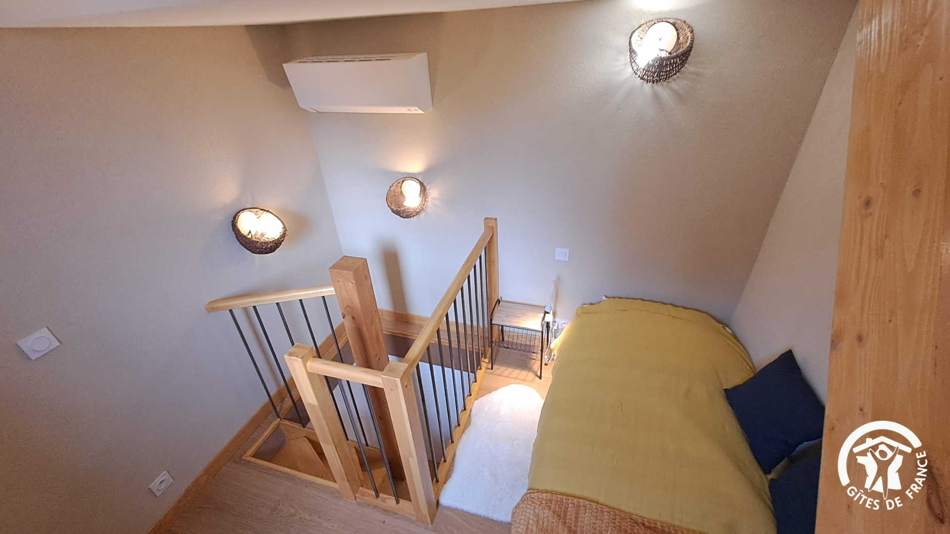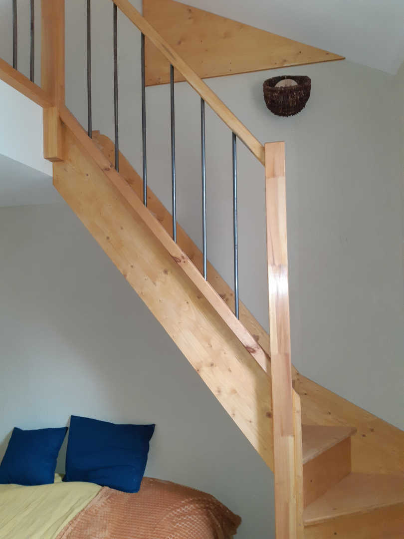 Au premier étage, sur le pallier climatisé, un lit simple en 90cm, idéal pour un premier enfant ou couchage d’appoint. Juste au-dessus, au deuxième étage un peu plus étroit, un second lit en 90cm pour un enfant également.