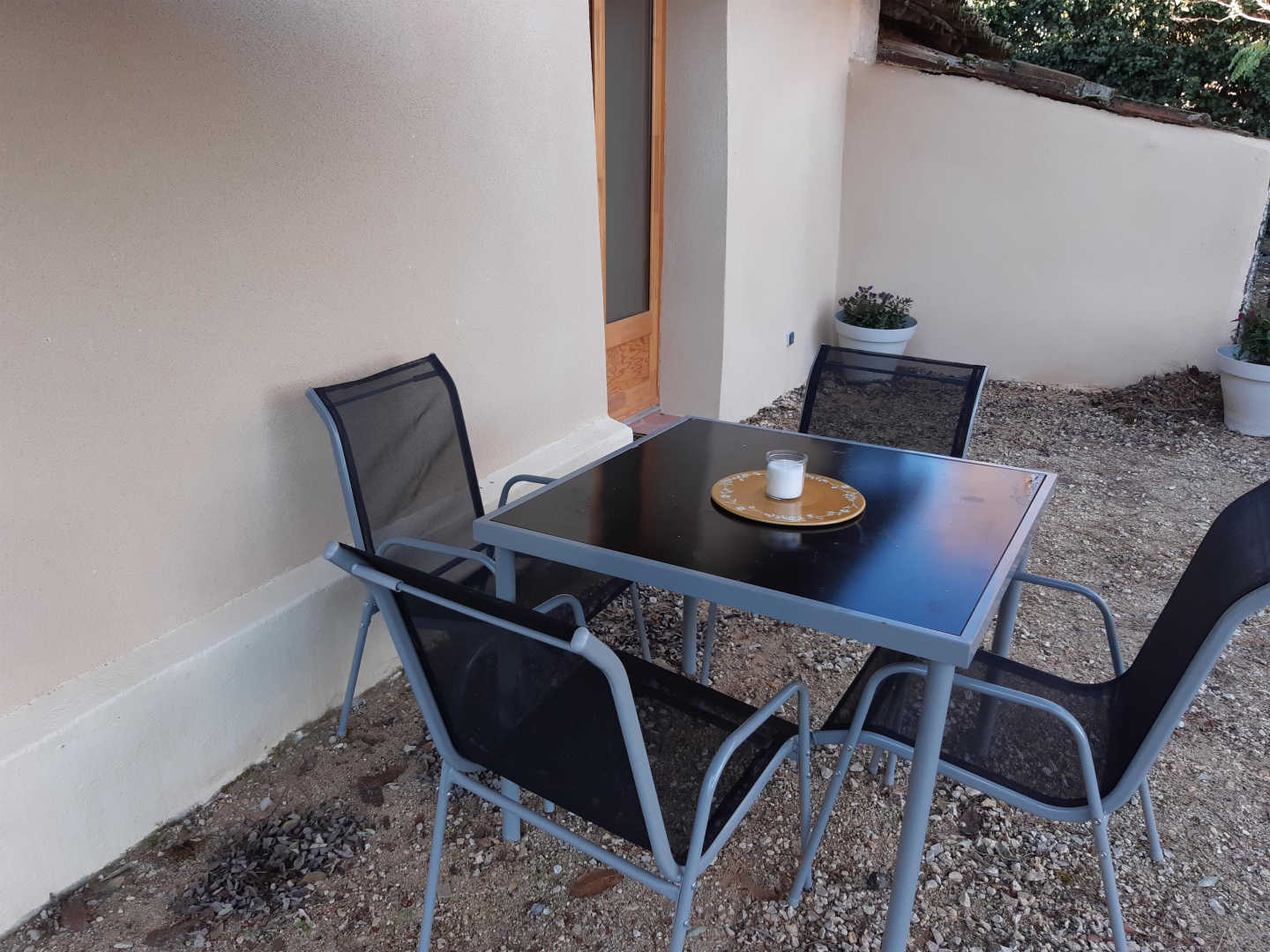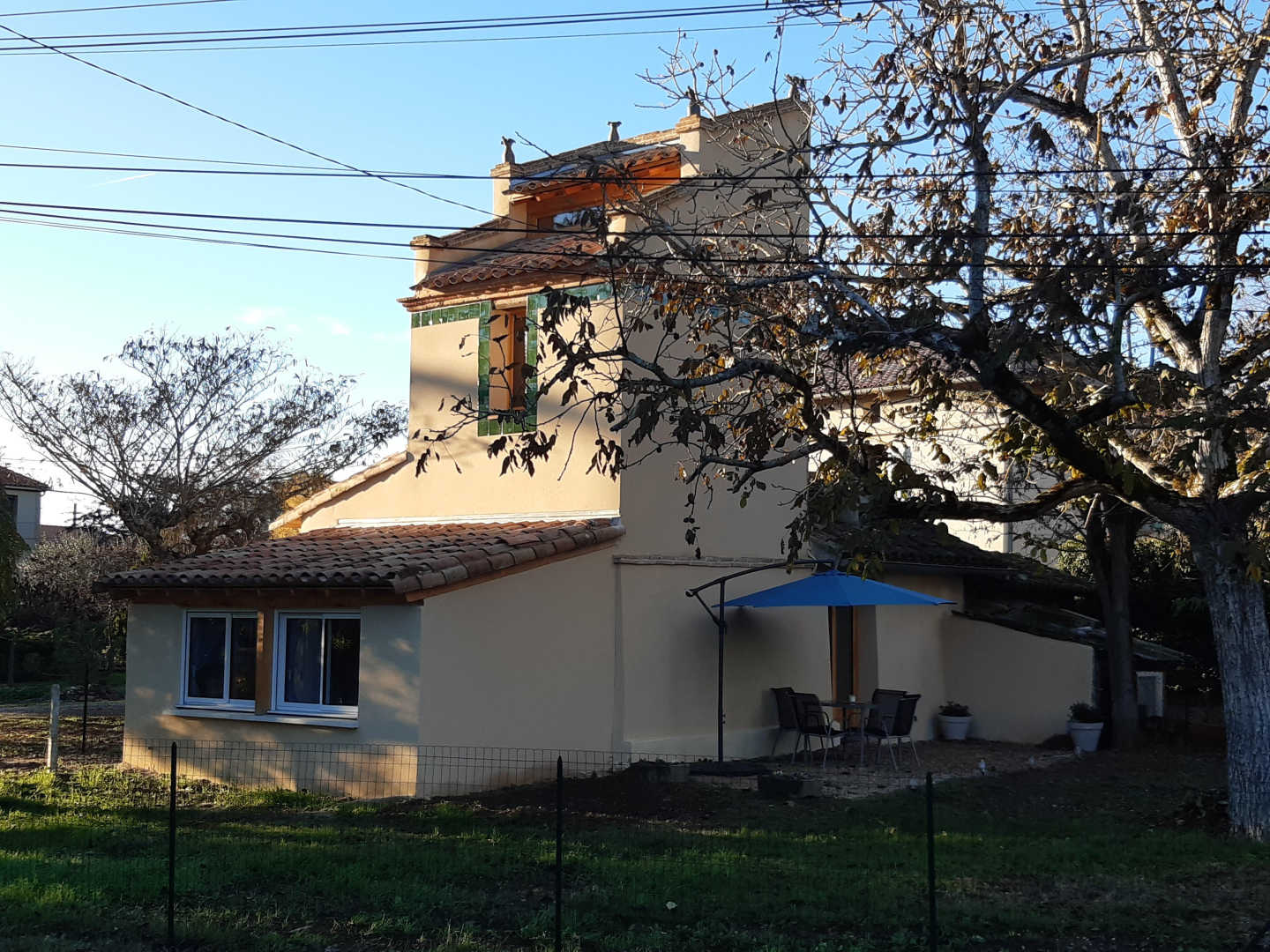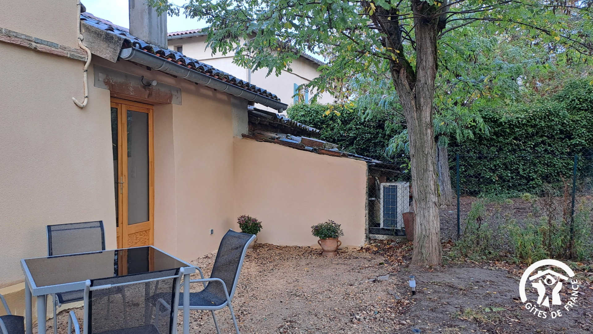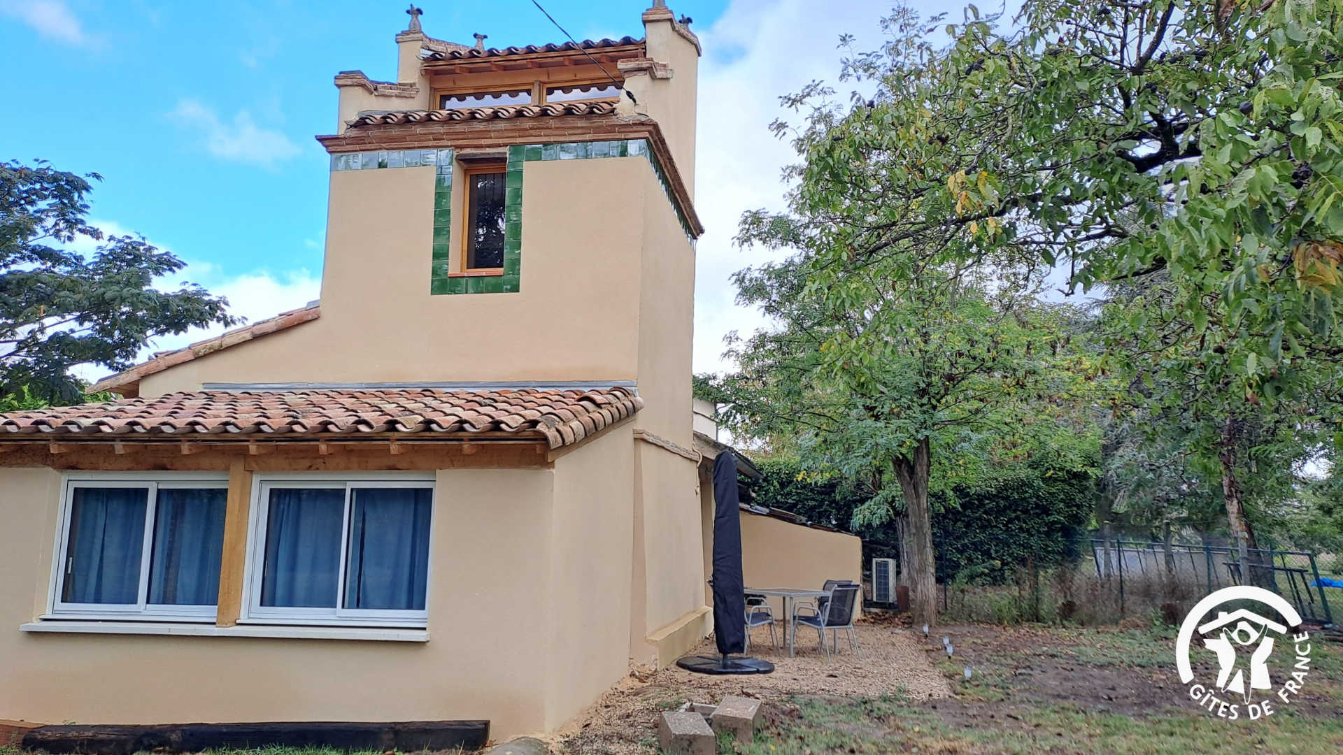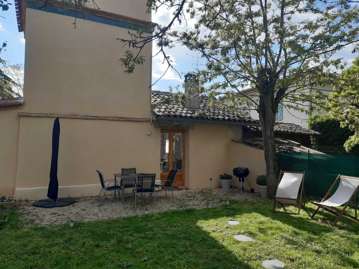 Extérieur : espace terrasse devant l’entrée avec table à manger, barbecue et parasol. Petit jardin ombragé tout autour du pigeonnier depuis lequel vous verrez les poules des propriétaires. Place de parking juste devant l’entrée du pigeonnier.