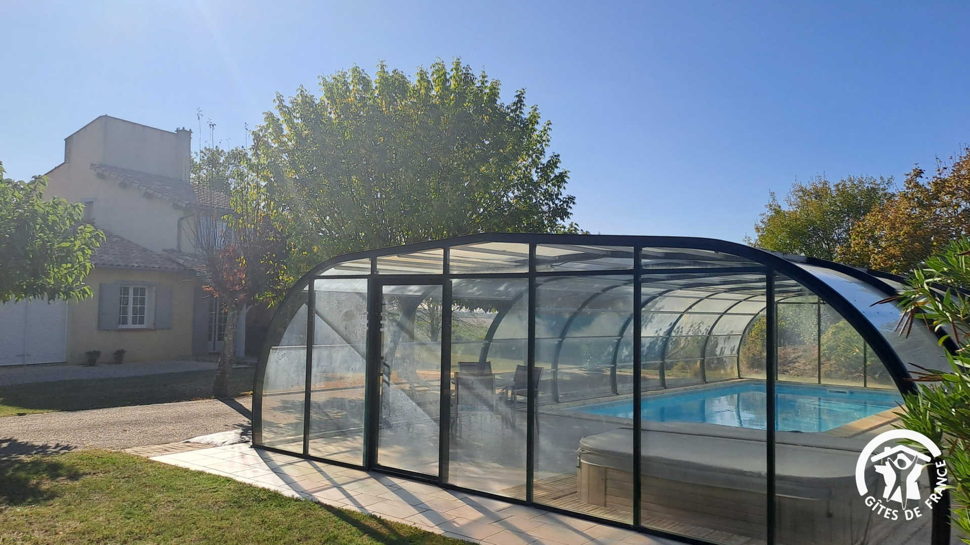 Totally independent (access by a road paved to about 200 m), this cottage opens on one side the broad field blossomed with garden furniture, barbecue, private pool and spa 6 places, and on the other on the covered terrace offering a panoramic view of the countryside and the roofs of the small village of Montdurausse. Ground floor: fully equipped kitchen, dining room, living room with fireplace (insert), room (1 double bed), bathroom, wc. The first floor: mezzanine, two rooms (a double bed and two single beds be combined), shower room with wc. Electric heating. Linens provided and linen provided, bathroom linen rental. For a carefree stay, charges are included. For your holiday, this cottage will delight the whole family. For you, a large garden with a nice green lawn, a spacious and well equipped cottage, an indoor pool, a spa, and even a lake for fishing! Nearby: the Causses of Quercy, the country of the Albigensian Bastides, the leisure base of Monclar-de-Quercy (swimming, games, picnic…), the Gaillac vineyard… You are halfway between Albi and Montauban, Tarn and Tarn-et-Garonne