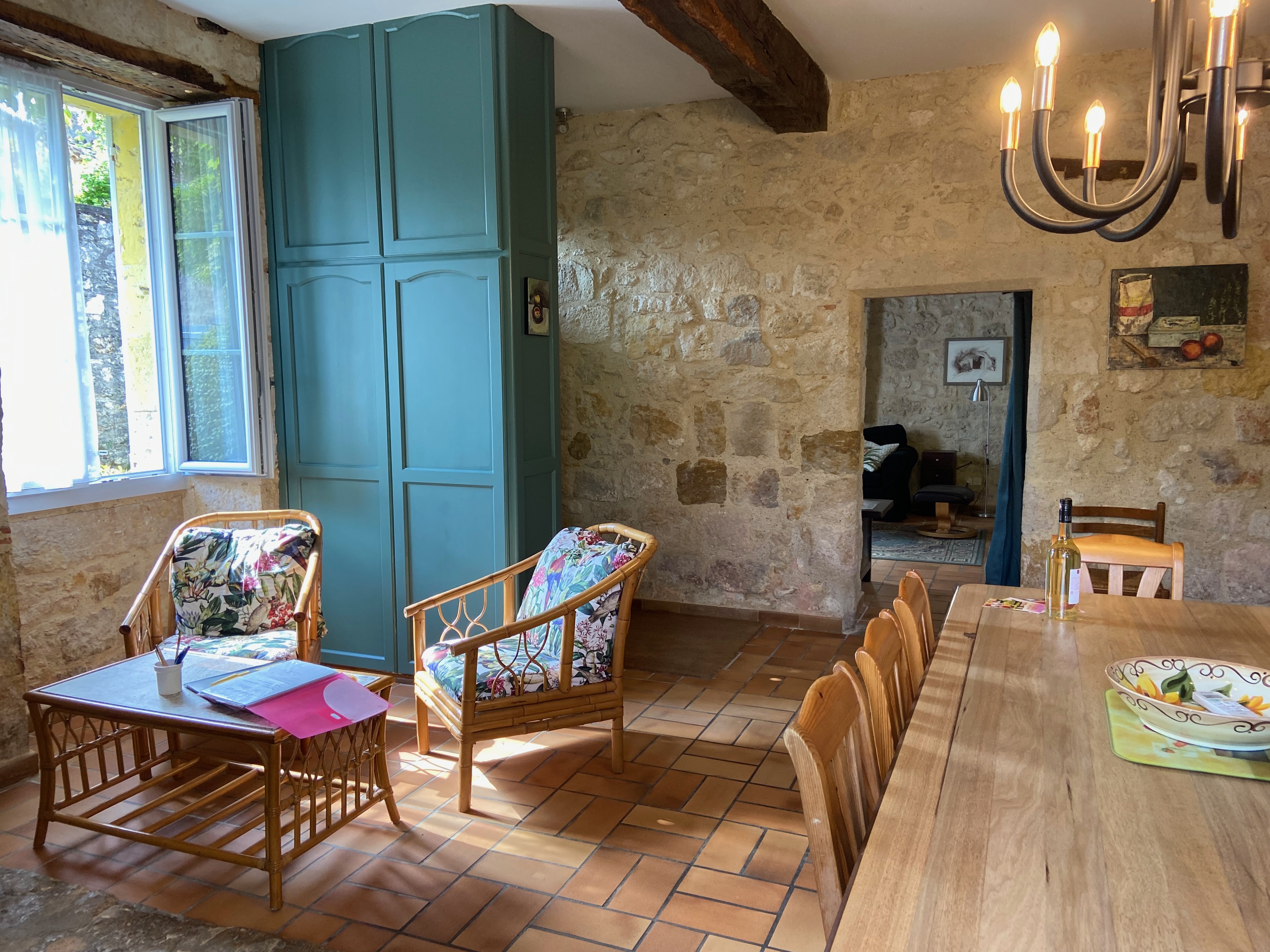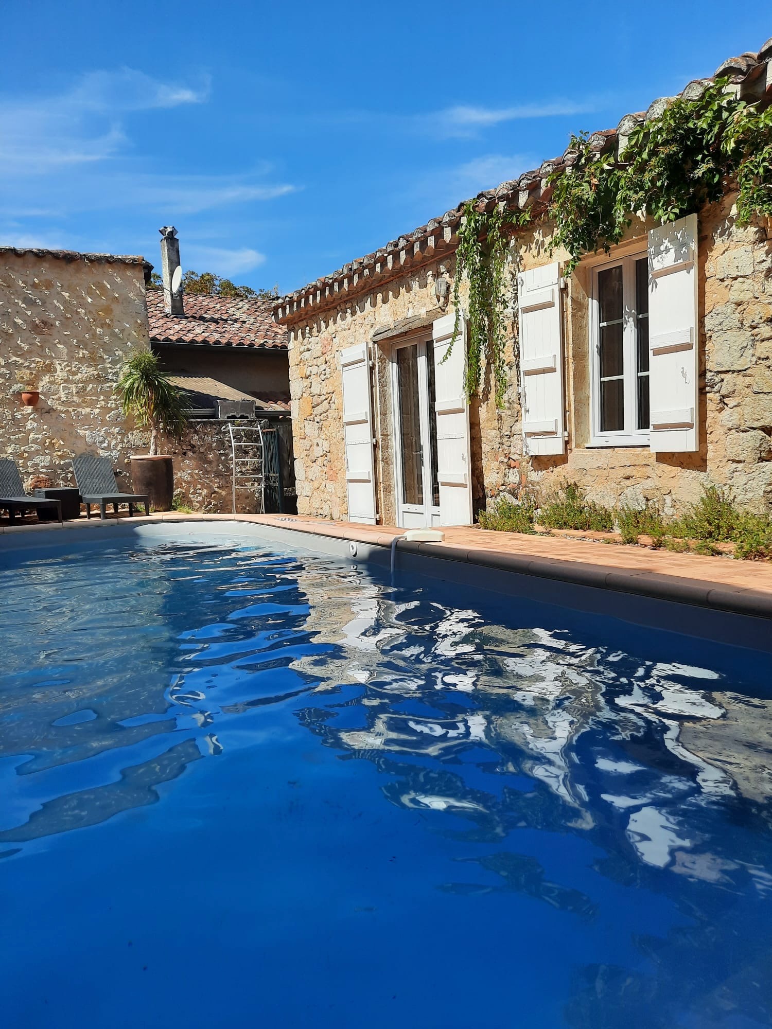 Belle maison de village, wifi, parking, 3 chambres, salon, cuisine salle à manger avec poêle à bois, 2 salles d’eau, bien équipée, jardin ombragé, piscine privée chauffée. Accepte les animaux. Tarif pour location longue en hiver. Arrivée tous les jours.