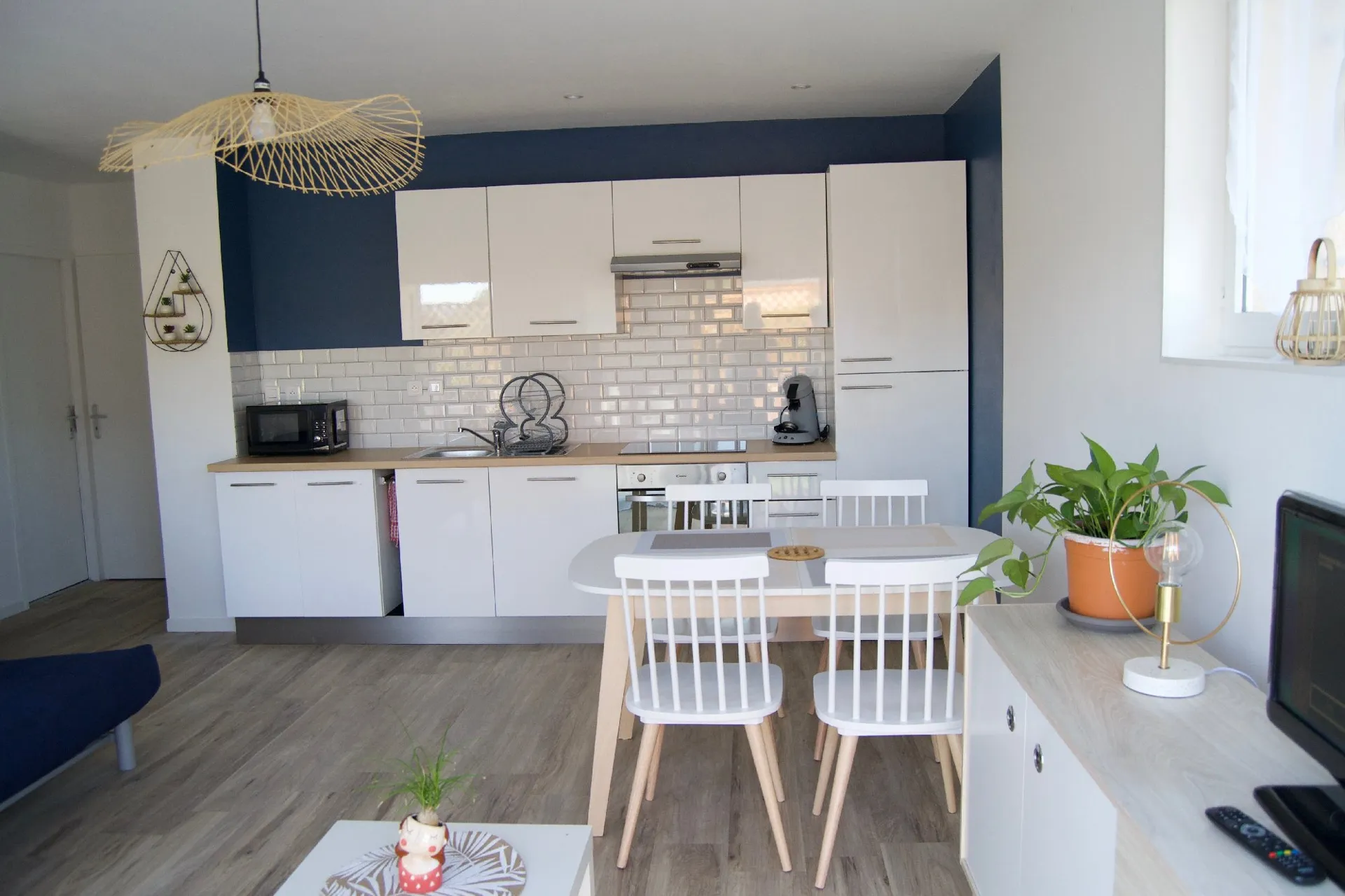 Cet appartement (Gite 3 étoiles) comprend 2 chambres (1 grand lit et 2 lits superposés), une cuisine entièrement équipée, un coin salon avec canapé convertible (2 places), 1 salle de bain équipée d’une douche, des toilettes séparées, une télévision, une connexion wifi (fibre). Un équipement bébé est fourni (lit parapluie, chaise haute, baignoire). Cet hébergement dispose d’une terrasse avec salon de jardin et chaises longues.