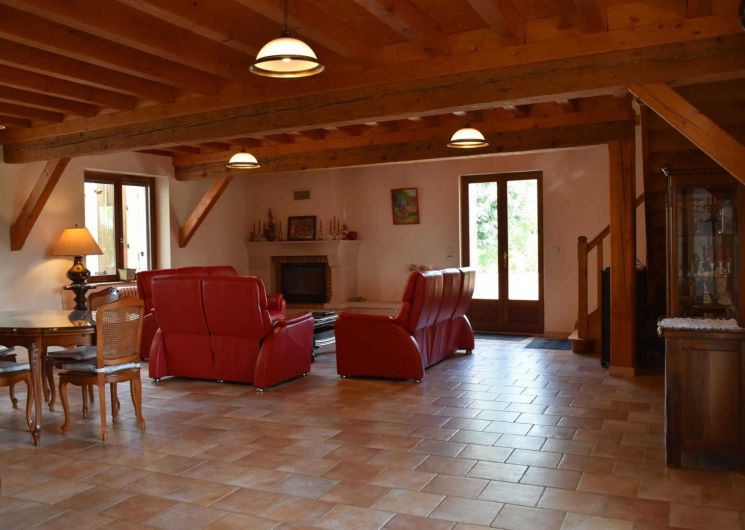 Grand gîte mitoyen à la résidence des propriétaires, avec jardin, terrasses, accès privatifs et sans aucun vis-à-vis. Grand jardin, 2ha de prés pour vous promener et rejoindre le tour du village. Terrasse à l’est pour les petits-déjeuners en plein air, et immense terrasse couverte plein sud.