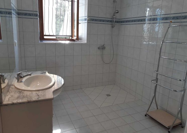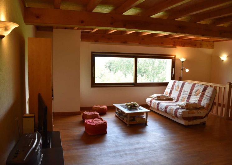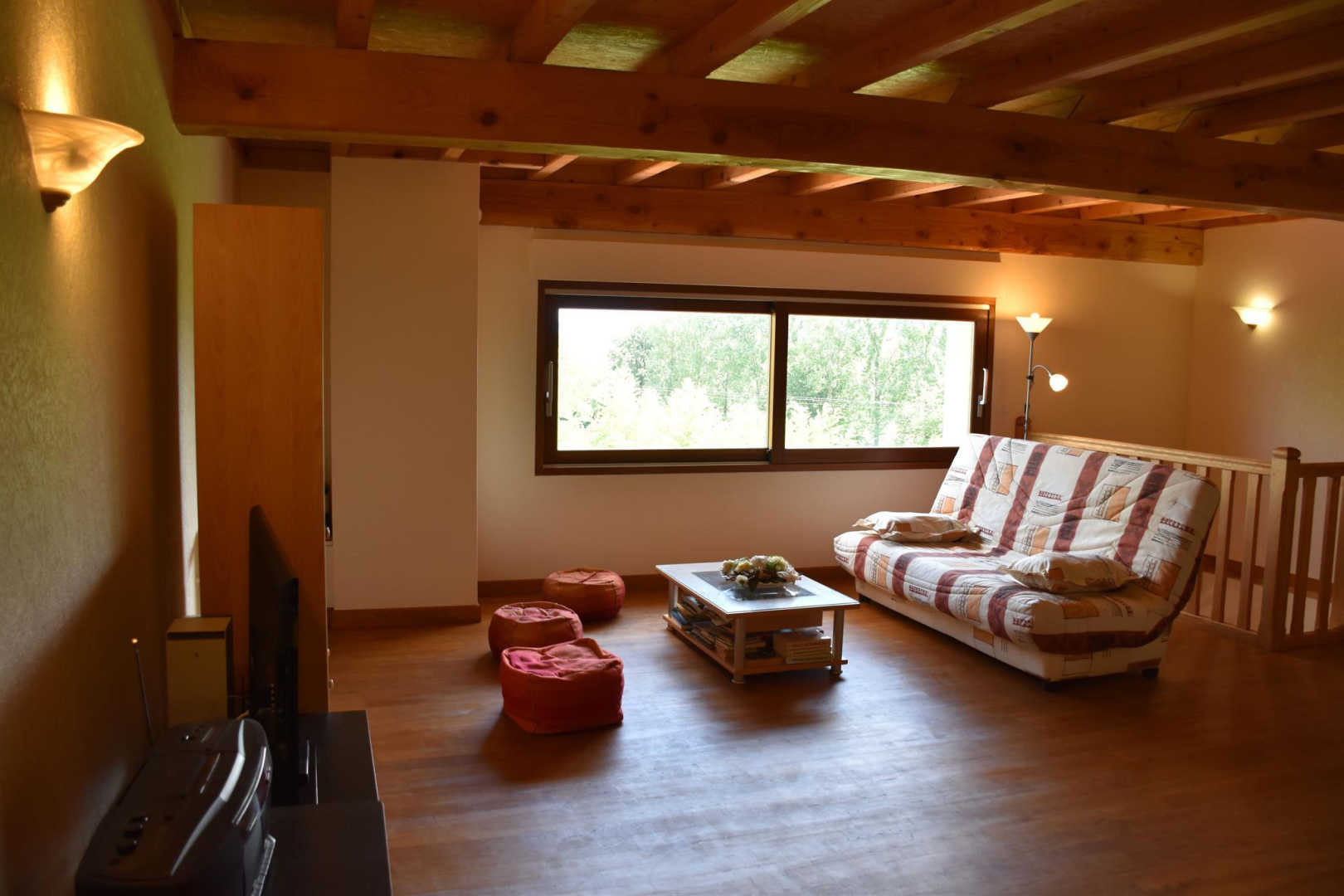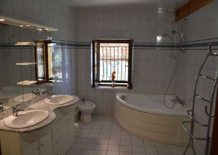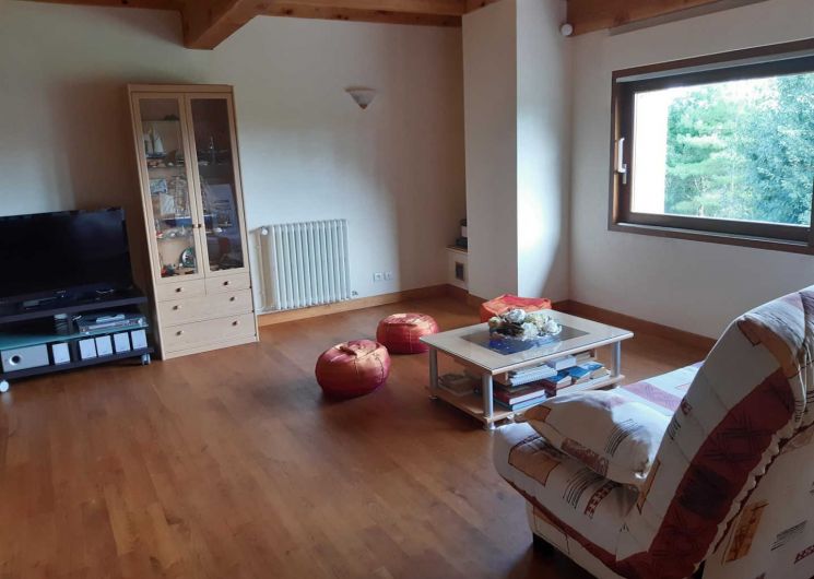 A l’étage : salle de jeux (équipement hifi, ordinateur, babyfoot), trois chambres (chacune avec lit double en 140), salle de bain (baignoire, double vasque), wc indépendant.