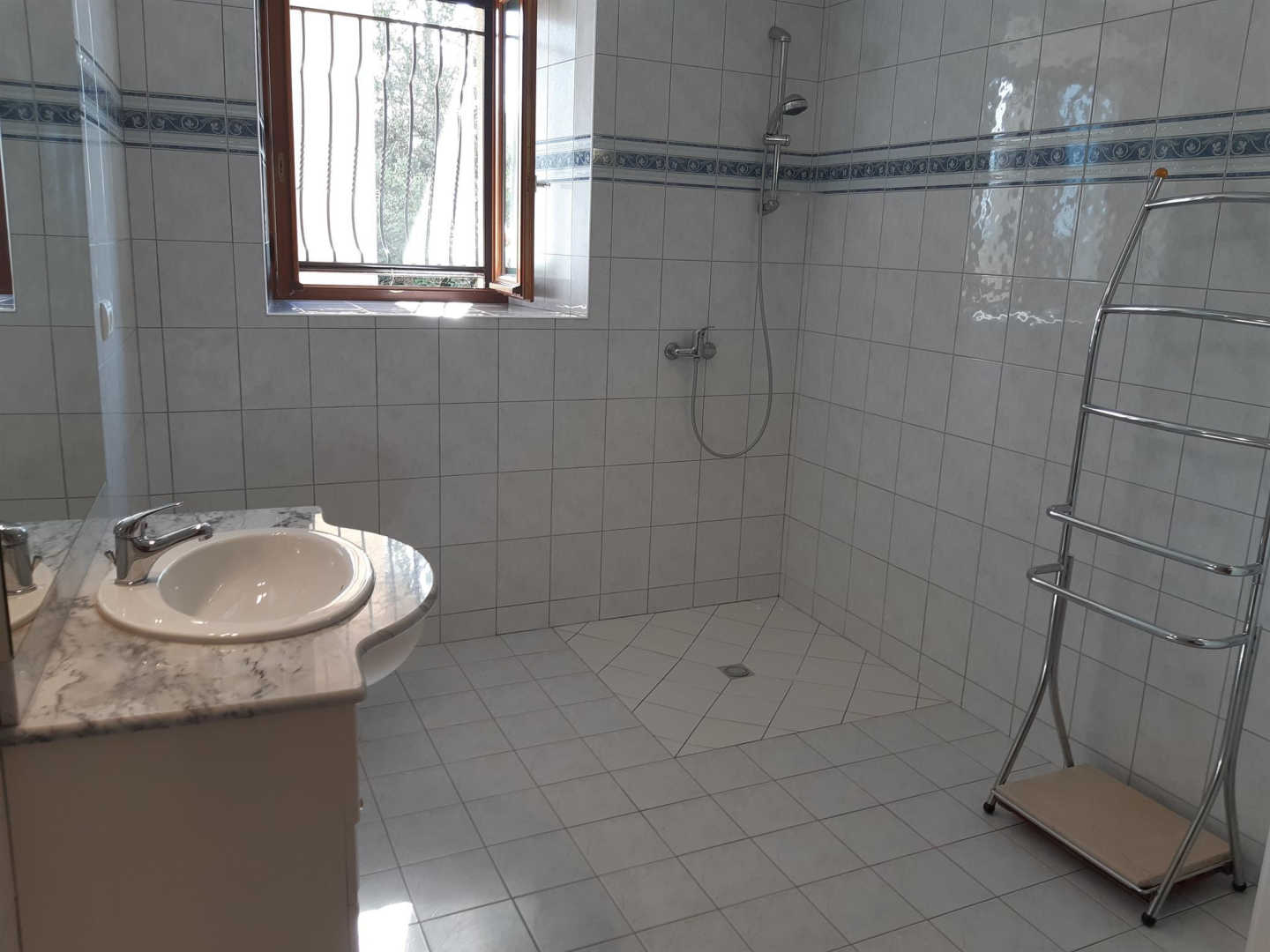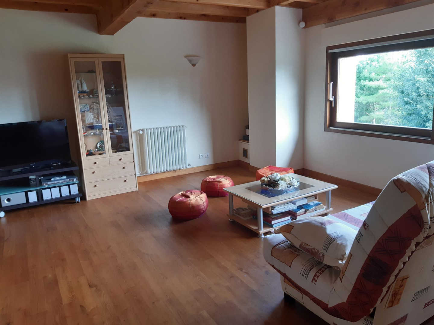 Rez-de-chaussée : grand salon avec cheminée insert, donnant sur la cuisine et les deux terrasses, cuisine largement ouverte avec équipement électroménager complet et de qualité, salle d’eau (douche), wc indépendant.