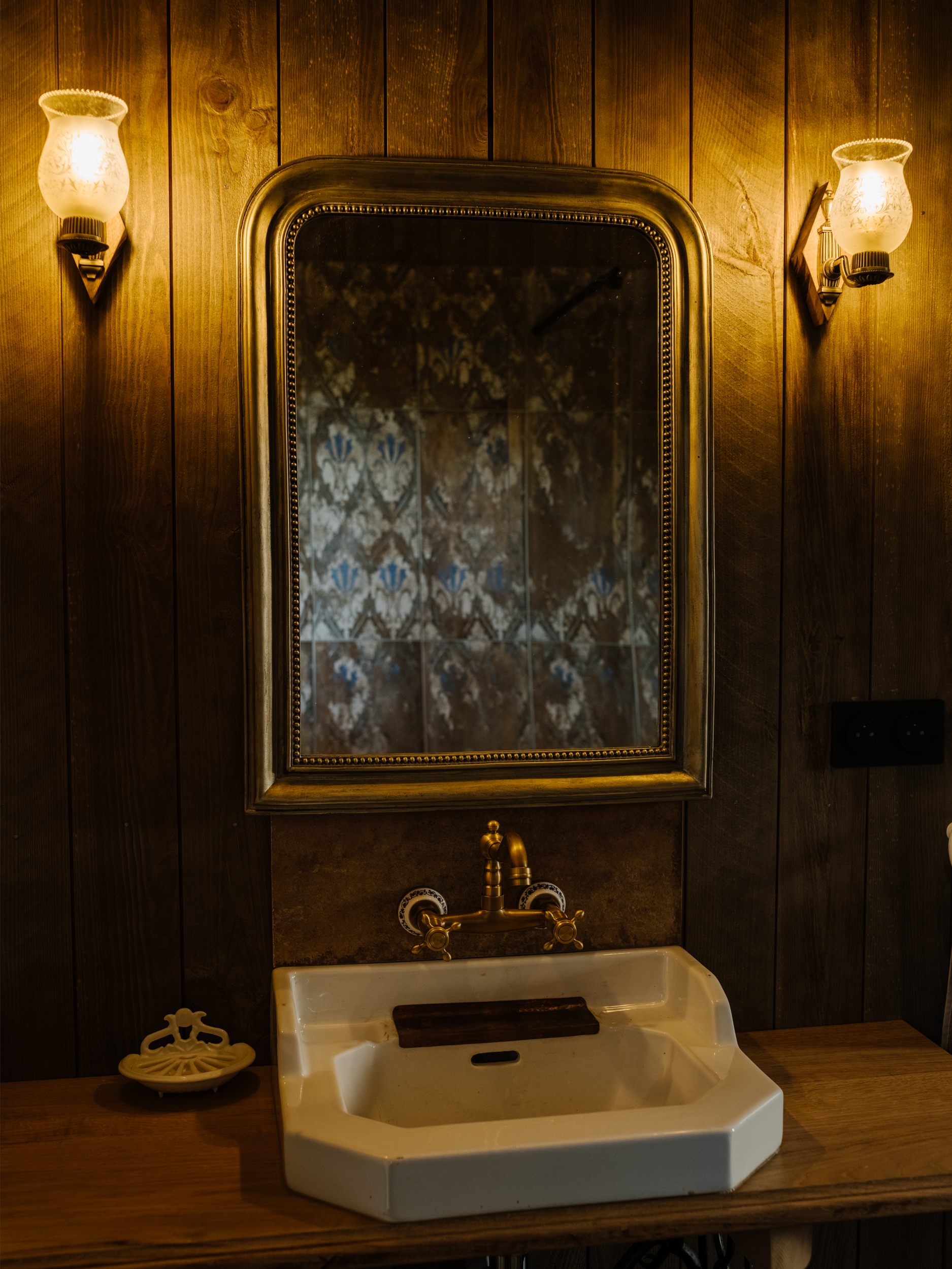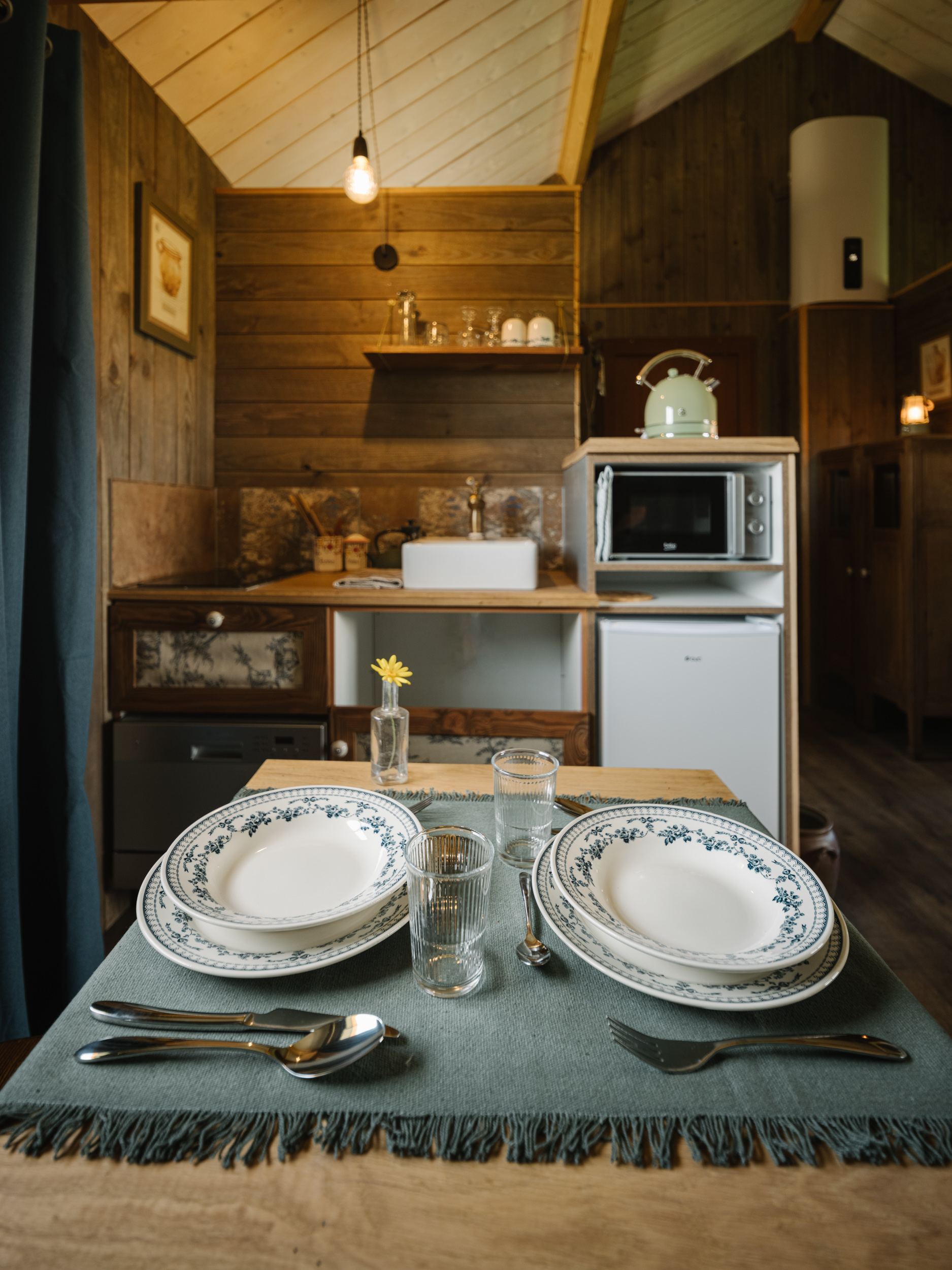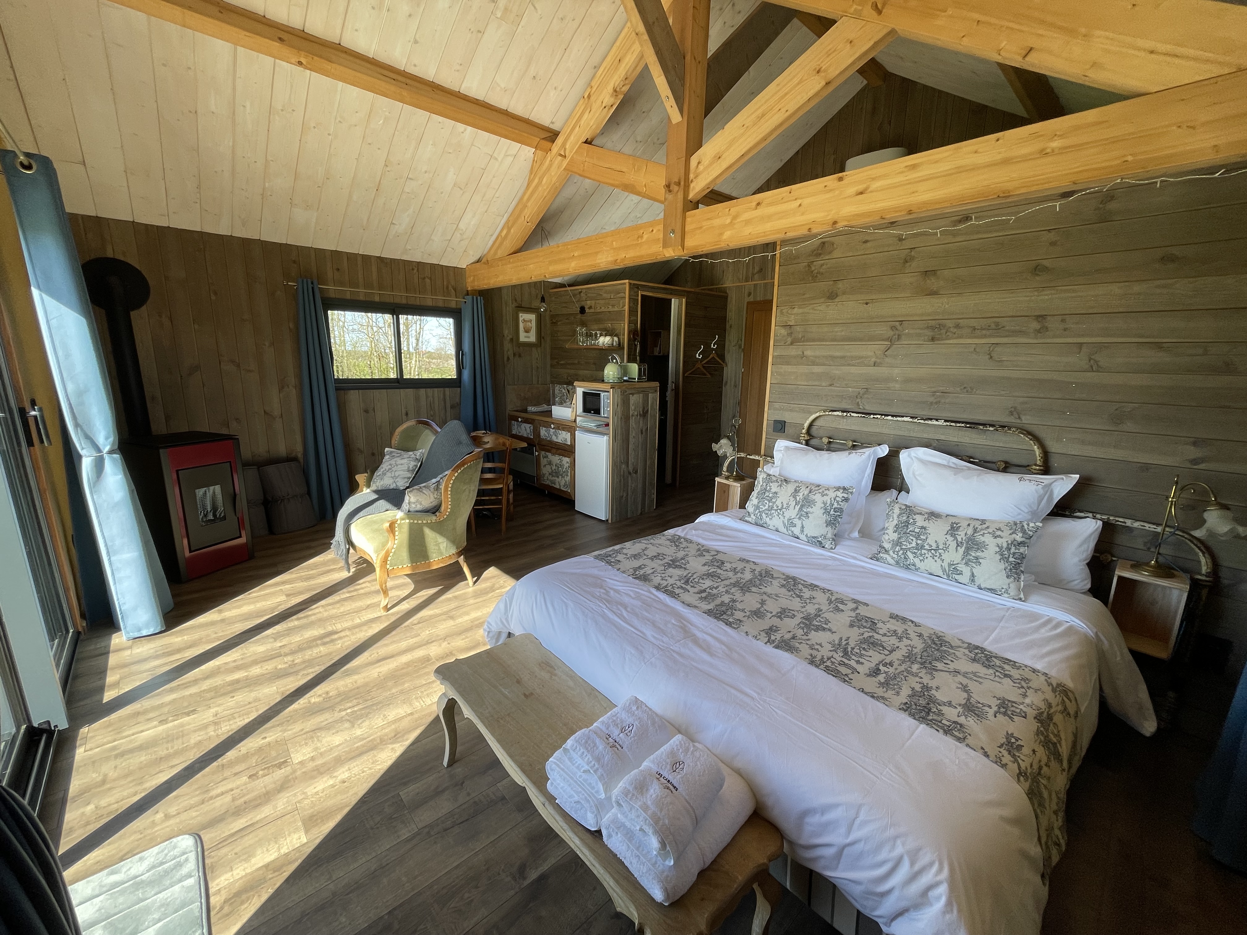 It is perched 2 meters high, with a surface of 34 m² including a room with a bed in 180, a bathroom with separated WC, a corner kitchenette equipped (hotplate, refrigerator, coffee machine) and a stove with granule – WIFI.