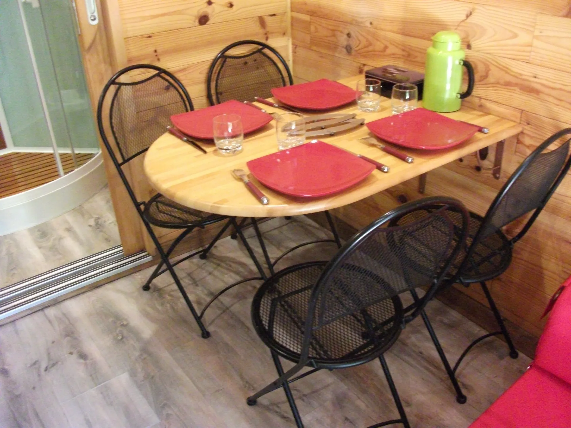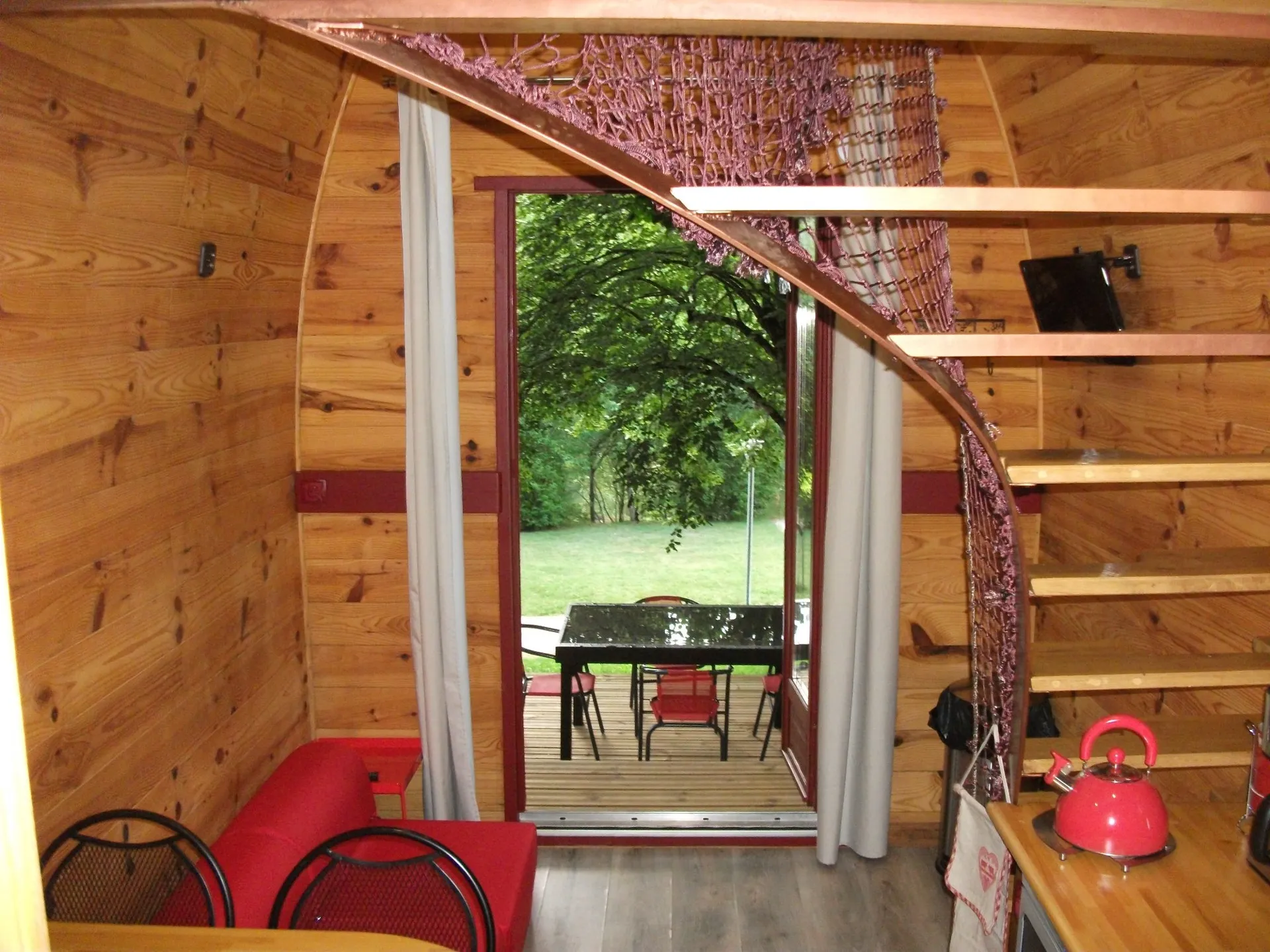 Les Cahutes d’Olt disposent d’un couchage en mezzanine en 140×190 cm, et de 2 chauffeuses d’appoint en 60×180 cm situé dans l’espace de vie