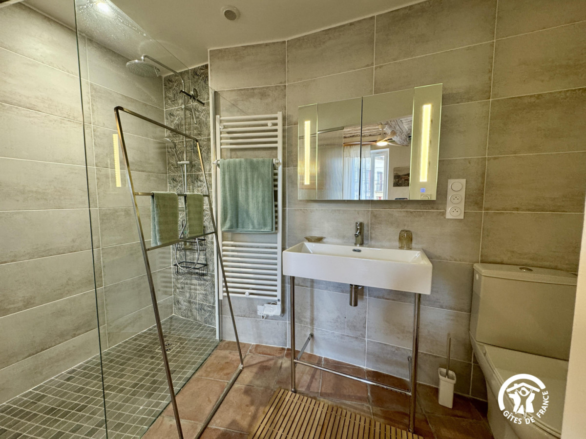 Bien que la maison ne dispose pas d’extérieur, vous profiterez d’un village qui a gardé son authenticité, de ses ruelles calmes et, à une dizaine de mètres, des tables de pique-nique qui vous attendent pour un repas en plein air avec vue sur la nature environnante… A deux pas vous pourrez vous garer gratuitement sur le parking public Délicatement rénovée, vous aimerez l’âme de l’Ostal de la Placette, son atmosphère apaisante pouvant accueillir 6 personnes. Pour la rénover nous avons fait le choix du naturel : tomettes artisanales en terre cuite au sol, salle d’eau inondée de lumière naturelle, ossature ancienne rajeunie, ventilation naturelle … Les trois chambres ont chacune leur atmosphère : Jade au 1er étage d’esprit ” végétal “, et au 2ème : Terra d’esprit ” terrien ” et Loft, avec son beau volume, d’esprit plus contemporain, sa luminosité et sa vue imprenable sur le château cathare et la chapelle, idéal pour votre yoga, vos moments de lecture, le plaisir à partager un beau match retransmis à la télé grand écran… Venez vous relaxer dans l’atmosphère apaisante de cette maison. Pendant tout votre séjour Norbert, qui habite à 2 pas dans le village, sera là pour vous assister et vous guider dans la découverte des trésors du pays …C’est lui qui vous accueillera, vous préparera le petit déjeuner…