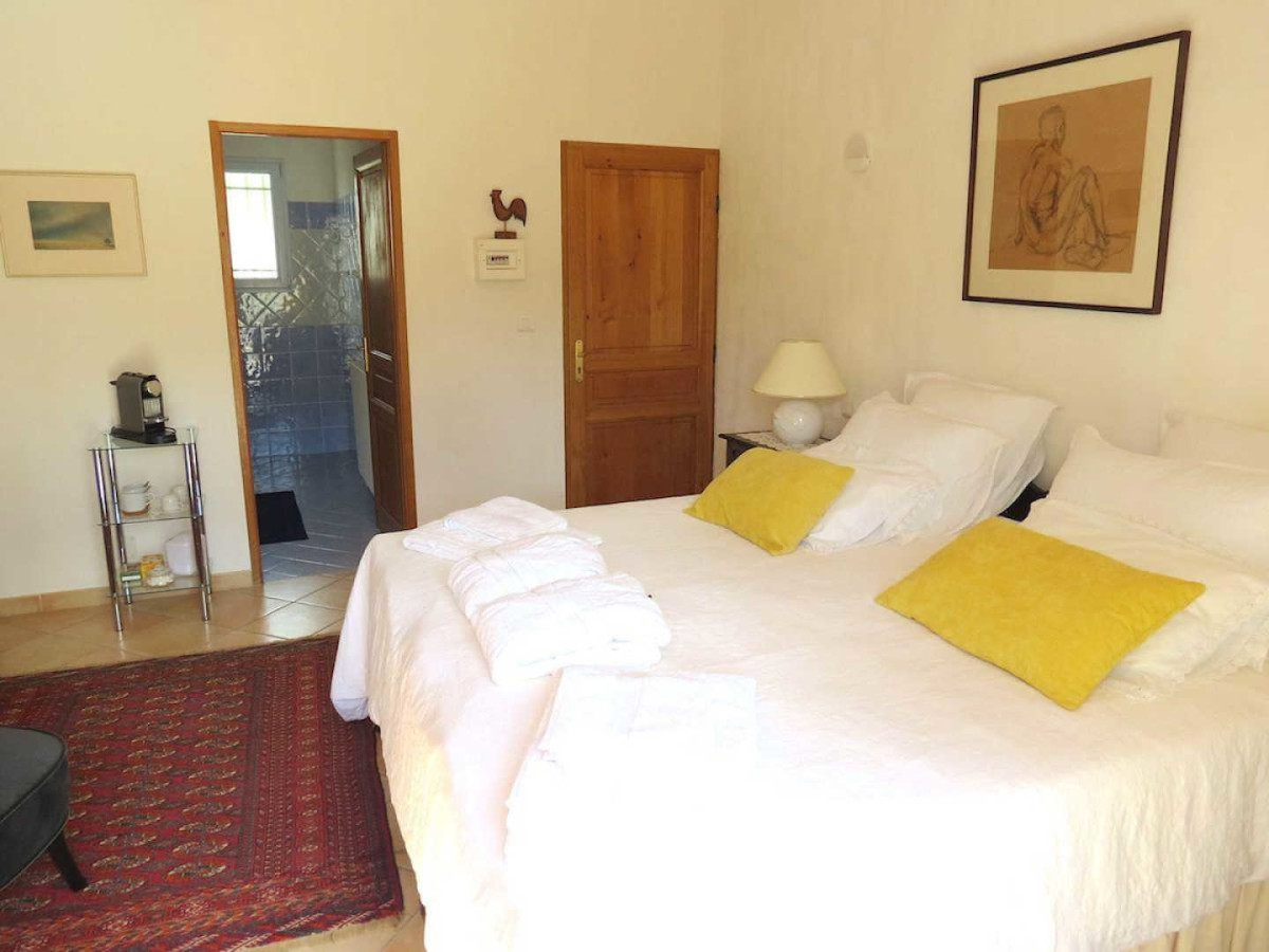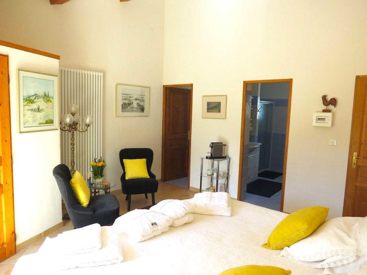 Welcome to the “Chambres du mas”, where calm and serenity reign. At your disposal: two spacious bedrooms with views and direct access to the terrace and nature. You’ll also have access to a library with a wide selection of books for relaxation, and a gym for the more sporty guests. Take advantage of the outdoor space in the 8-hectare park, with its natural swimming pool and direct access to numerous walks. TOURIST ATTRACTIONS: Cévennes, Pic Saint Loup, gliding 2 km away, hang-gliding 18 km away, Hérault Gorges (canoeing, kayaking and swimming), Buèges Valley, Montpellier (festivals, Fabre Museum), Grottes des Demoiselles, Camargue, Anduze bamboo grove, Nîmes. – Room “La Garrigue”: surface area 28.50m², bed 180×200, reading corner, desk, dressing room. Bathroom with separate WC.