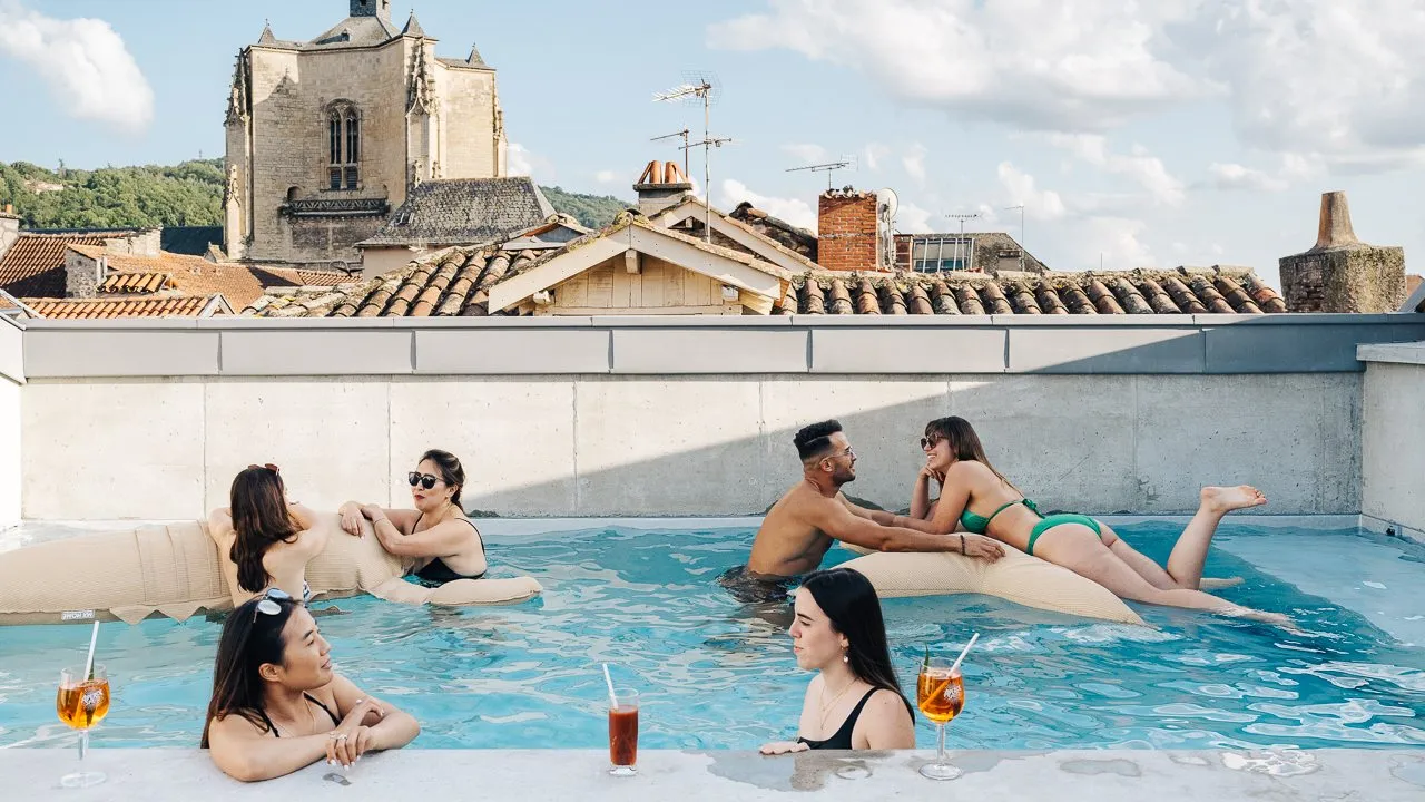 Rooftop pool with panoramic views of the bastide