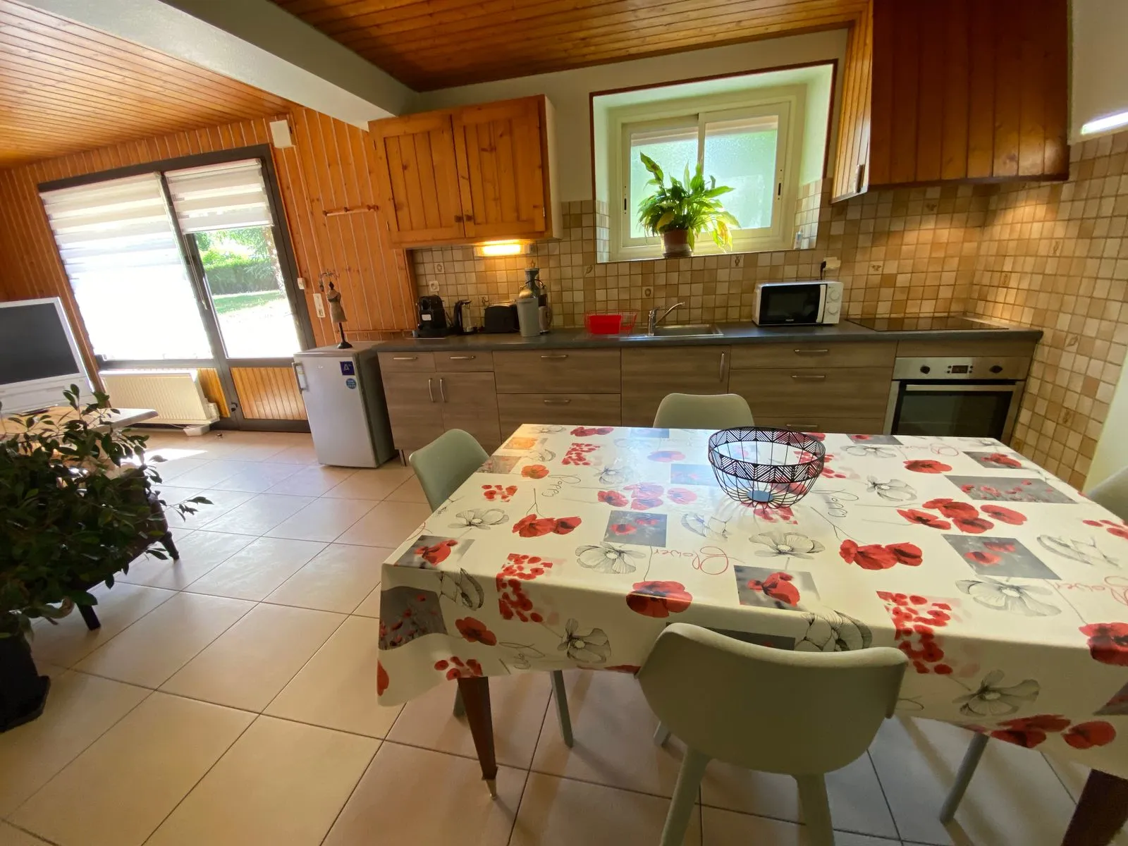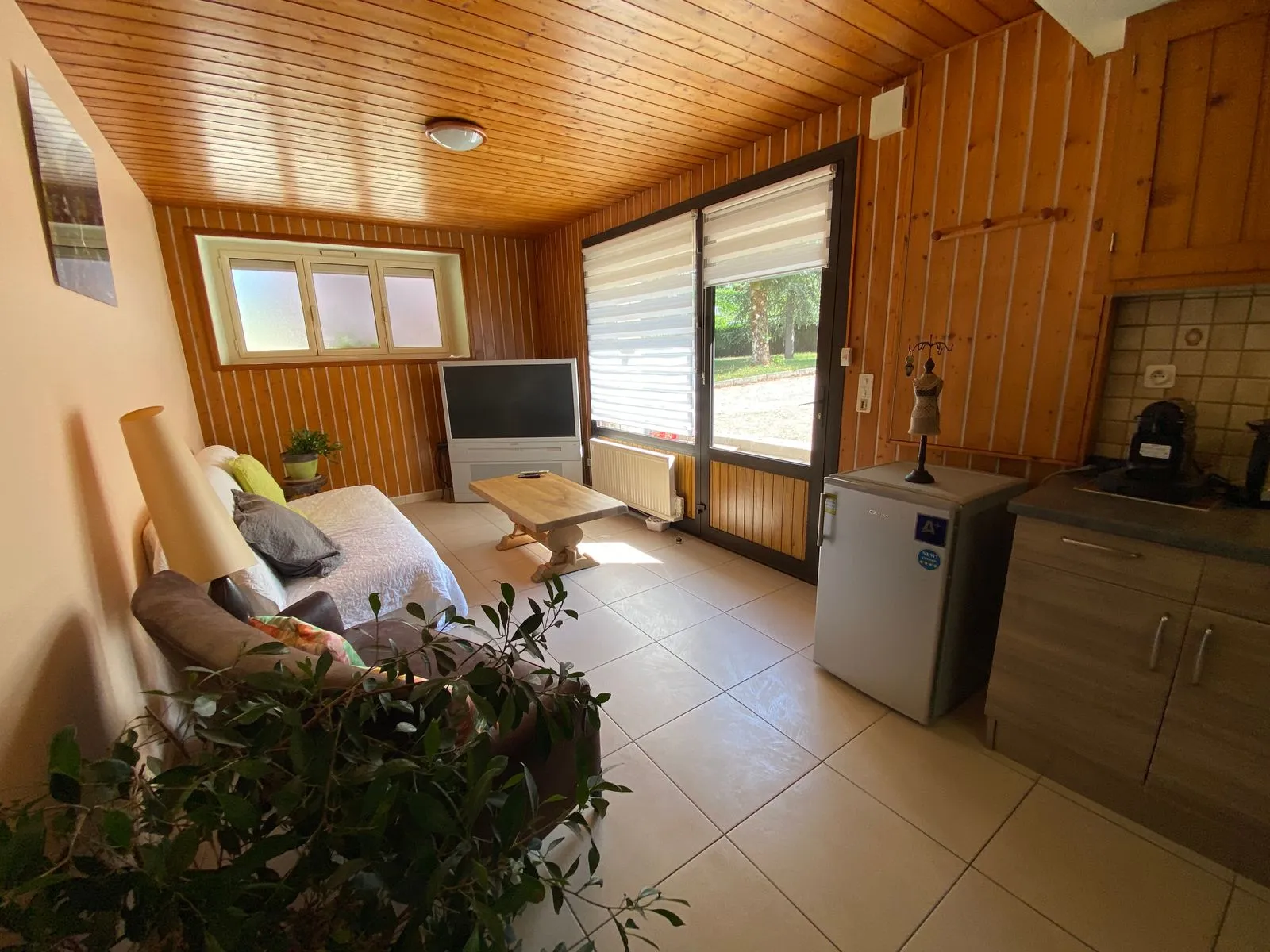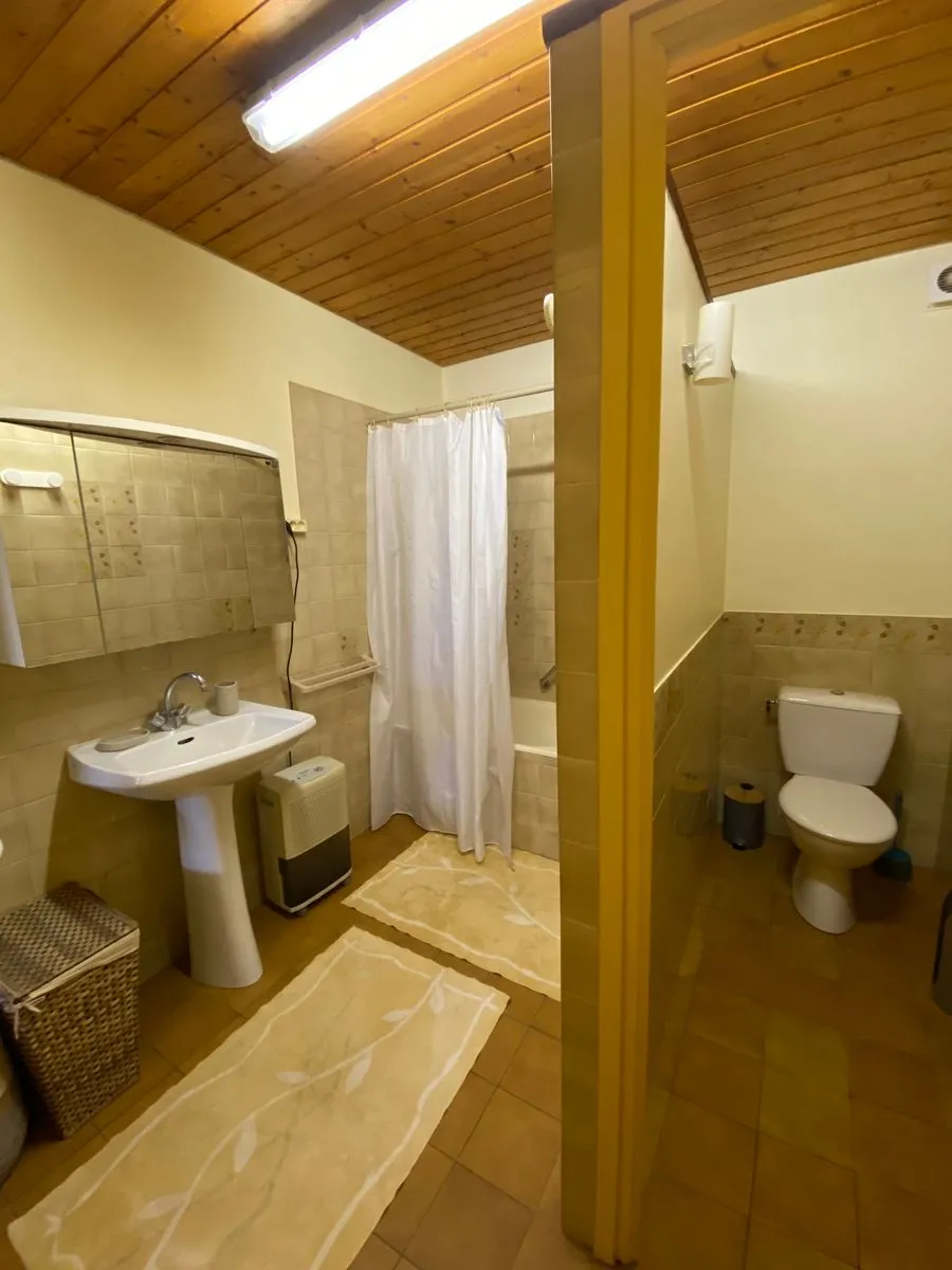 Situé au rez-de chaussée d’une maison, l’appartement de 75 m² comprend une pièce à vivre avec cuisine équipée et un coin salon, une chambre séparée, salle de bain, toilettes et buanderie.