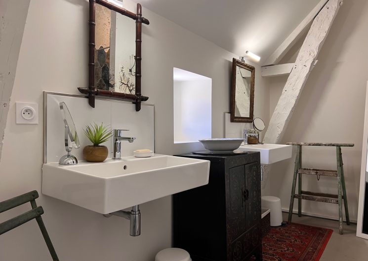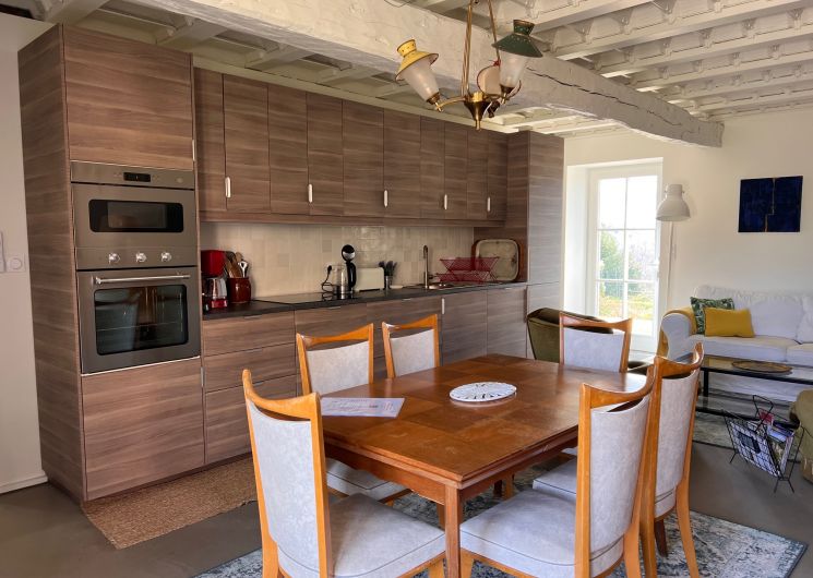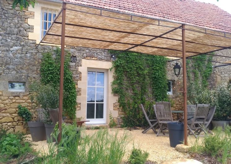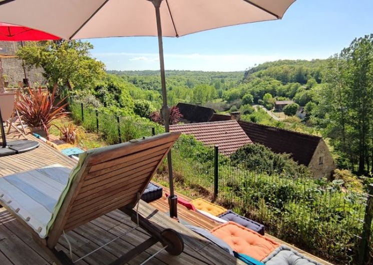 This barn has been completely renovated by an interior designer and has 2 adjoining apartments, one with 2 bedrooms and one with 3 bedrooms, each with its own living space on the ground floor. A common entrance gives access to both apartments and allows a rental of the whole. This dwelling is located on the heights of a small typical village of the Lot which was formerly a free town surrounded by ramparts with its castle nearby. Shared heated swimming pool (from April to October).