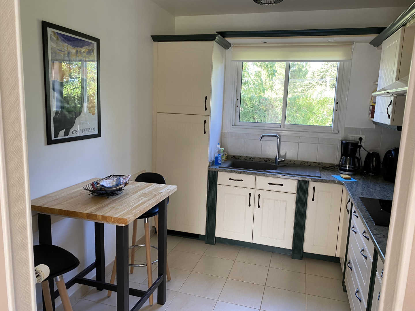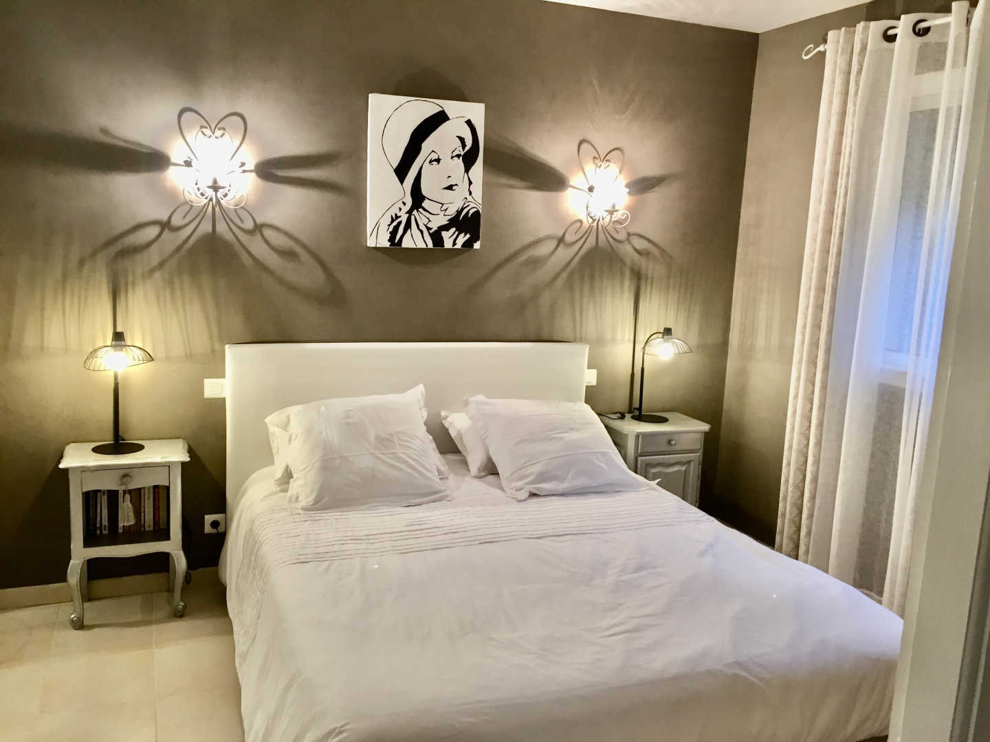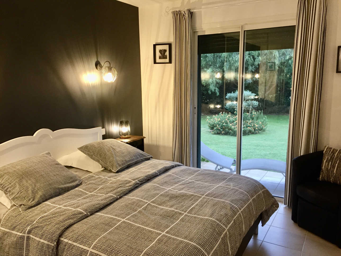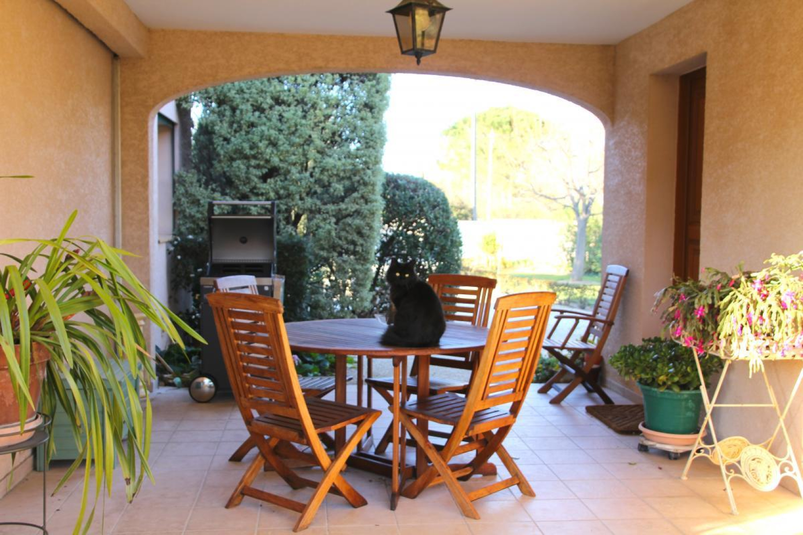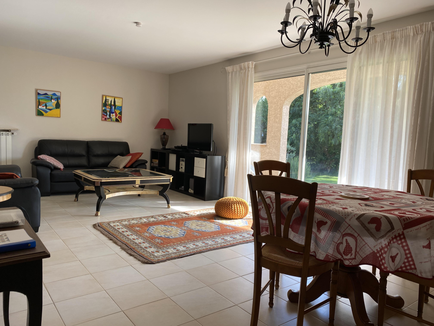 A l’entrée du village,sur la route menant à Thuir (5 km),hors lotissement,au calme,maison contemporaine de plain-pied, située dans la propriété de la résidence principale des propriétaires.RDC:séjour spacieux (hi-fi) exposé plein sud ouvrant sur le jardin de 3.500 m² commun clos arboré et fleuri et sur la terrasse couverte privative (salon de jardin, plancha, transats) où il fait bon se détendre.Cuisine moderne entièrement équipée,2 chambres climatisées (1 lit 160 et dressing dans chacune),salle d’eau, wc indep. Piscine privée des propriétaires (sécurisée par alarme, 6 m x 12 m). Parking privé dans propriété clôturée. A 300 m du village, recharge électrique communale.
